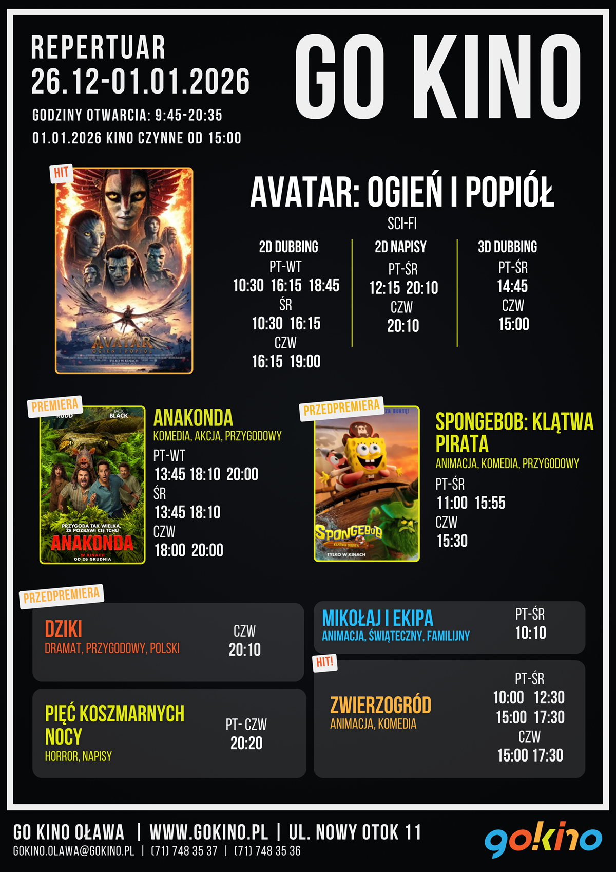 Repertuar od 26 grudnia do 1 stycznia 2026 r. W tym tygodniu przedpremierowo zobaczymy polski dramat przygodowy pt. Dziki", reżyseria Maciej Kawulski