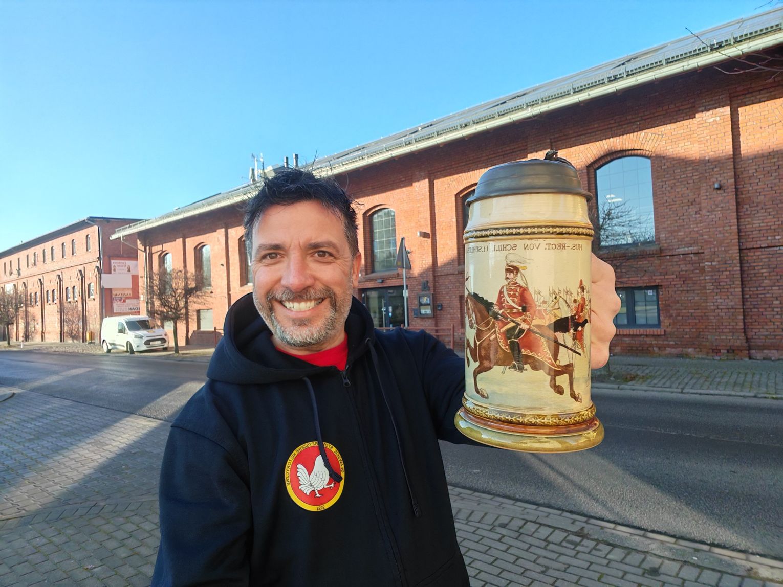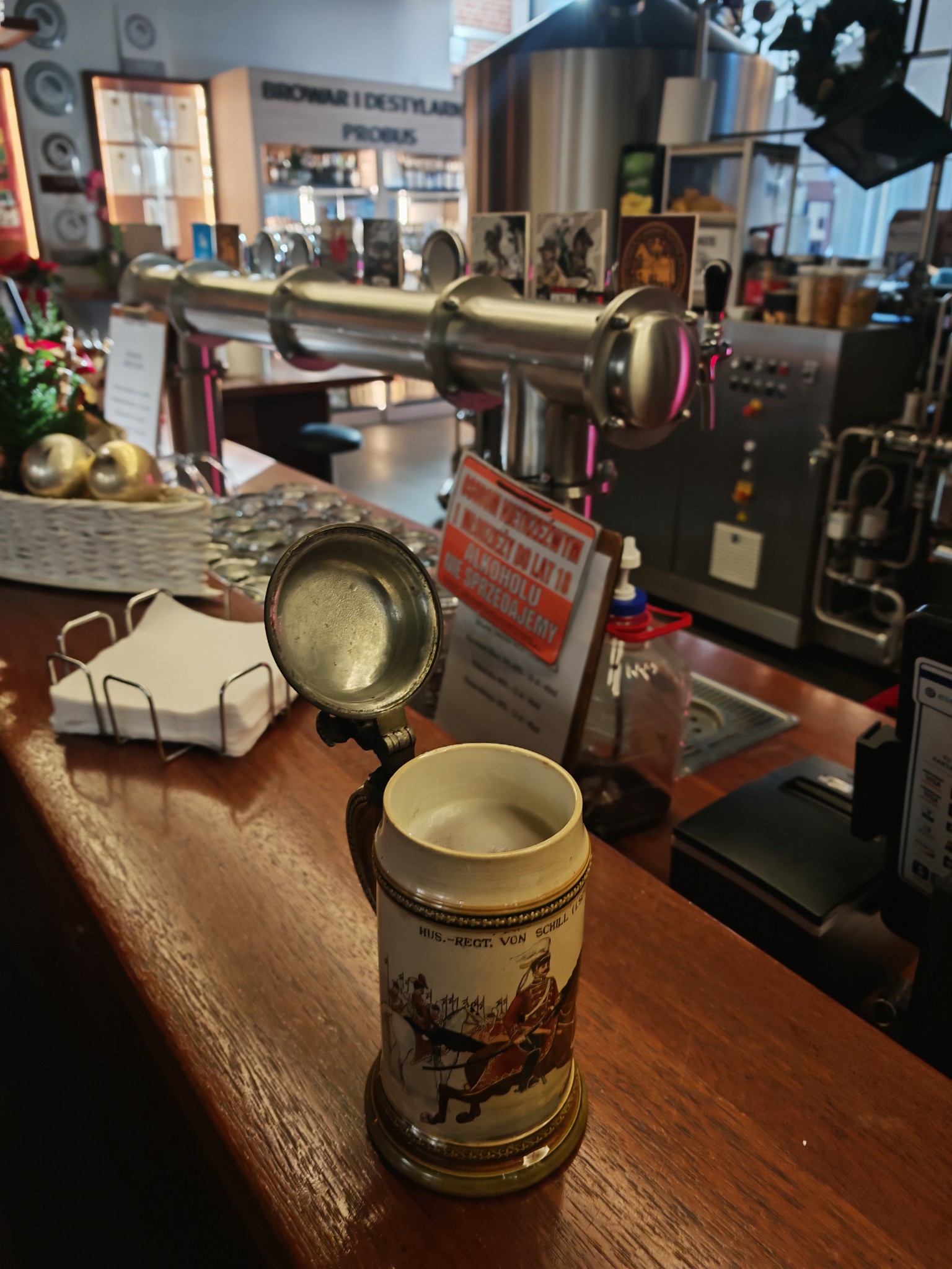 Nie mogłem się oprzeć pokusie, by ta cała historia zatoczyła koło... Zapewne właściciel tego kufla pił niejedno piwo z niego. I tak zrobiłem ja... wśród murów dawnego regimentu, a dziś oławskiego browaru Probus.