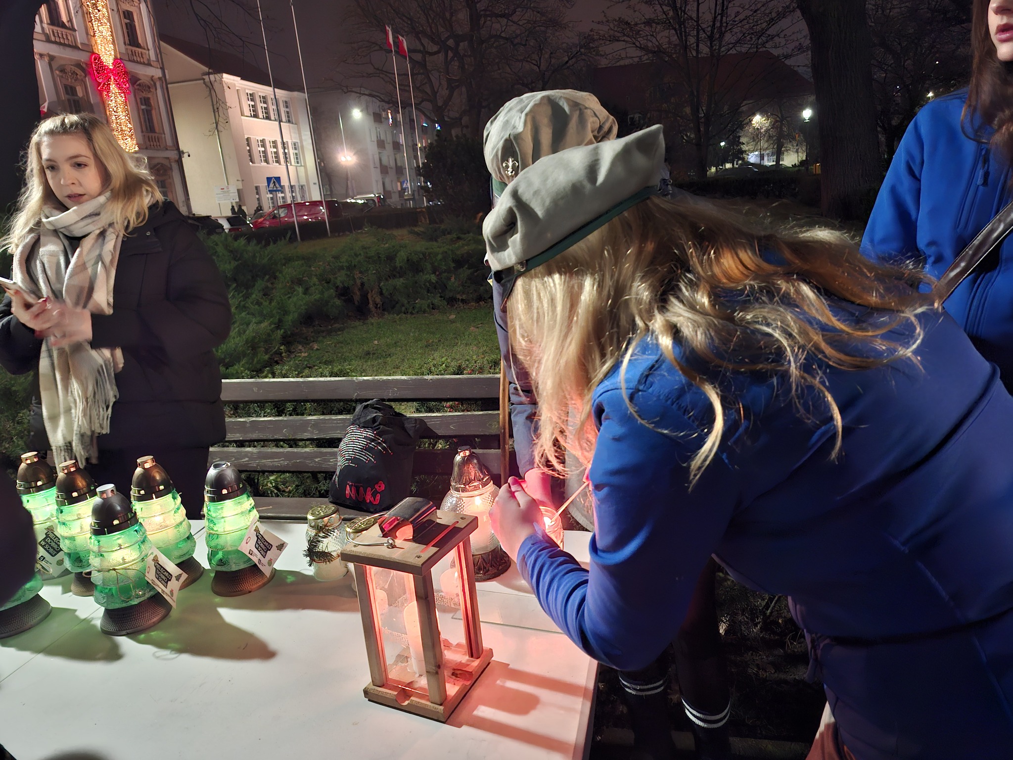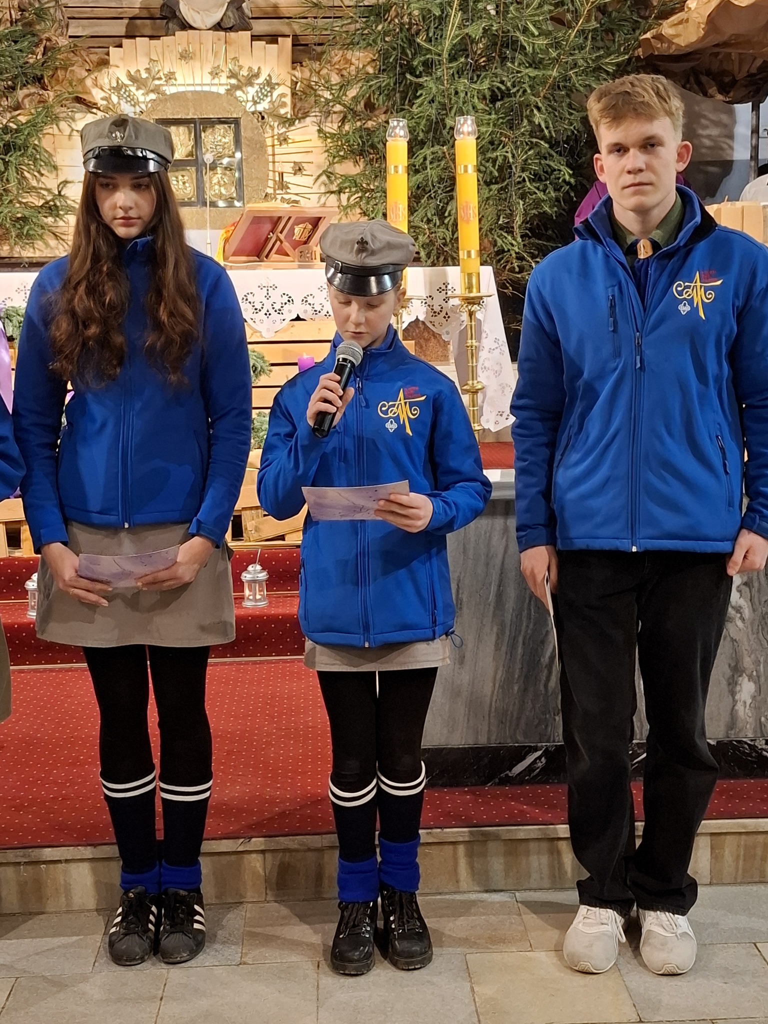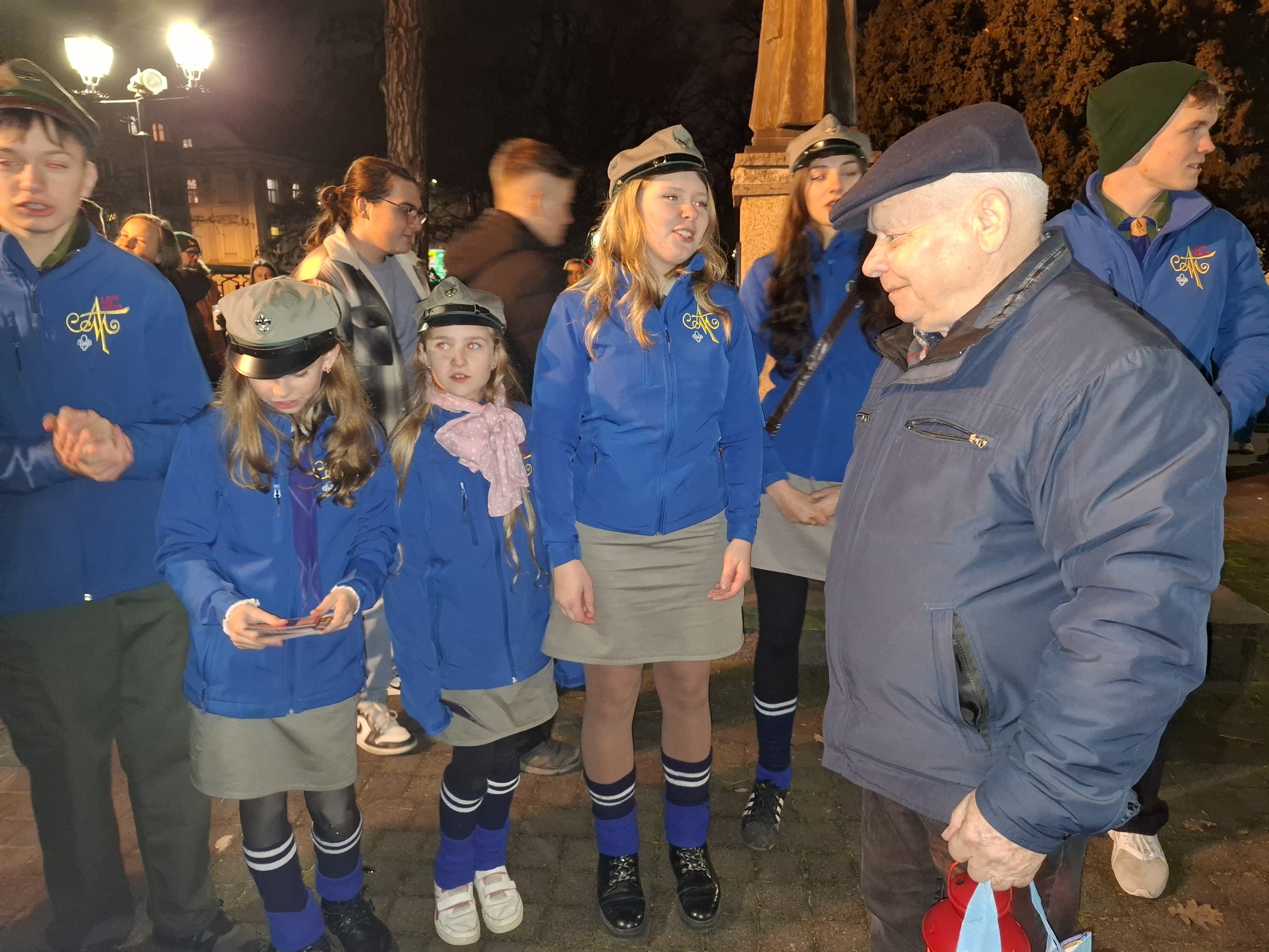 - Włączyliśmy się w hufcową uroczystość przekazania Ognia wszystkim Zuchom, Harcerzom i Instruktorom oraz mieszkańcom Oławy i okolic - relacjonuje 2 WDH Wiercipięty im. Adama Mickiewicza. - Nasi przedstawiciele wnieśli Ogień przed ołtarz, napisaliśmy i przeczytaliśmy Modlitwę Wiernych, druhna Blanka opowiedziała krótko o tym, skąd się bierze Betlejemskie Światło Pokoju, a po mszy nasi drużynowi muzycy zagrali z dwóch stron kościoła dla wychodzących: Robert na trąbce, a Tosia i Łucja na skrzypcach. Wędrownicy odpalali Światło wszystkim chętnym, a harcerze i zuchy rozdawali karteczki z życzeniami. To była dla nas bardzo intensywna niedziela, ale radość wymalowana na twarzach ludzi, którzy odbierali od nas Światełko i ruszali z nim w drogę do swoich domów, ładowała nasze akumulator. Tak właśnie realizujemy tegoroczne przesłanie Betlejemskiego Światła Pokoju: pielęgnujemy DOBRO w sobie, obdarowując nim innych.