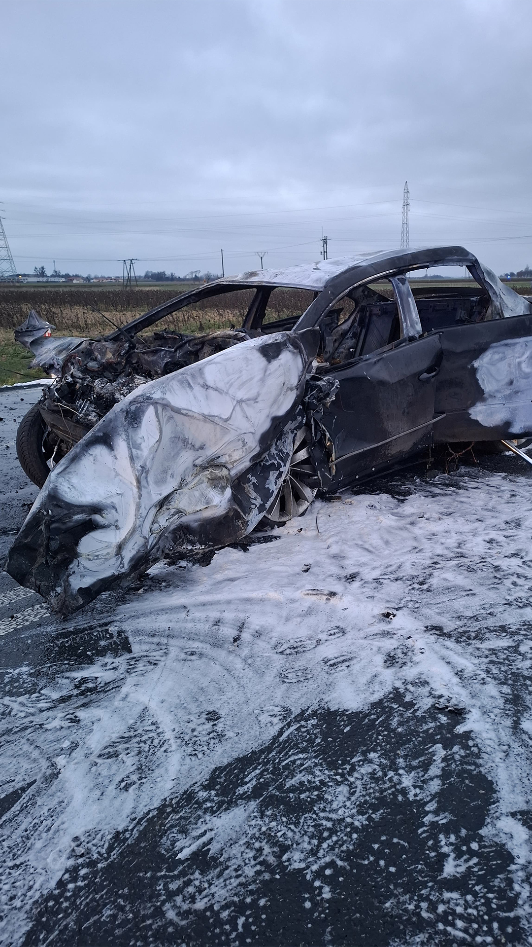 Wczorajszy wypadek to była czołówka. Doszło do tragicznego zderzenia dwóch pojazdów osobowych. Volkswagenem Passatem i fordem Kuga podróżowało w sumie sześć osób. W tym pierwszym samochodzie jechało pięć osób, a w drugim jedna. Po zderzeniu Passat stanął w ogniu. Wszystko spaliło się tak doszczętnie, że nie sposób było rozróżnić, kto zginął w tym aucie.