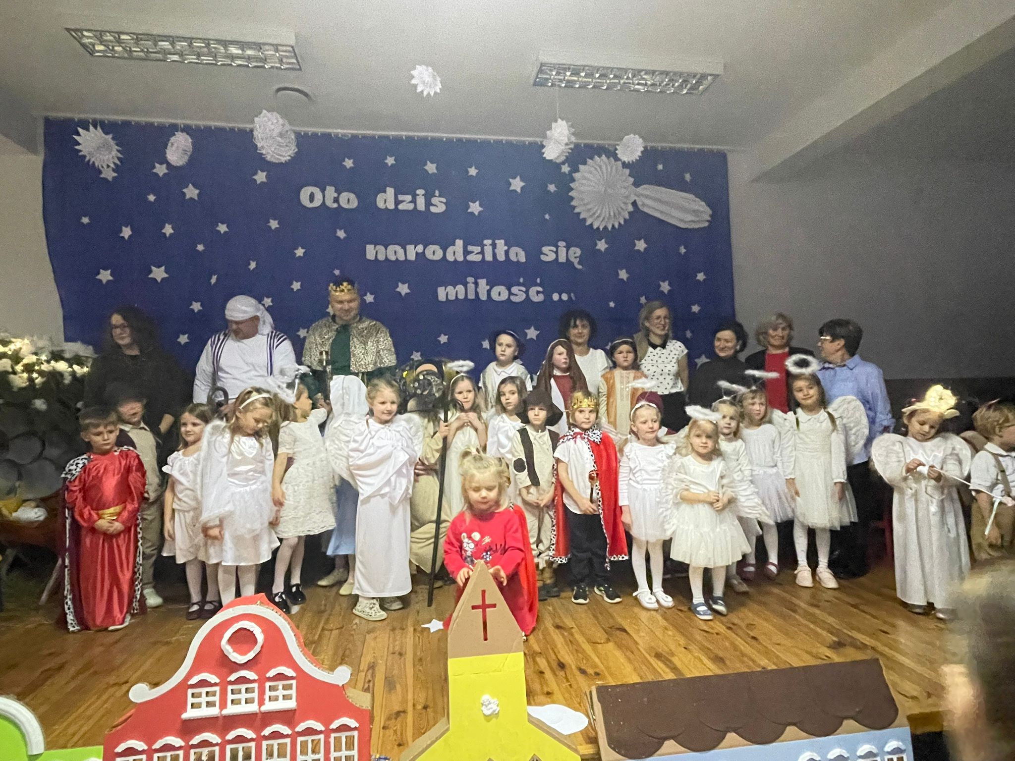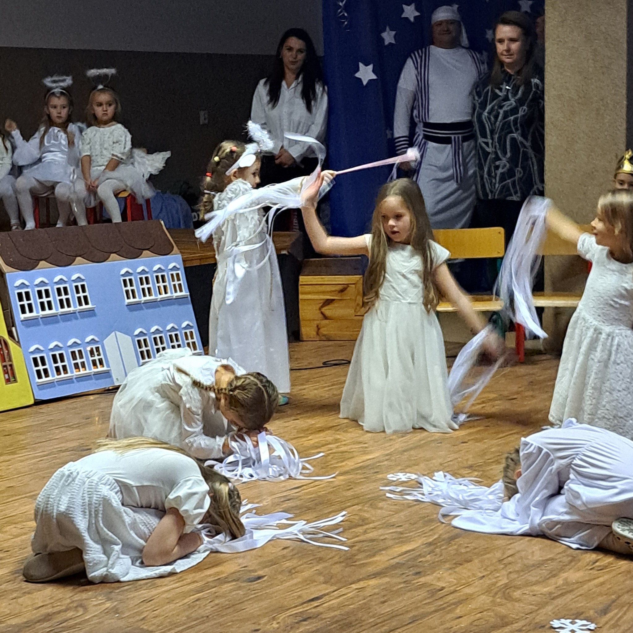 W to przedświąteczne popołudnie świetlica wiejska wypełniła się widzami, którzy tłumnie przybyli podziwiać małych artystów z Publicznego Przedszkola w Sobocisku. To był niezwykły czas, pełen świątecznej atmosfery, radości i wspólnego przeżywania magii Bożego Narodzenia. Dzieci zaprezentowały piękny i wzruszający występ. Z ogromnym zaangażowaniem recytowały teksty, śpiewały kolędy i piosenki świąteczne oraz tańczyły, wkładając w to całe serce. Było naprawdę magicznie. Mali artyści dali z siebie wszystko! Szczególne brawa należą się również rodzicom, którzy wzięli udział w przedstawieniu wcielając się w role króla Heroda i jego posłańców. Do występu dzieci zostały przygotowane przez panie: Annę Smoleń-Clanet i Magdę Franków.