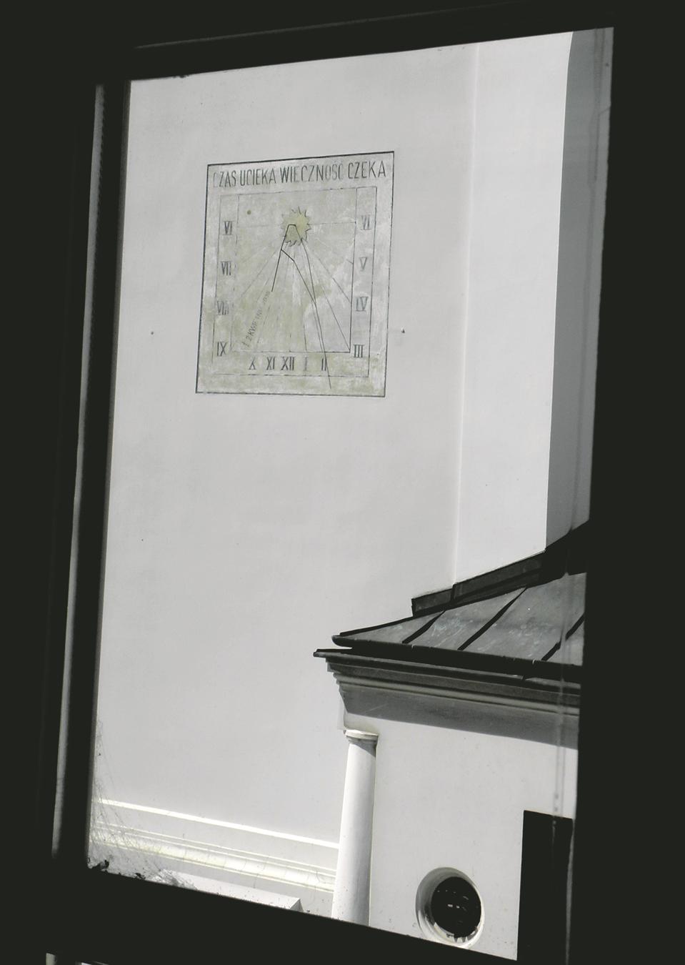 Gnomon zegara słonecznego nad południową kruchtą Sanktuarium Matki Bożej Pocieszenia w Oławie