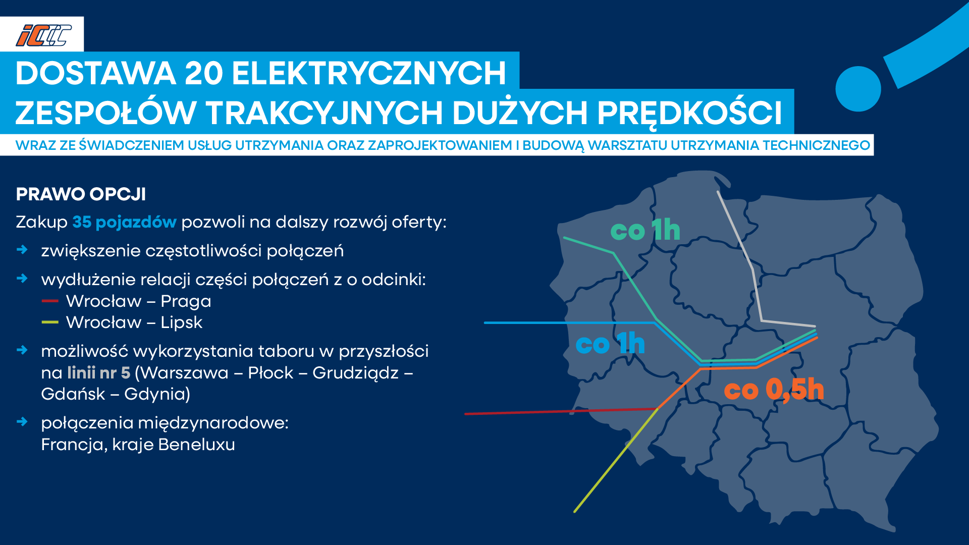- Warszawa – Łódź – Wrocław do kursów nawet co 30 minut.
