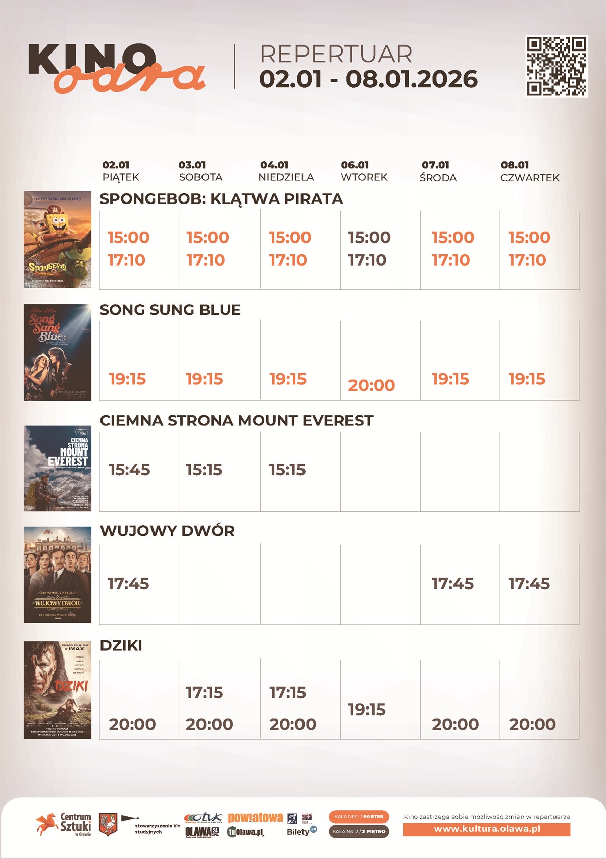 Repertuar od 2 do 8 stycznia 2026 r. W tym tygodniu wśród pięciu propozycji znajdziemy animowany film przygodowy pt. "SpongeBob: Klątwa pirata", reżyseria Derek Drymon