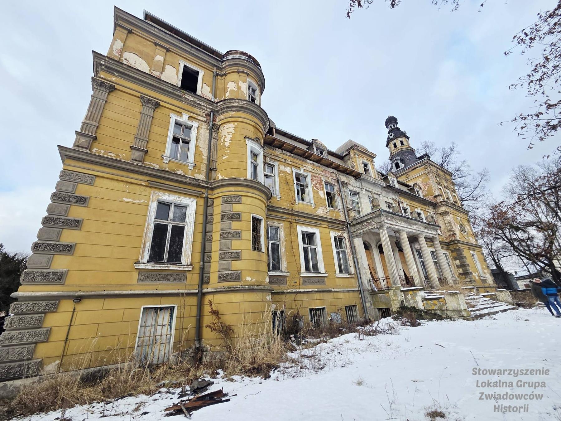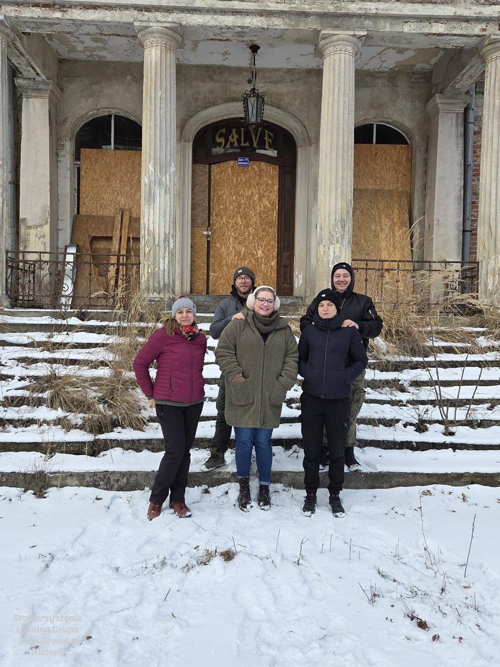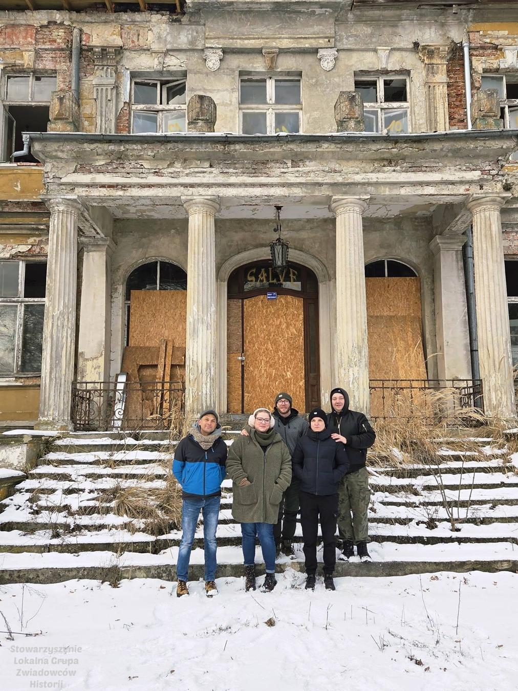 Po uzyskaniu wymaganych zgód możliwe było wejście na teren remontowanego zabytkowego pałacu w Jelczu, gdzie powitał ich napis nad drzwiami SALVE – Witaj, bądź pozdrowiony, Gościu!