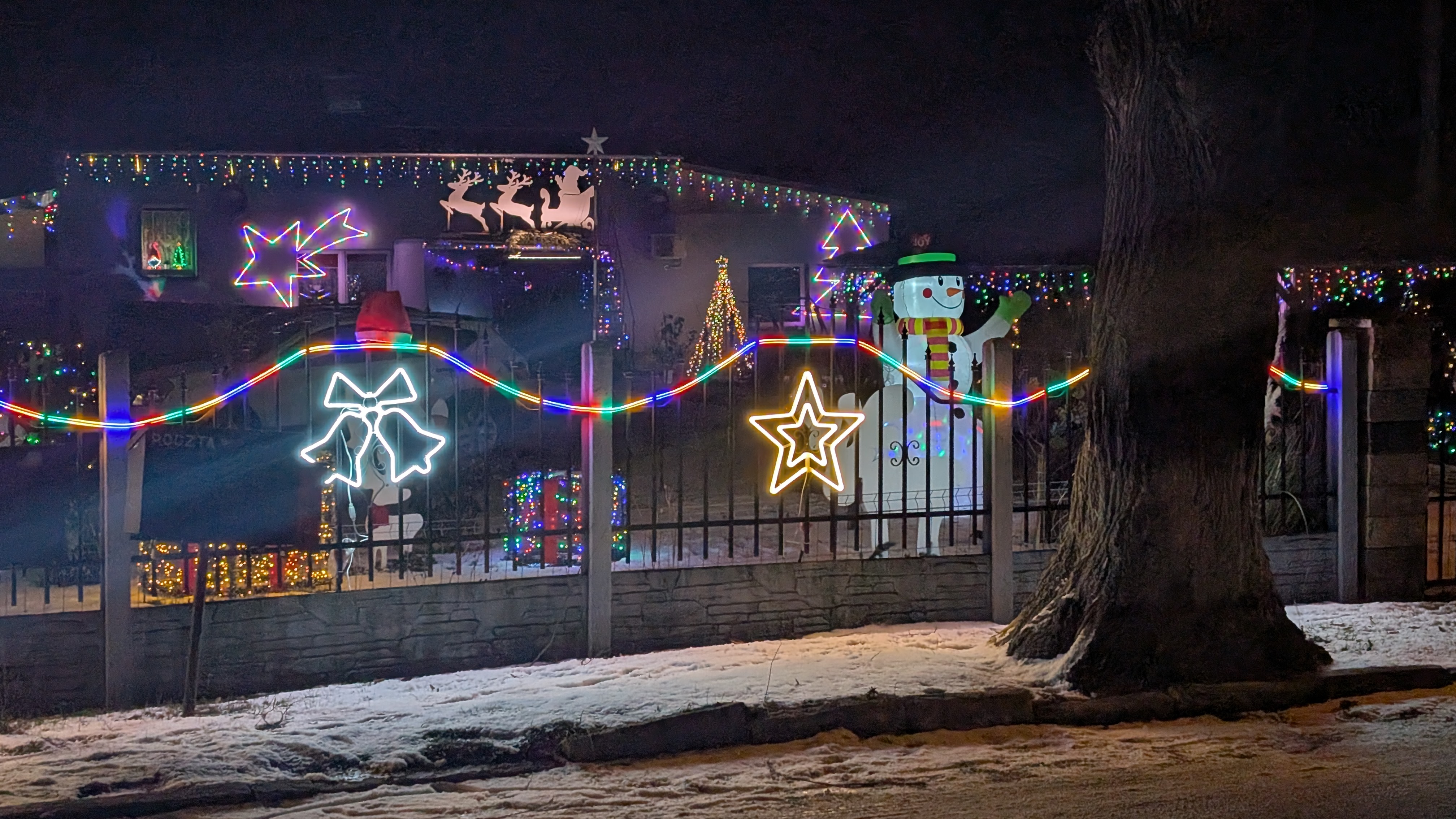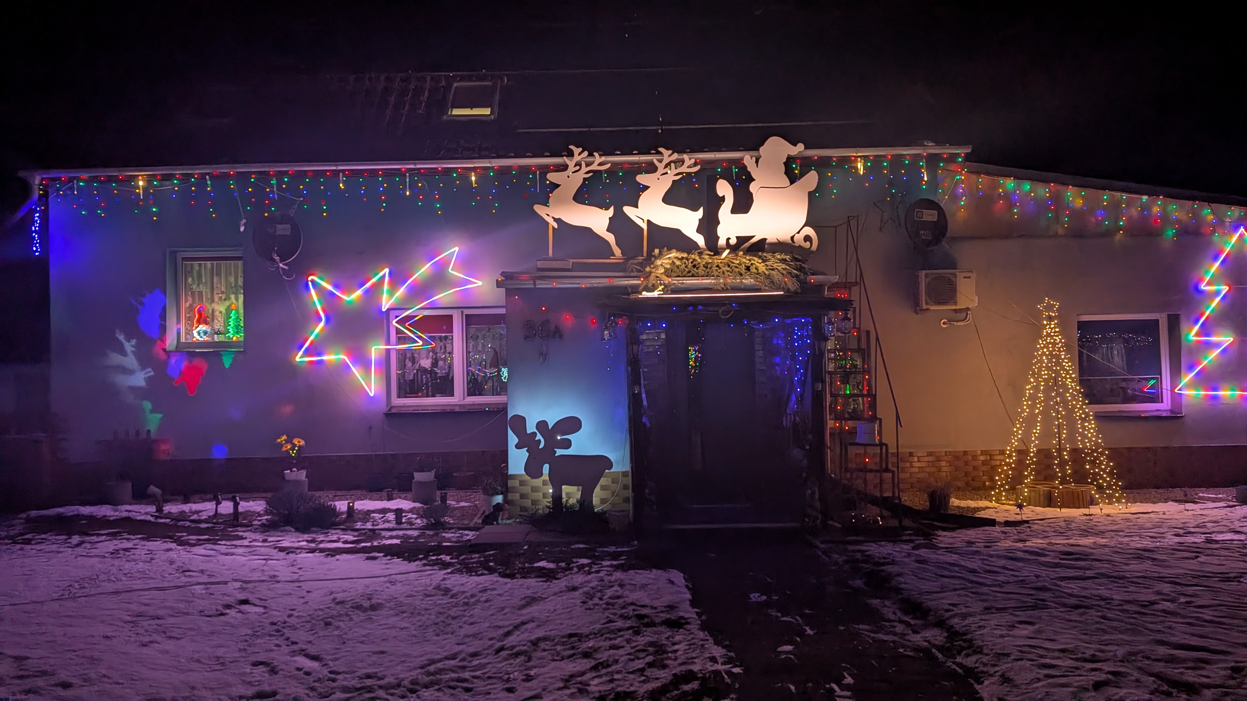 Mieszkańcy przychodzą oglądać, kręcą filmiki, robią zdjęcia. I trudno się dziwić, bo dekoracje robią wrażenie. To już nie tylko lampki na budynku, ale cała instalacja przydomowa plus ogrodzenie i plus papugi, które wieczorem słuchać po sąsiedzku, bo tak reagują na lampki. Czasem ktoś jedzie i zatrzyma się zaciekawiony. To chyba obecnie najczęściej odwiedzany dom w Wójcicach.