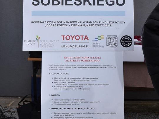 - Toyota to lider, jeżeli chodzi o rynek samochodowy, bo ma pomysły, które wykraczają poza teraźniejszość - mówiła Jolanta Szewczyk. - Nowatorstwo to jest cecha charakterystyczna tej firmy i to, co tutaj państwo widzą, też jest realizacją pomysłu, który wykracza w przyszłość. Ta "zielona strefa Sobieskiego", która w tej chwili jest biała, to nie tylko strefa, w której młodzież będzie wypoczywała, a zarówno oni jak i mieszkańcy będą mogli bezpiecznie zostawić swoje rowery, to też zielona klasa. Moim marzeniem jest, aby tutaj odbywały się też lekcje, bo gdy wychodzi się na otwartą przestrzeń, to zyskuje się otwartą głowę, a otwarta głowa to przyszłość edukacji, miejsce i możliwość tworzenia czegoś nowego. Mam nadzieję, że pomysły uczniów, które będą skutkiem edukacji w tej zielonej strefie, będą pomysłami sięgającymi w przyszłość.