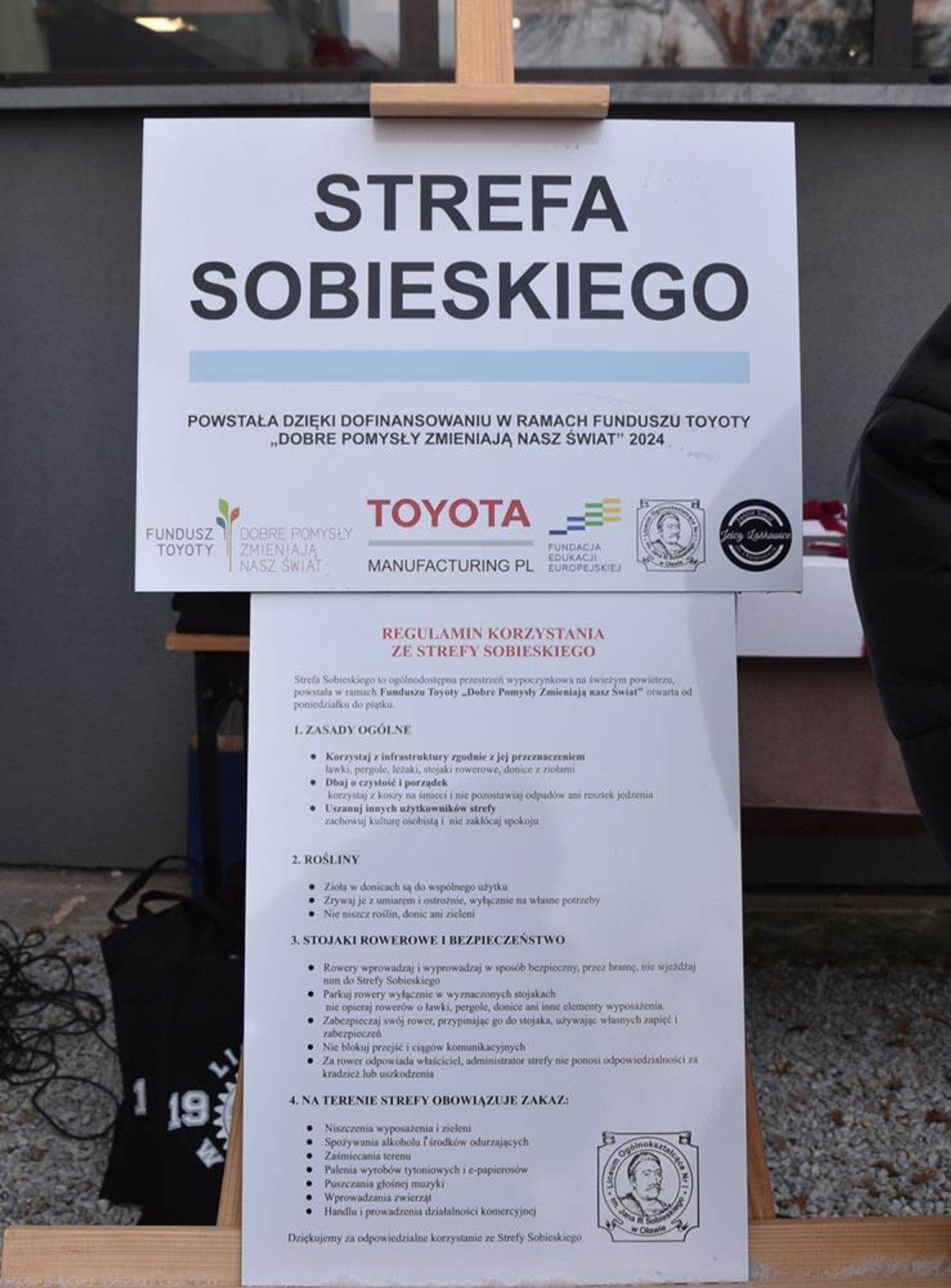 A to wszystko dzięki tym, którzy uwierzyli w pomysł wykorzystania zielonego skweru przy LO, który dotychczas był niewykorzystywany - czyli autorom pomysłu, tj uczniom i kadrze pedagogicznej oraz firmie Toyota, a dokładnie jej funduszowi "Dobre pomysły zmieniają nasz świat", z którego dofinansowano pomysł wykorzystania pustej przestrzeni i stworzenie tam miejsca pełnego życia.