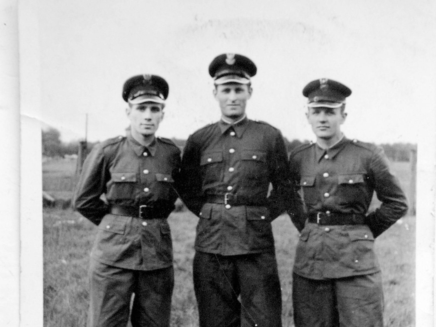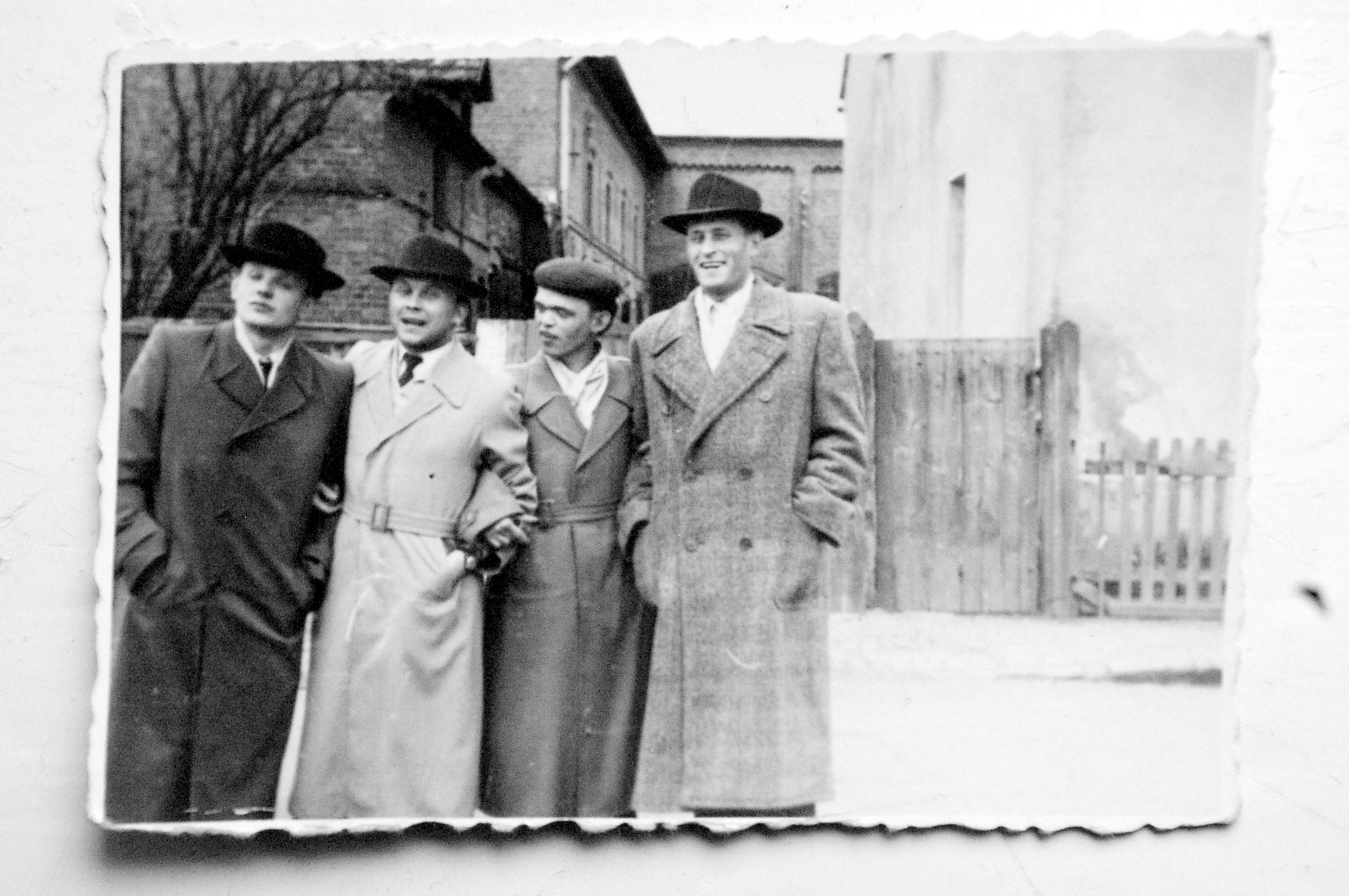 Franciszek Sumisławski, obok kolega niezwiązany z Sokołami, dalej Bolesław Telip i Ryszard Sławik. Zdjęcie zrobione w Laskowicach