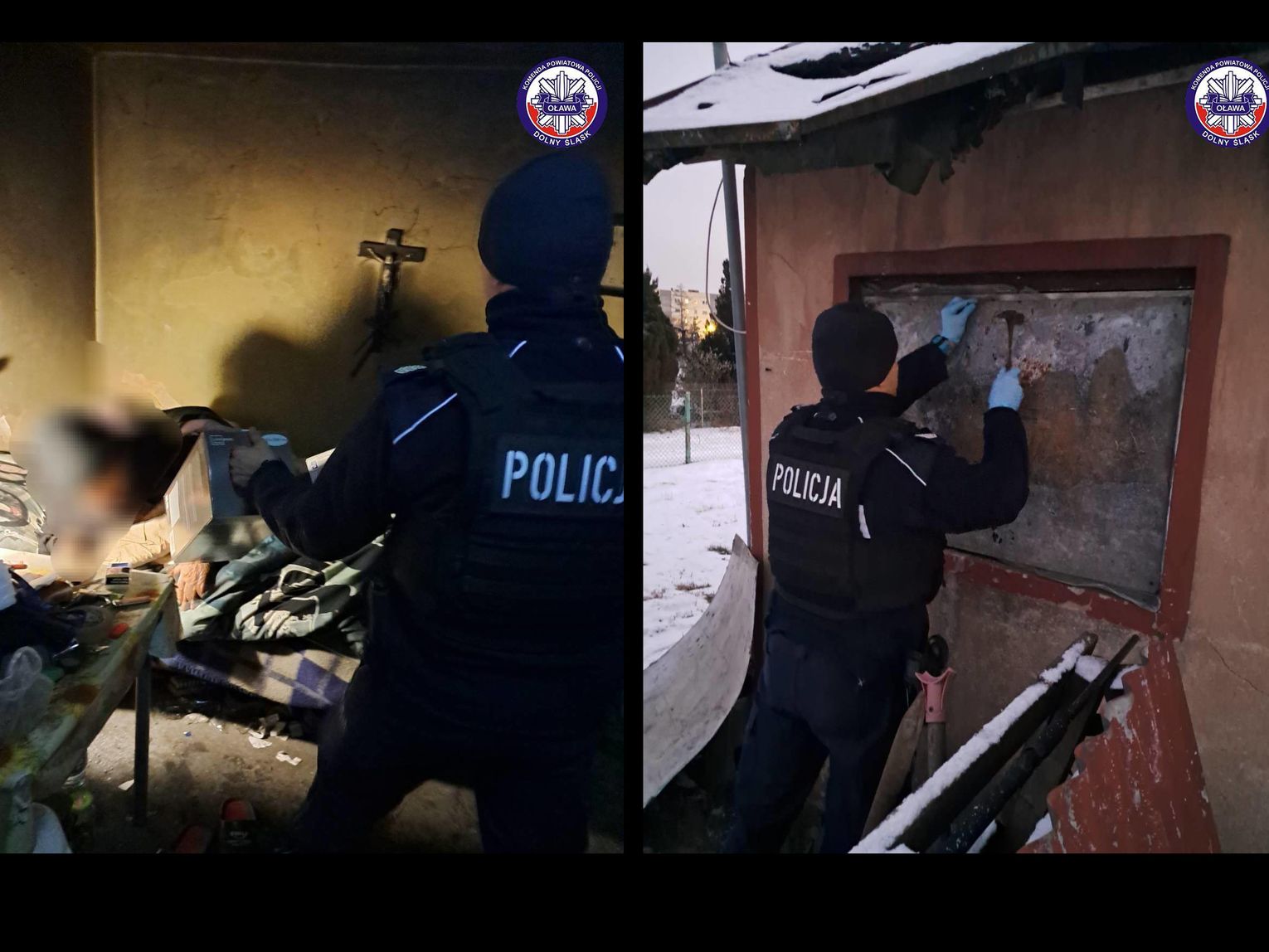 7 stycznia funkcjonariusze z Komisariatu Policji w Jelczu-Laskowicach sprawdzali, czy przebywające na działkach osoby nie potrzebują pomocy. Zastanemu mężczyźnie, mieszkającemu w bardzo trudnych warunkach, przekazali kołdrę i poduszkę, a także zabezpieczyli okno pozbawione szyb, chroniąc wnętrze przed mrozem. Kołdry i poduszki zostały przekazane Policji przez Gminę Jelcz-Laskowice, aby w czasie mrozów mogły trafić bezpośrednio do osób najbardziej potrzebujących. Mundurowi wożą je w radiowozach, by w każdej chwili móc szybko i skutecznie pomóc.