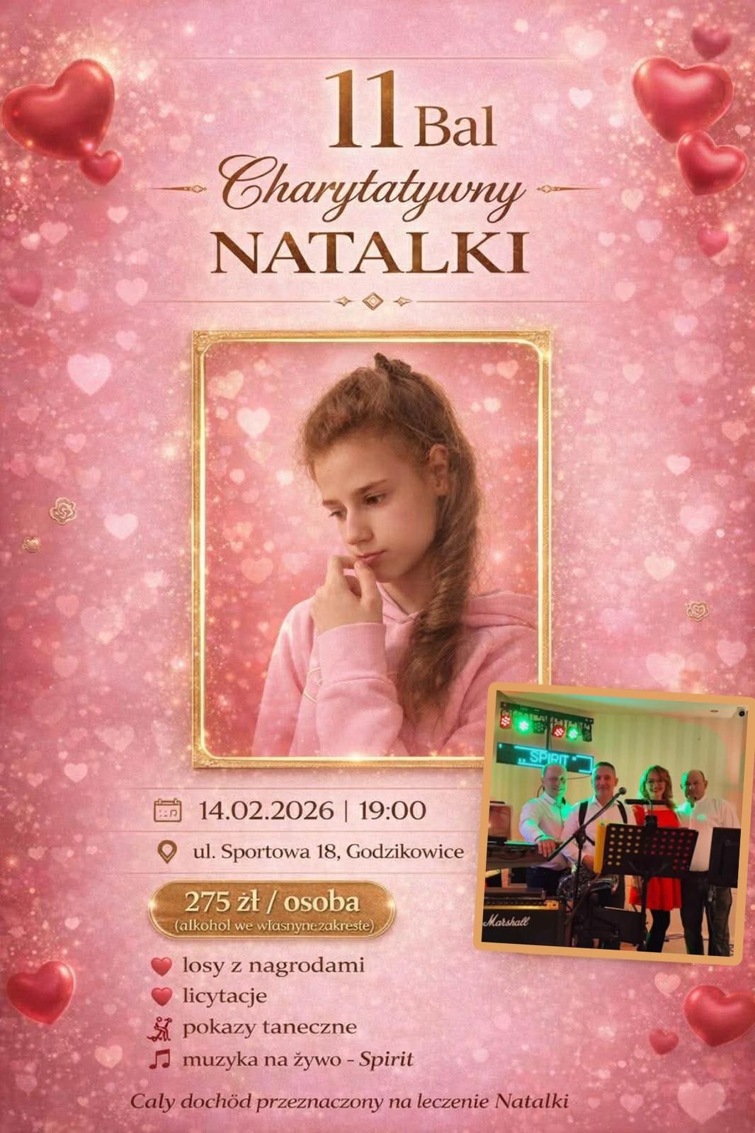 Zapraszamy wszystkich chętnych na zabawę i pomoc Natalii Zezula - bal charytatywny 14 luty 2026.