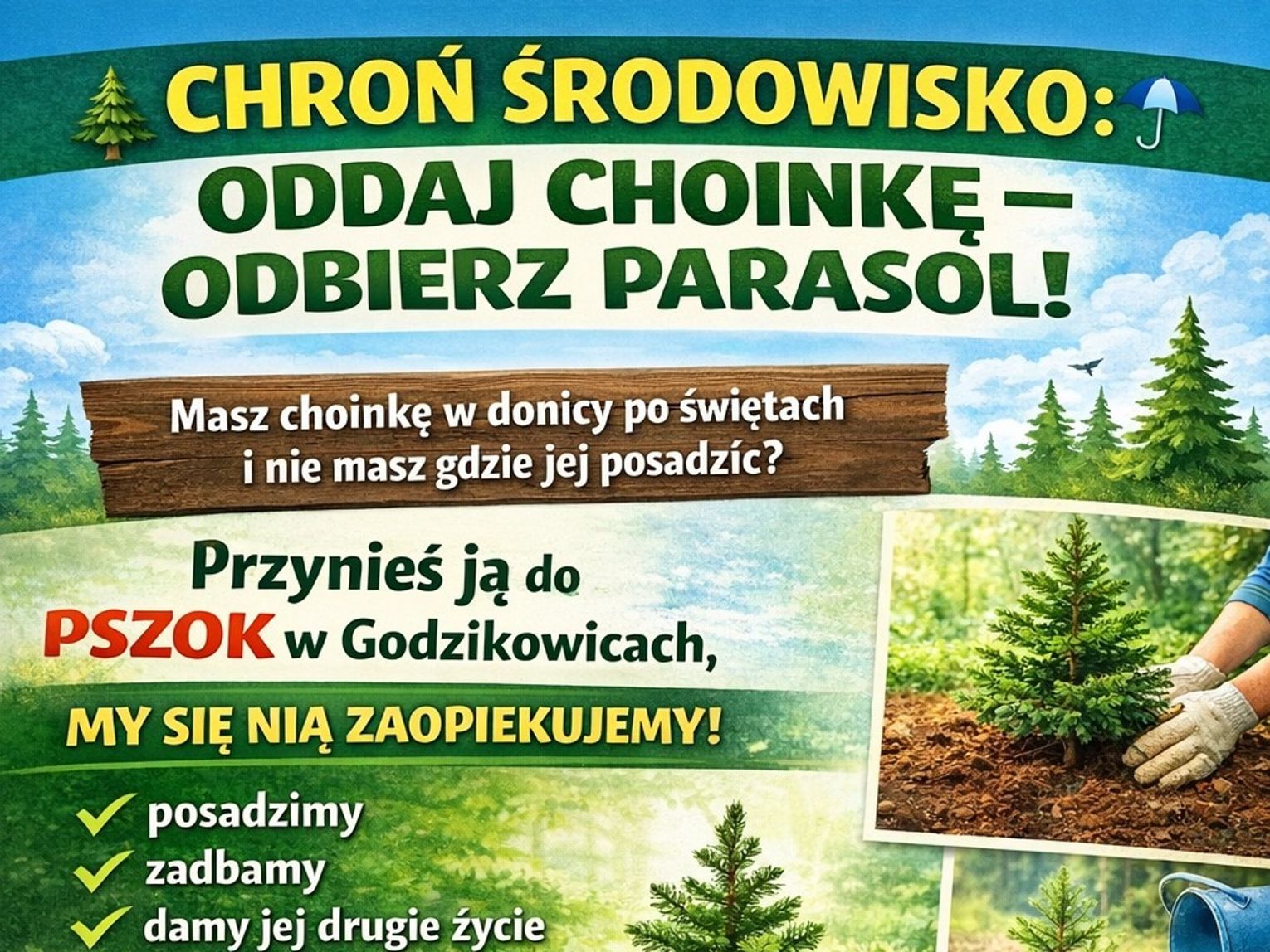 - Zapraszamy do udziału w ekologicznej akcji informuje organizator. Przynieś żywą choinkę w donicy do PSZOK w Godzikowicach,