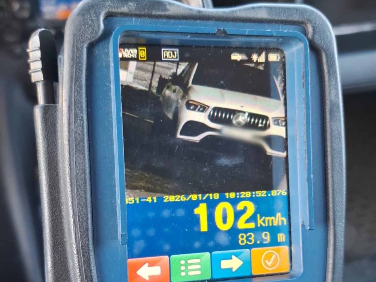 Mężczyzna pędził przez miejscowość, mając na liczniku swojego mercedesa 102 km/h. Kierujący stracił już prawo jazdy na najbliższe 3 miesiące i został też ukarany wysokim mandatem karnym, a na jego konto wpłynęło 13 punktów karnych.