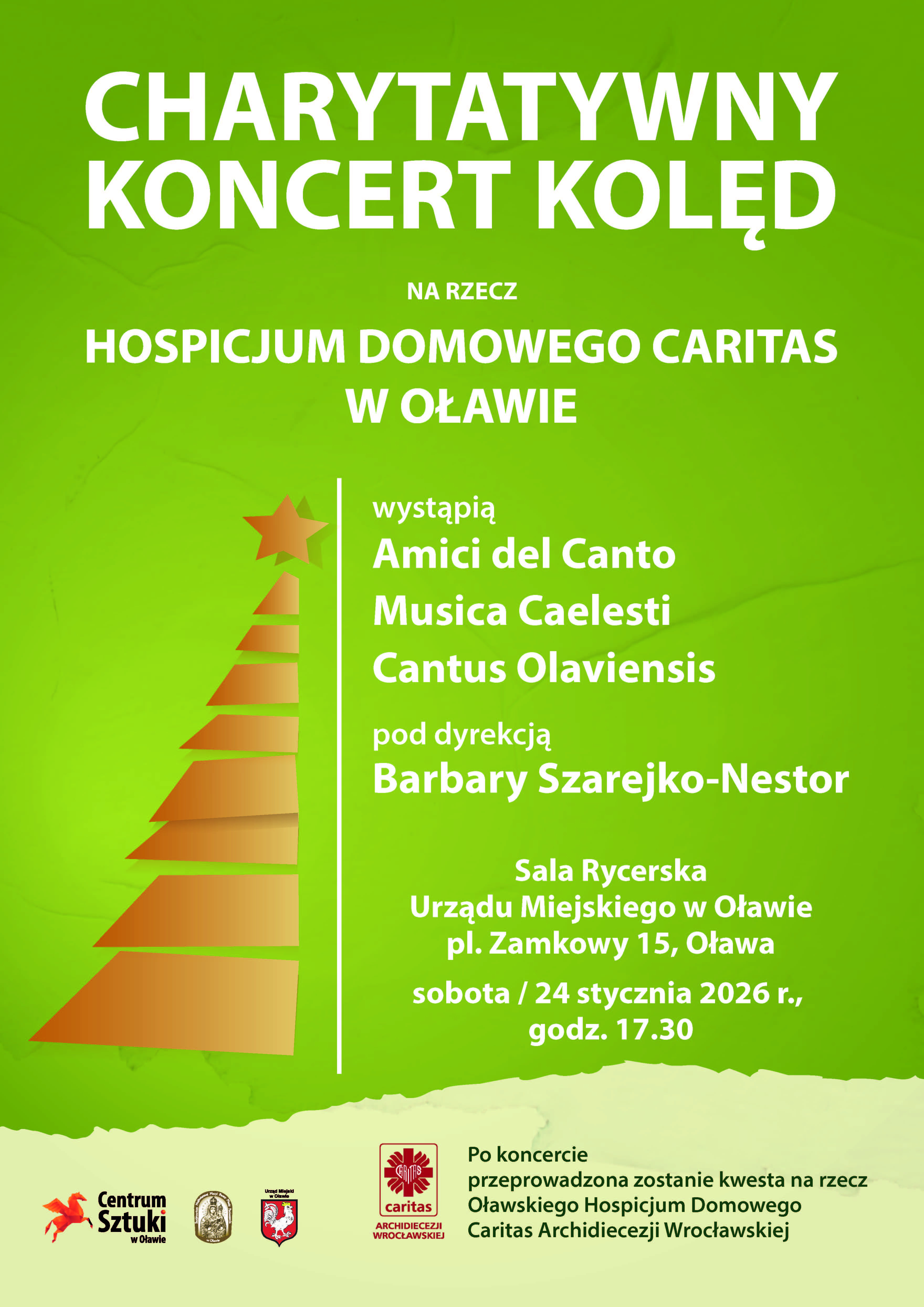 Będzie to koncert kolęd pod dyrekcją Barbary Szarejko-Nestor, odbędzie się w najbliższą sobotę 24 stycznia o godzinie 17:30 w Sali Rycerskiej UM Oława.