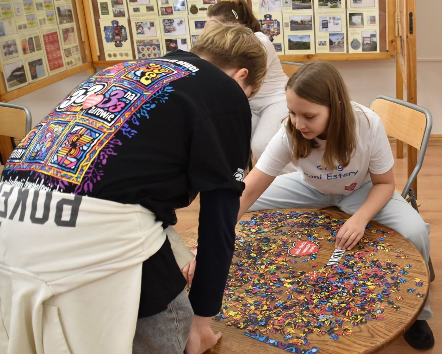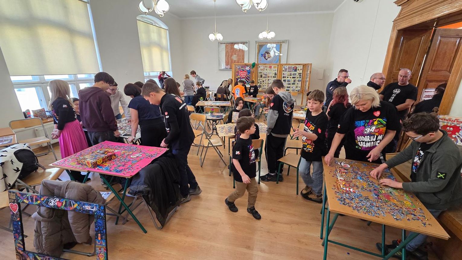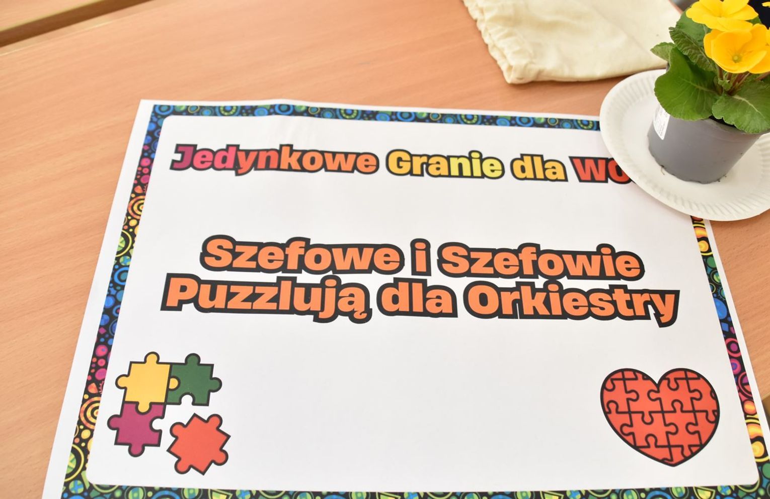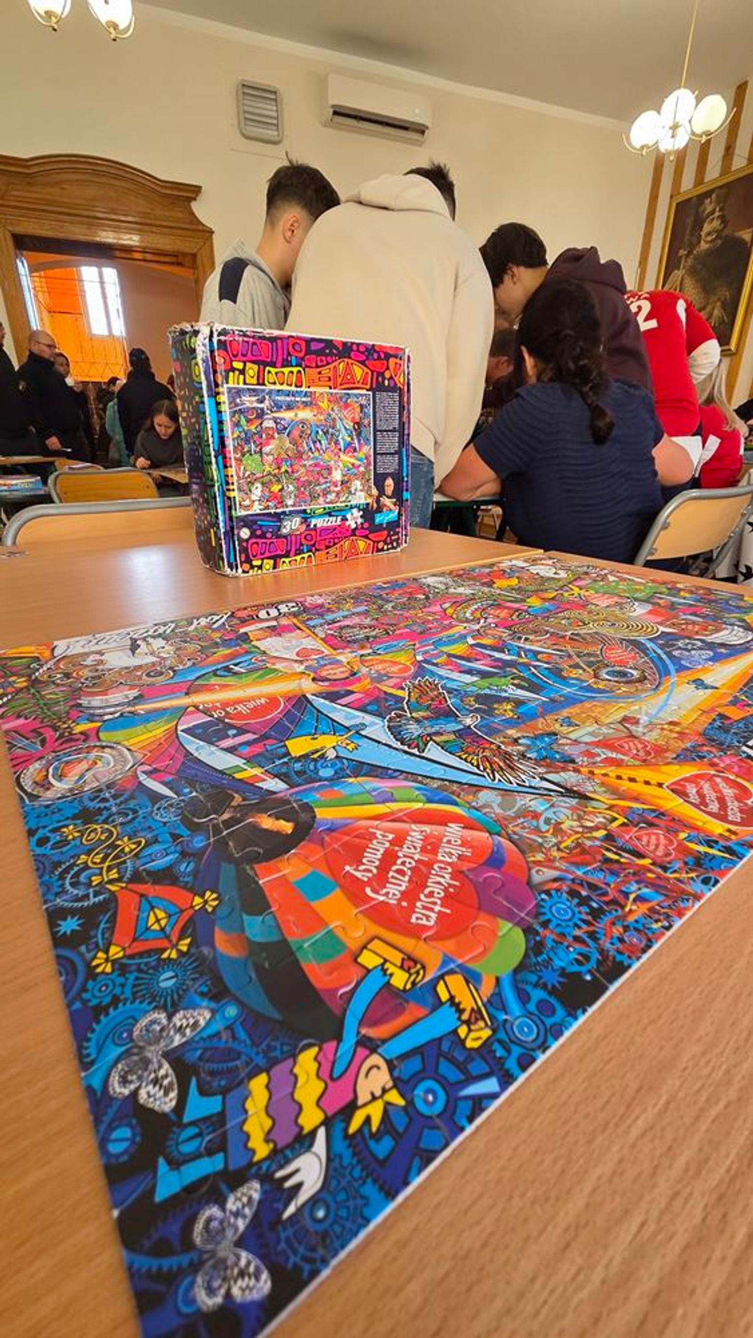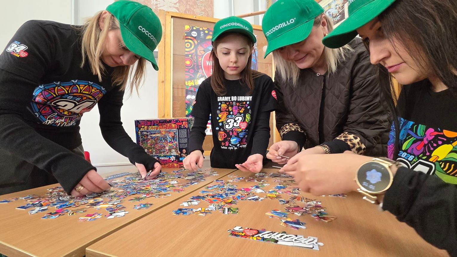- W tamtym roku ktoś zażartował: „A będzie burmistrz?” - wspomina pani Justyna. - Przyznam, że nie pomyśleliśmy nawet o tym, że do układania puzzli można zaprosić dorosłych. Dlatego w tym roku, przygotowując tę inicjatywę na „jedynkowy” finał WOŚP, uznaliśmy: a dlaczego by nie burmistrz czy inne osoby dorosłe - szefowe i szefowie, przy okazji z pełnymi portfelami. I w taki sposób w tym roku nie tylko dzieci układają puzzle, ale też dorośli, a dzieci im w tym towarzyszą.