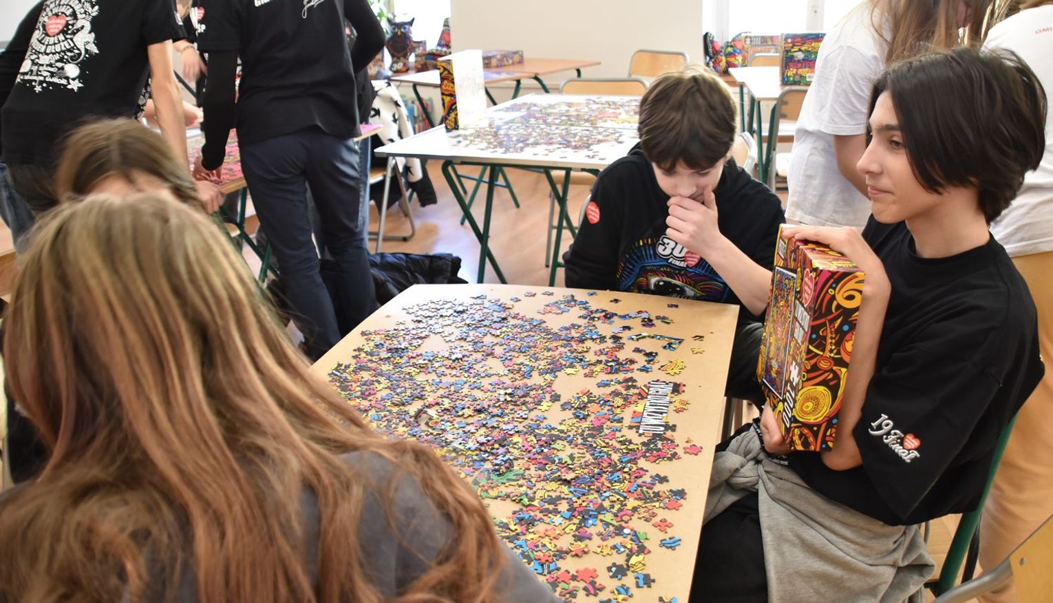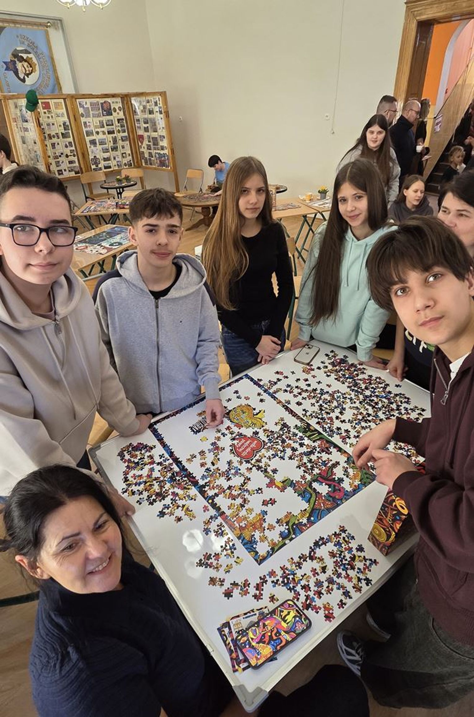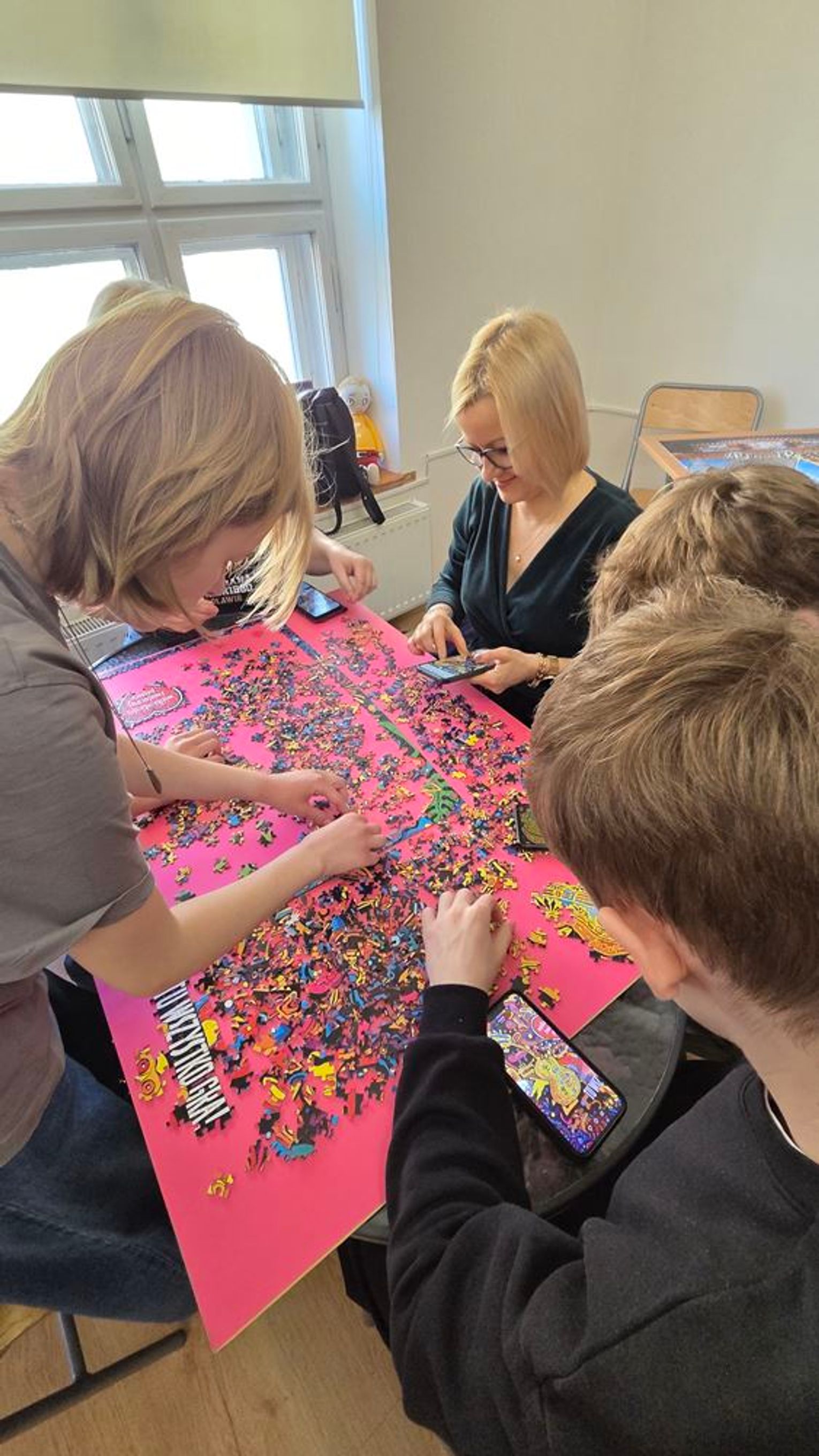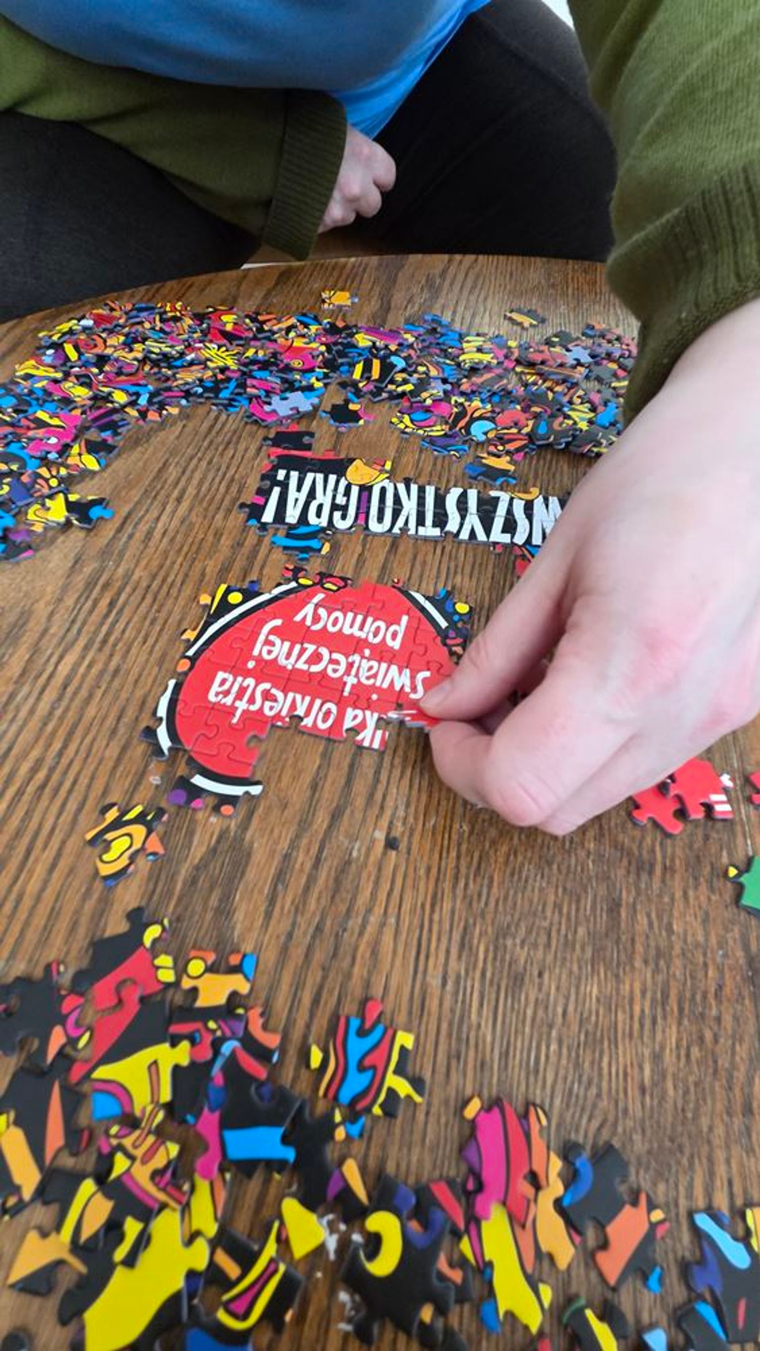 - W tamtym roku ktoś zażartował: „A będzie burmistrz?” - wspomina pani Justyna. - Przyznam, że nie pomyśleliśmy nawet o tym, że do układania puzzli można zaprosić dorosłych. Dlatego w tym roku, przygotowując tę inicjatywę na „jedynkowy” finał WOŚP, uznaliśmy: a dlaczego by nie burmistrz czy inne osoby dorosłe - szefowe i szefowie, przy okazji z pełnymi portfelami. I w taki sposób w tym roku nie tylko dzieci układają puzzle, ale też dorośli, a dzieci im w tym towarzyszą.