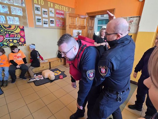 Uczestnicy mieli również okazję wziąć udział w lekcji udzielania pierwszej pomocy. Dla uczniów SP nr 1 to nie pierwszyzna. Magdalena Filuba, nauczycielka edukacji wczesnoszkolnej, wpaja im te umiejętności od pierwszej klasy, a jej koleżanki w poszczególnych klasach je kontynuują. Jak mówią uczniowie, są przygotowani, chętnie dzielą się wiedzą i z dumą prezentują swoje umiejętności.