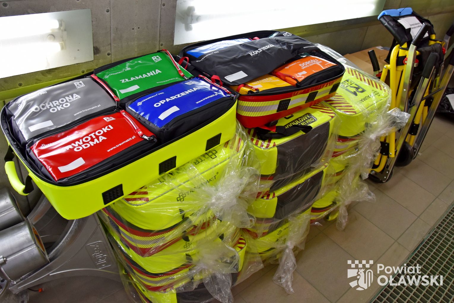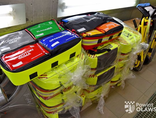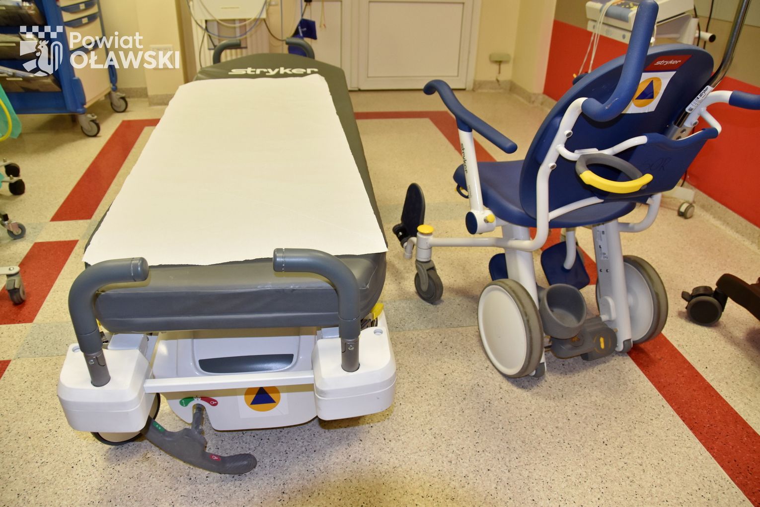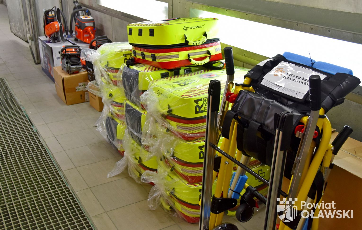 - sprzęt medyczny i ratowniczy: plecaki R1, krzesła ewakuacyjno-transportowe, wózki do przewożenia chorych,