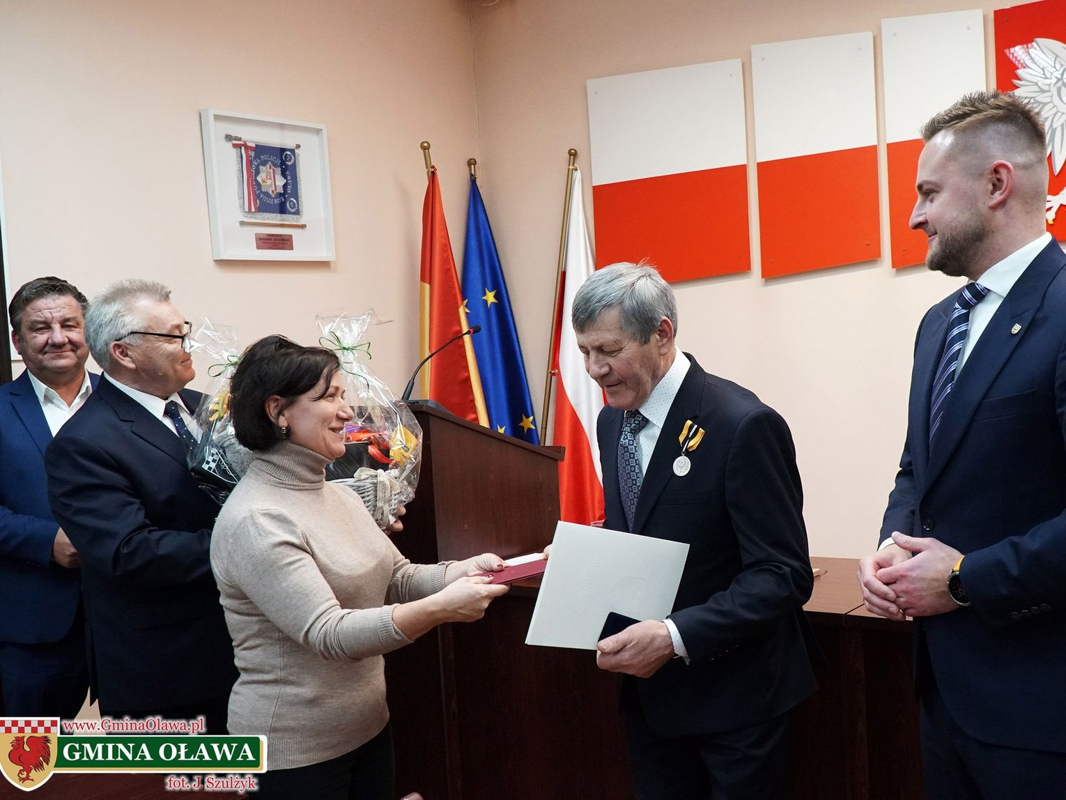 Symbolicznej dekoracji dokonał wicemarszałek województwa dolnośląskiego Michał Rado, który podkreślił, że to takie pierwsze indywidualne odznaczenie w naszej gminie i jest wyrazem uznania dla dekad pracy na rzecz naszej lokalnej wspólnoty. Wójt gminy Oława Artur Piotrowski składając gratulacje i życzenia przypomniał imponującą drogę samorządowca