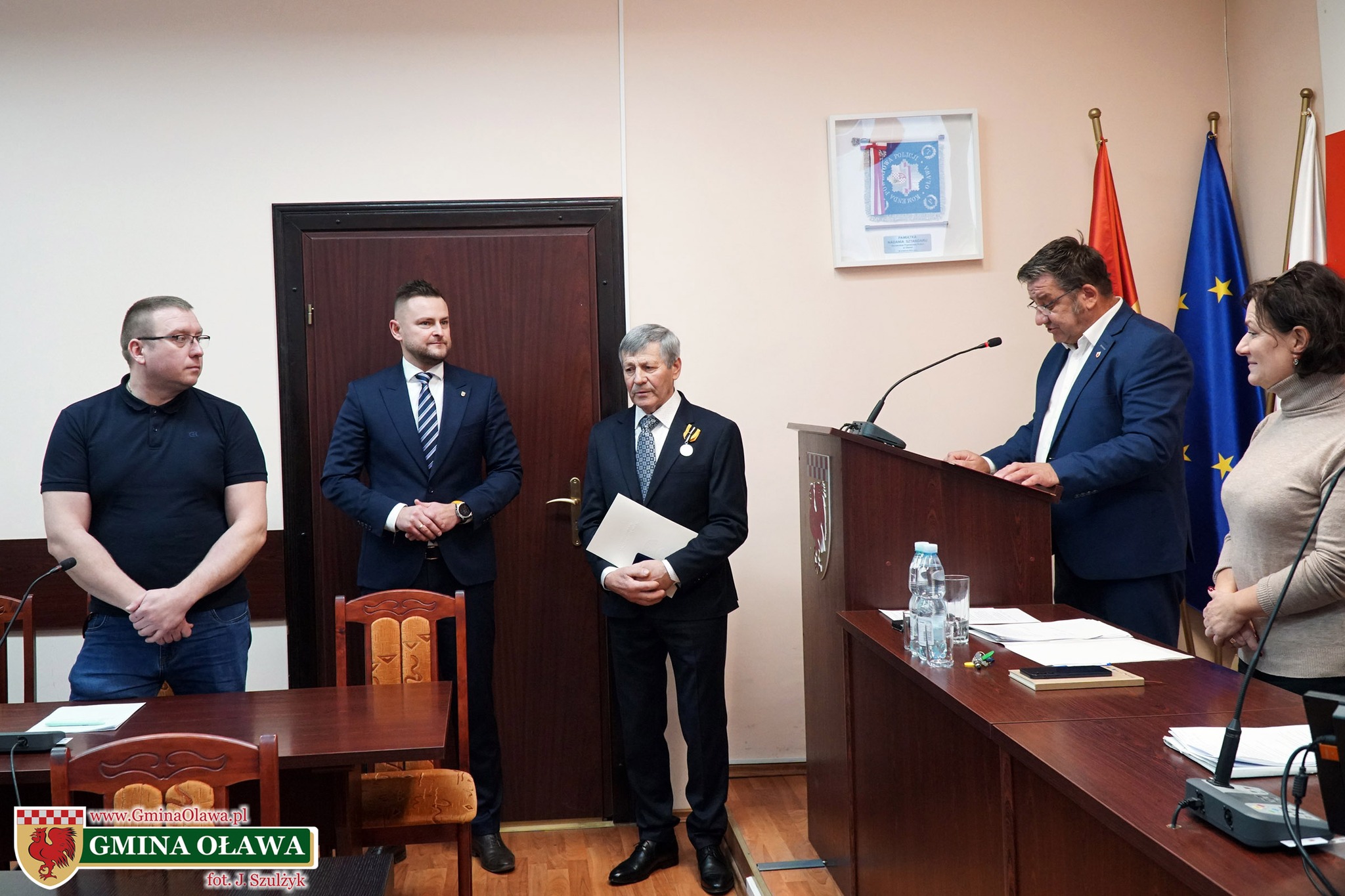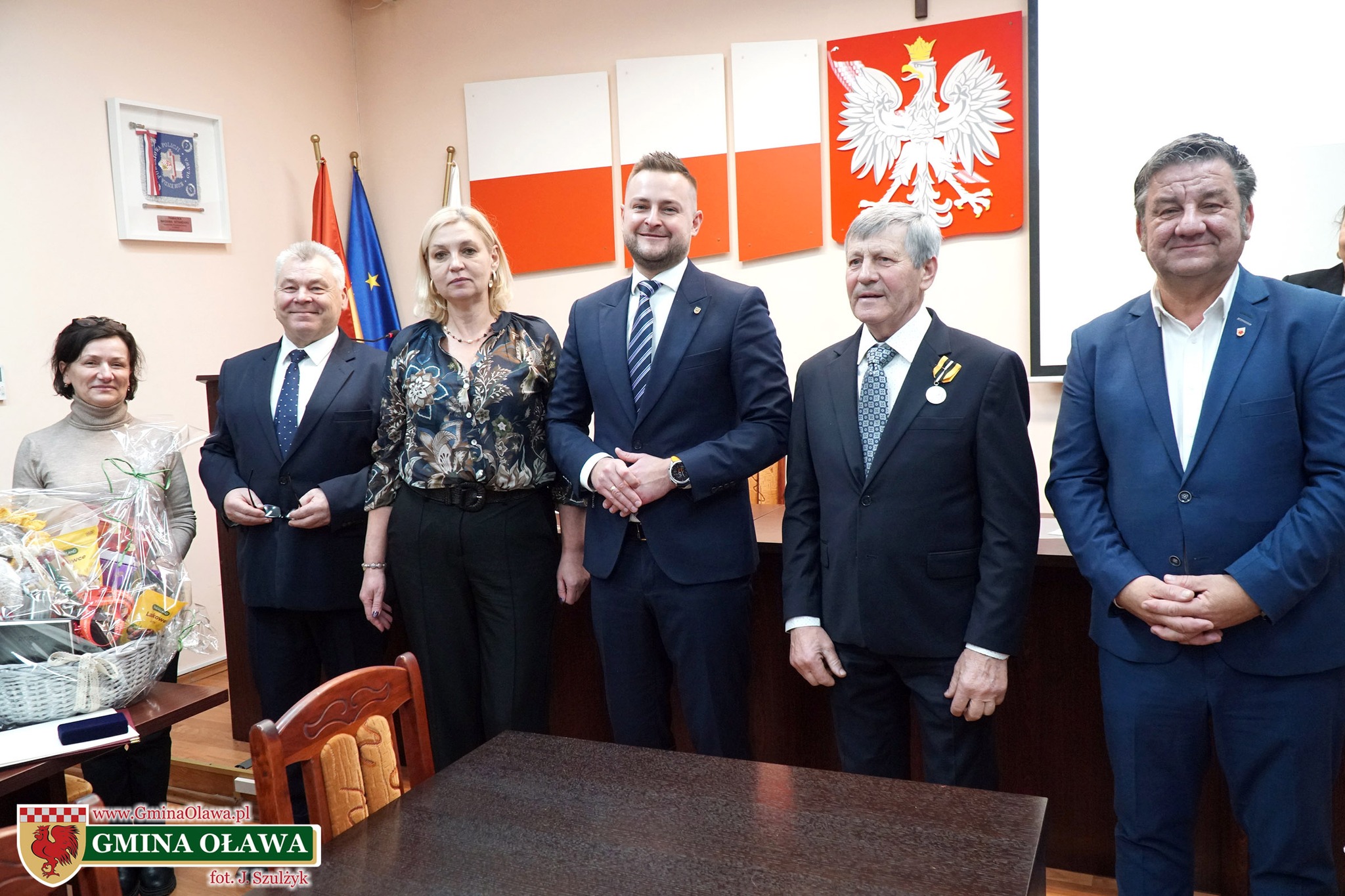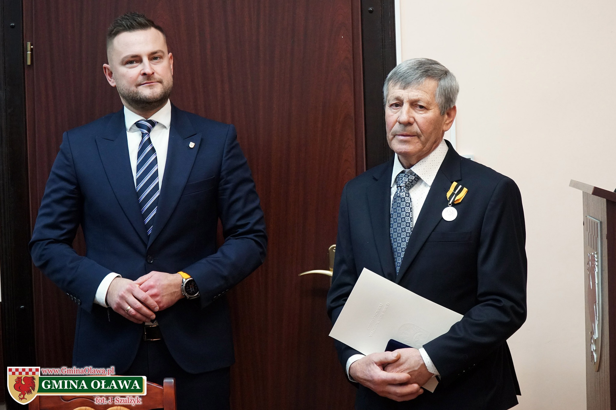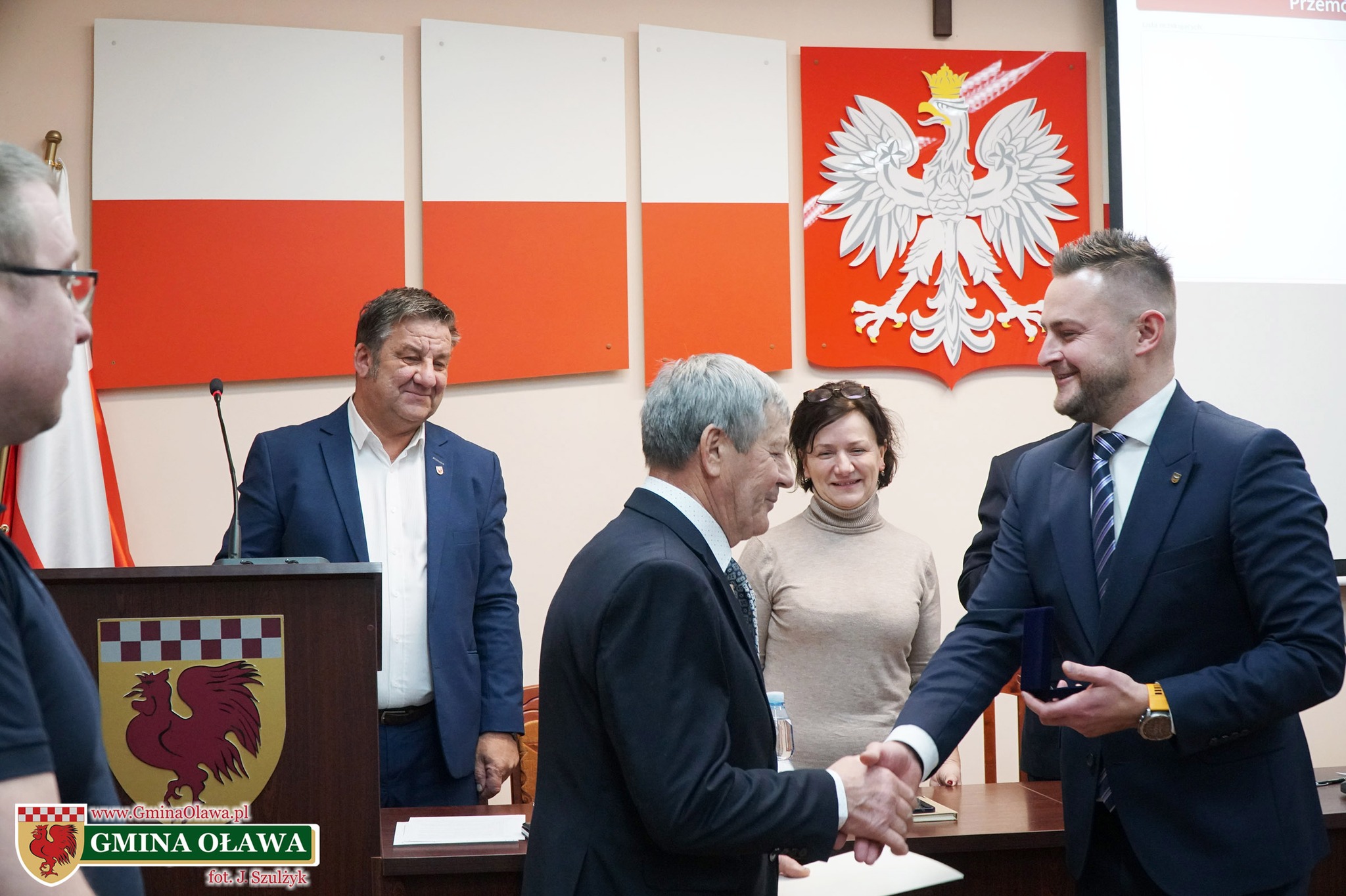 Życzenia i gratulacje wyróżnionemu złożył również przewodniczący Rady Gminy Oława Mariusz Olender. Odznaczenie przyznaje Sejmik Województwa Dolnośląskiego.