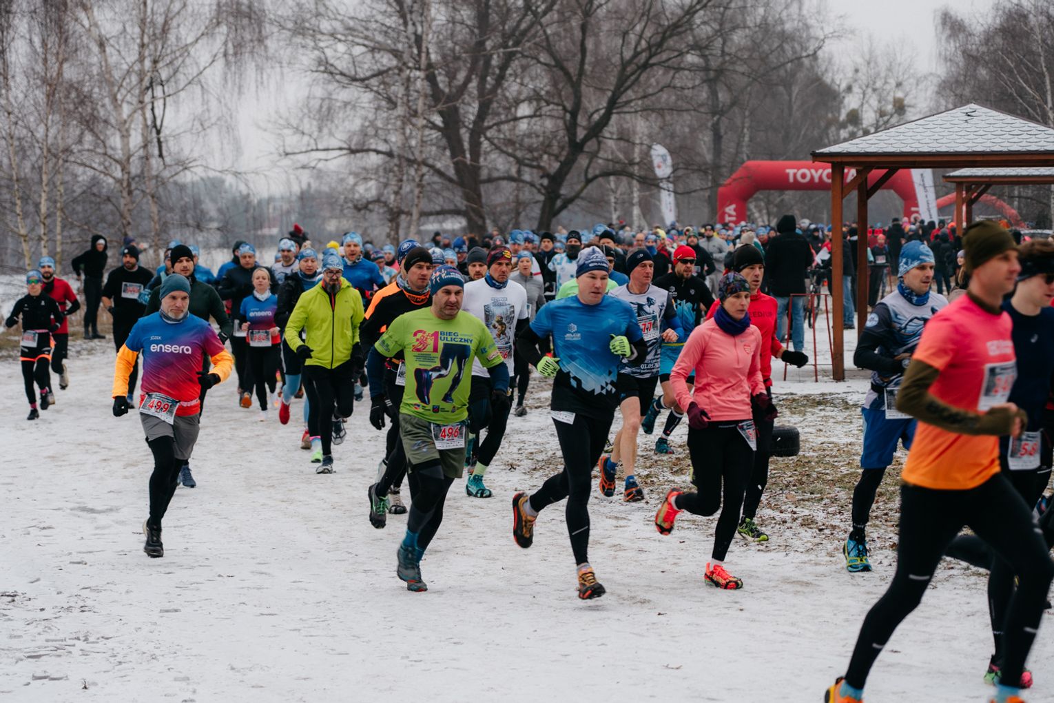 Trzeci etap Toyota Zimowego Maratonu na Raty zorganizowano w Jelczu-Laskowicach. Nieopodal pierwszego stawu zebrali się nie tylko uczestnicy cyklu. Nie brakowało także dzieci z puszkami, a tuż obok swoją imprezę miały "Morsy z Jelcza". Bieg odbywał się bowiem w dniu finału Wielkiej Orkiestry Świątecznej Pomocy. Z tego powodu wielu startujących miało ze sobą wośpowe akcenty, a część z nich po rywalizacji dołączyła do morsów, którzy swoje główne wejście do wody zaplanowali godzinę po starcie wyścigu.