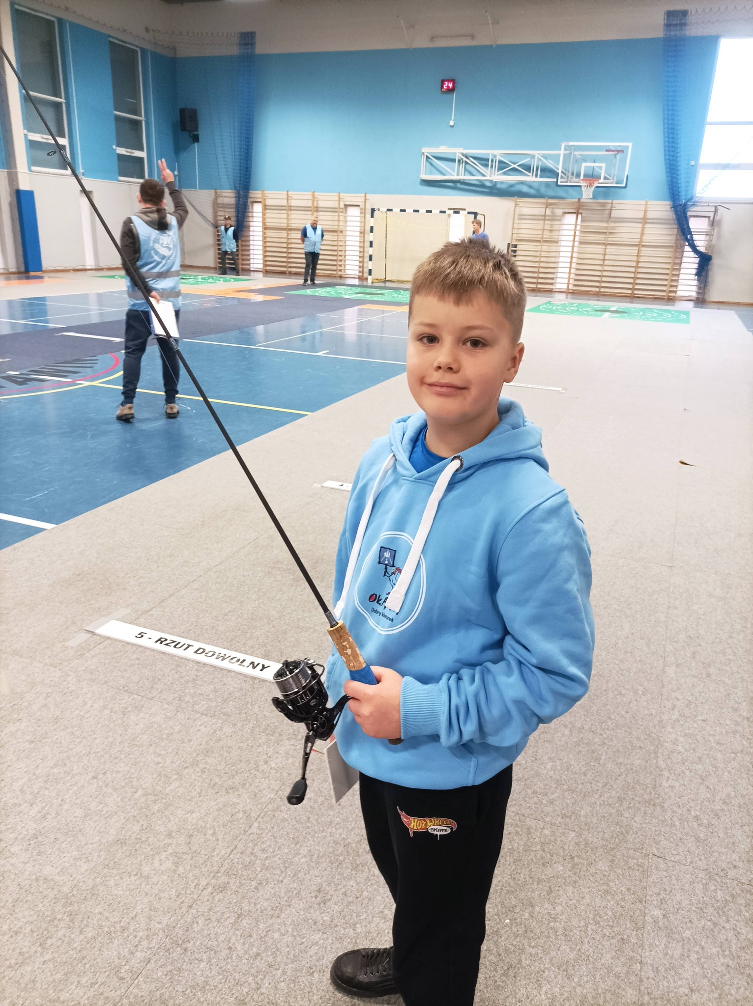 Maksymiliana Łabowskiego za zajęcie 1 miejsca w teście wiedzy ekologiczno-wędkarskiej oraz 3 miejsca w trójboju spiningowym w kat.U12!