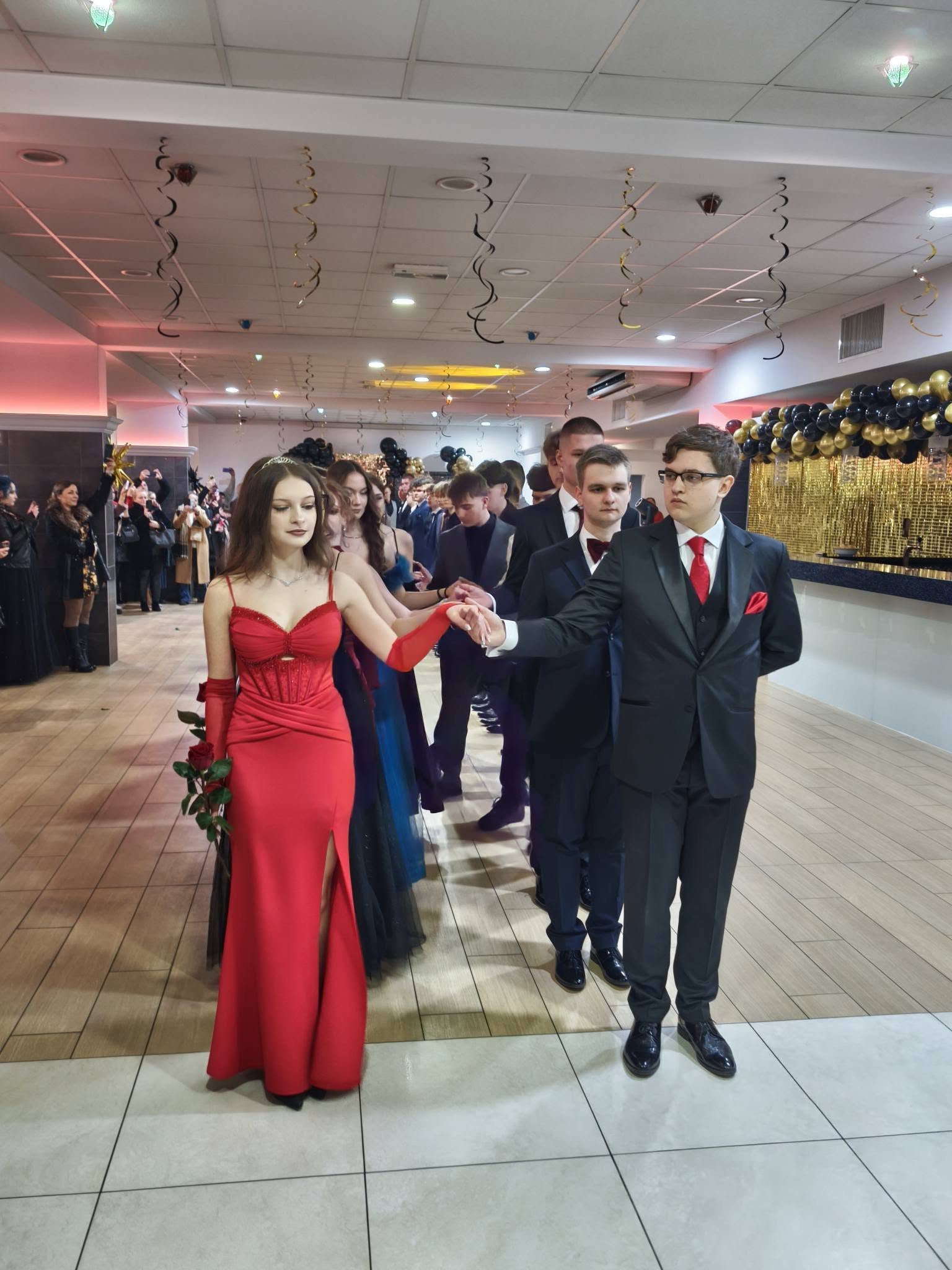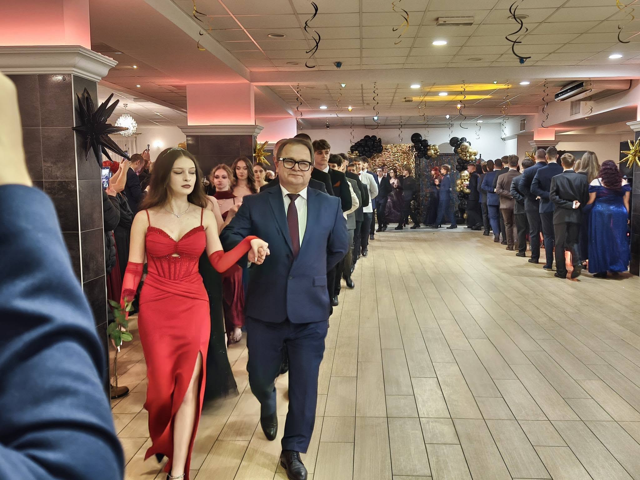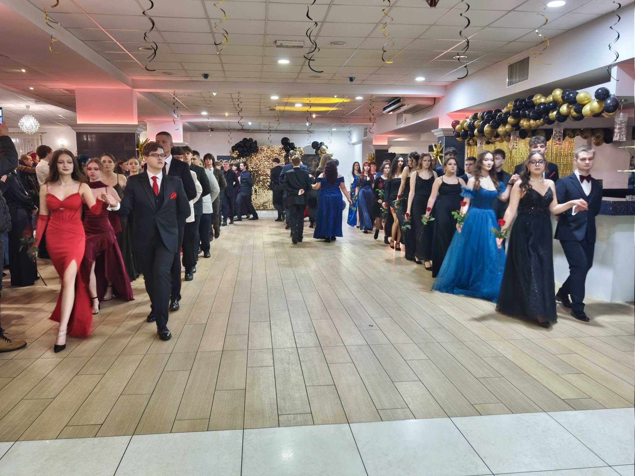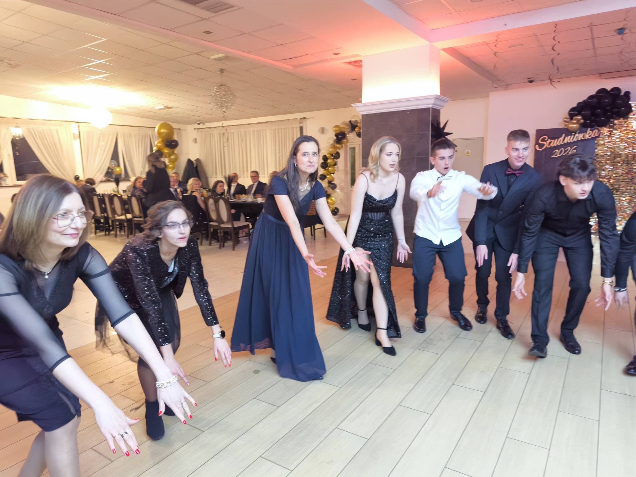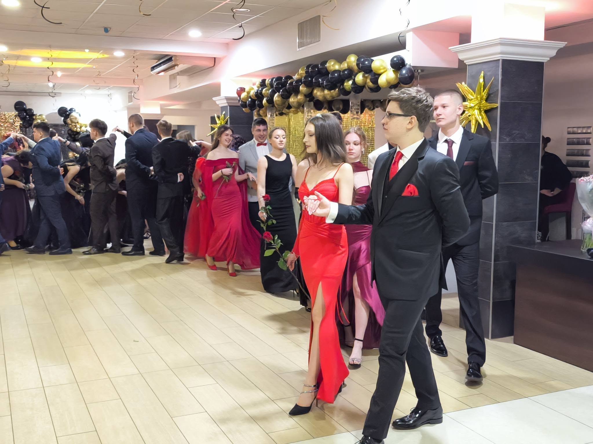 Po części oficjalnej przyszedł czas na wspólną zabawę, tradycyjnego poloneza oraz radosne świętowanie, które trwało do późnych godzin nocnych. Studniówka była nie tylko okazją do doskonałej zabawy, ale również momentem integracji i refleksji nad kończącym się etapem edukacji szkolnej.