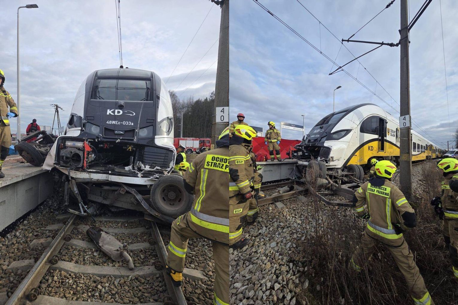Do wypadku doszło na przejeździe kolejowym w Chrząstawie Małej. Na miejsce zadysponowano 13 zastępów JOP, w tym Specjalistyczną Grupę Ratownictwa Technicznego Wrocław oraz zastępy z JRG Jelcz-Laskowice z KP PSP w Oławie.