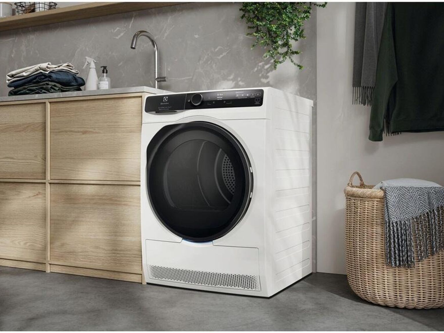 Suszarka Electrolux AbsoluteCare to urządzenie zaprojektowane do precyzyjnego suszenia szerokiego spektrum tkanin — od jedwabiu i wełny po ciężkie, wielowarstwowe elementy puchowe. Model Electrolux AbsoluteCare EW9D787KCP łączy w sobie technologie pozwalające na kontrolę temperatury, wilgotności i ruchu bębna, co minimalizuje ryzyko skurczenia, odkształceń i zbryleń puchu. Urządzenie służy nie tylko do suszenia ubrań, ale także do pielęgnacji pościeli i dużych wsadów, zastępując część wizyt w pralni dzięki możliwości bezpiecznego domowego suszenia.