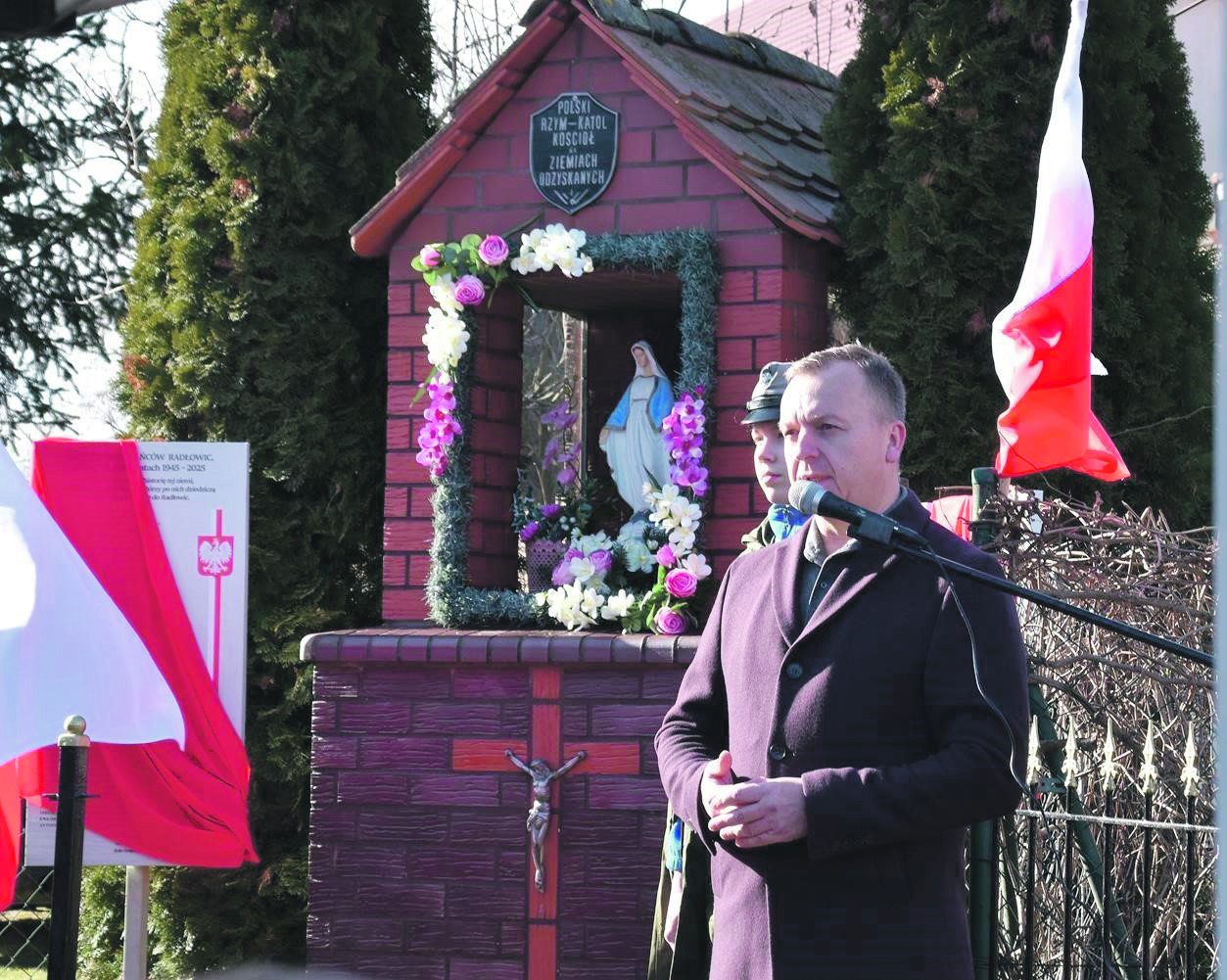 - Dzisiejsza uroczystość jest wyrazem naszej odpowiedzialności za pamięć narodową - kontynuował. - Sybir, Kresy, Wołyń to nie są hasła, to losy konkretnych ludzi, często naszych rodziców i dziadów. Jako sybiracy i potomkowie kresowian czujemy szczególny obowiązek przekazywać te prawdy kolejnym pokoleniom. Żywimy nadzieję, że pamięć o ludziach, którzy przeżyli gehennę zesłania i bestialstwa mordów, przetrwa i będzie lekcją żywej historii dla dalszych pokoleń. Czynimy to z szacunku dla historii i dbałości o patriotyczne wychowanie młodzieży. Nasze doznania nich będą przestrogą dla przyszłych pokoleń i skłonią je do samodzielnego interpretowania wydarzeń, a nie odgórnie narzucanych w ramach poprawności politycznej, półprawd i kłamstw historycznych. Jesteśmy dumnym narodem o tradycji państwowej i żądamy szacunku od innych narodów za uwagi na swoją historię. Niech odsłonięte i poświęcone dziś tablice będą znakiem pamięci prawdy. Niech uczą, że wolności nie daje się raz na zawsze, że historia potrafi się powtórzyć.