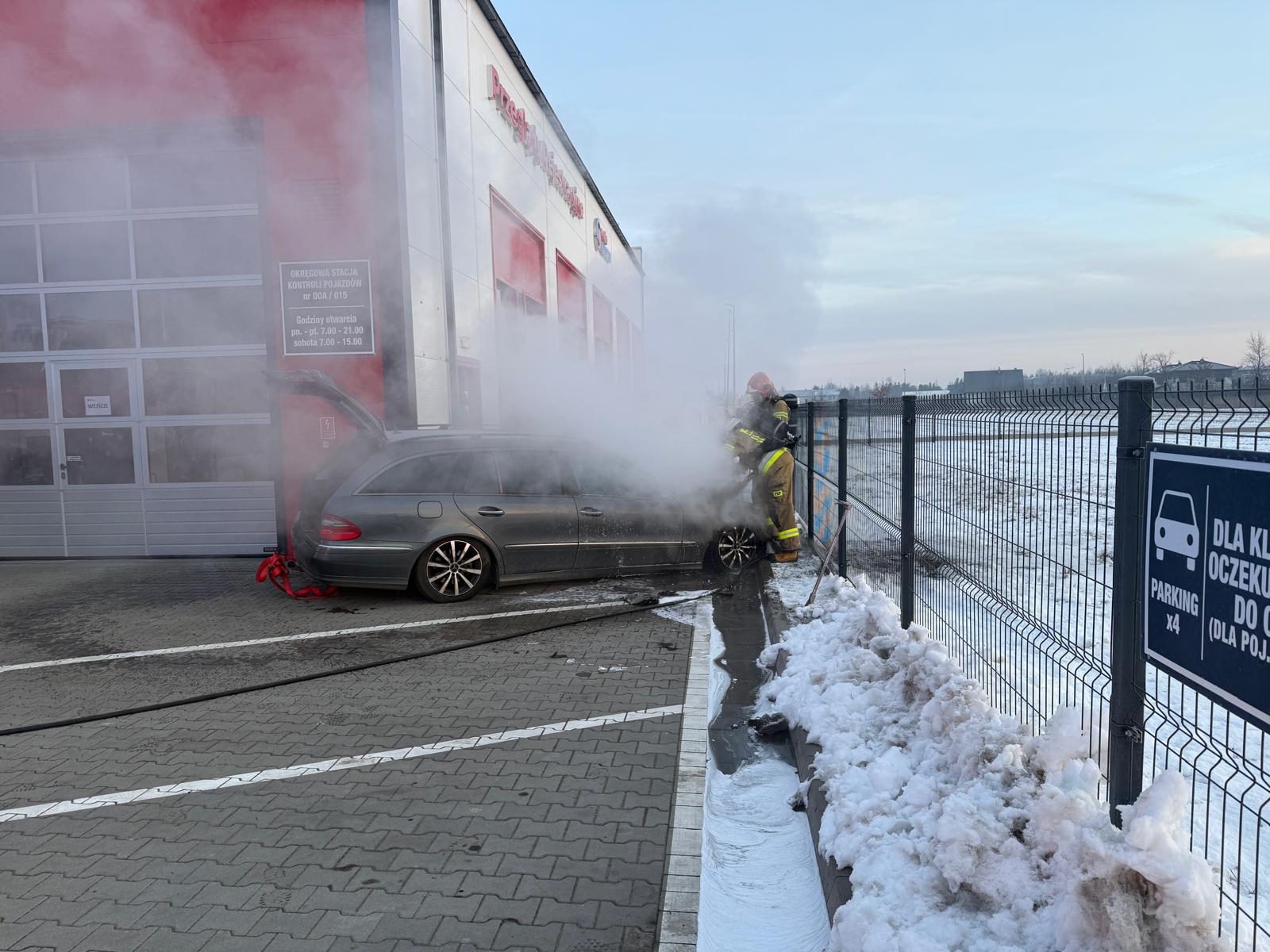 Po dojeździe na miejsce zdarzenia stwierdzono, że pożarem objęta była przednia część pojazdu. Działania strażaków polegały na zabezpieczeniu miejsca zdarzenia oraz podaniu jednego prądu piany ciężkiej na źródło pożaru. Pożar ugaszono. Działania na miejscu zdarzenia zakończono około 7:30. W działaniach udział brały 2 zastępy straży pożarnej JRG Jelcz-Laskowice oraz Policja.