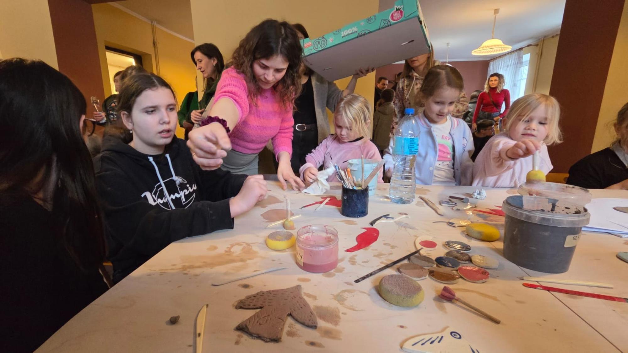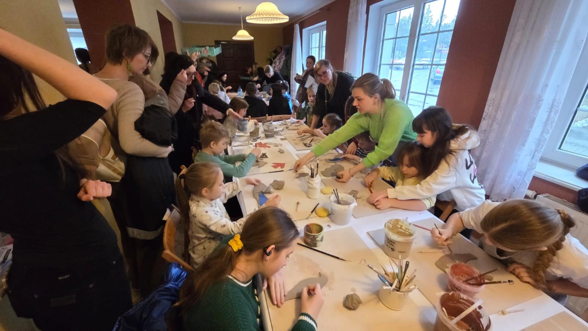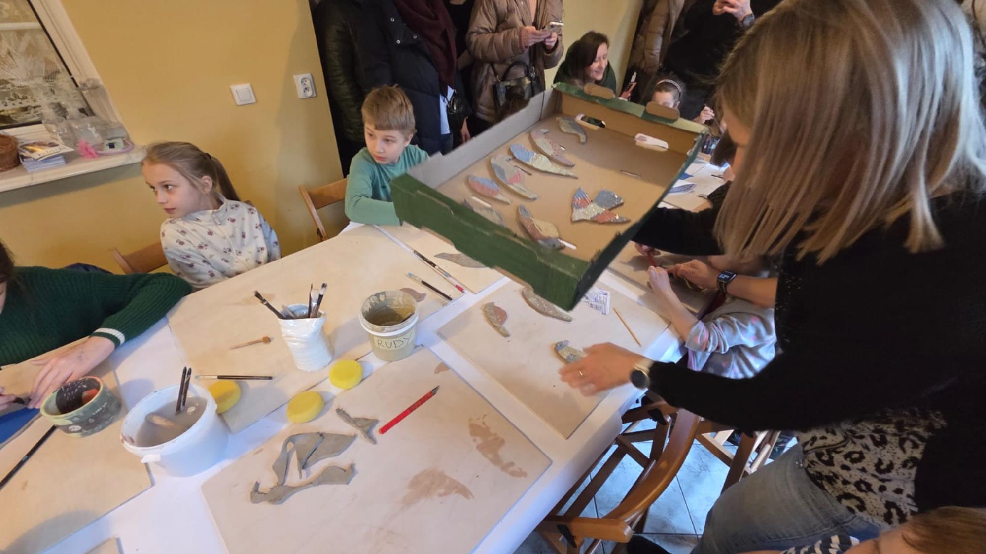 Po tym, jak ptaki zostaną wykonane i wypalone, w kolejnym etapie organizatorzy akcji zawieszą je w okolicy lasku. W okolicy, bo w lasku nie mogą - nie mają pozwolenia na wejście na ten teren. Chętnych do robienia ptaków było dziś tak wielu, że trzeba było ich dzielić na grupy, bo jednocześnie nie wszyscy by się zmieścili. Razem z dziećmi przyszli rodzice.
