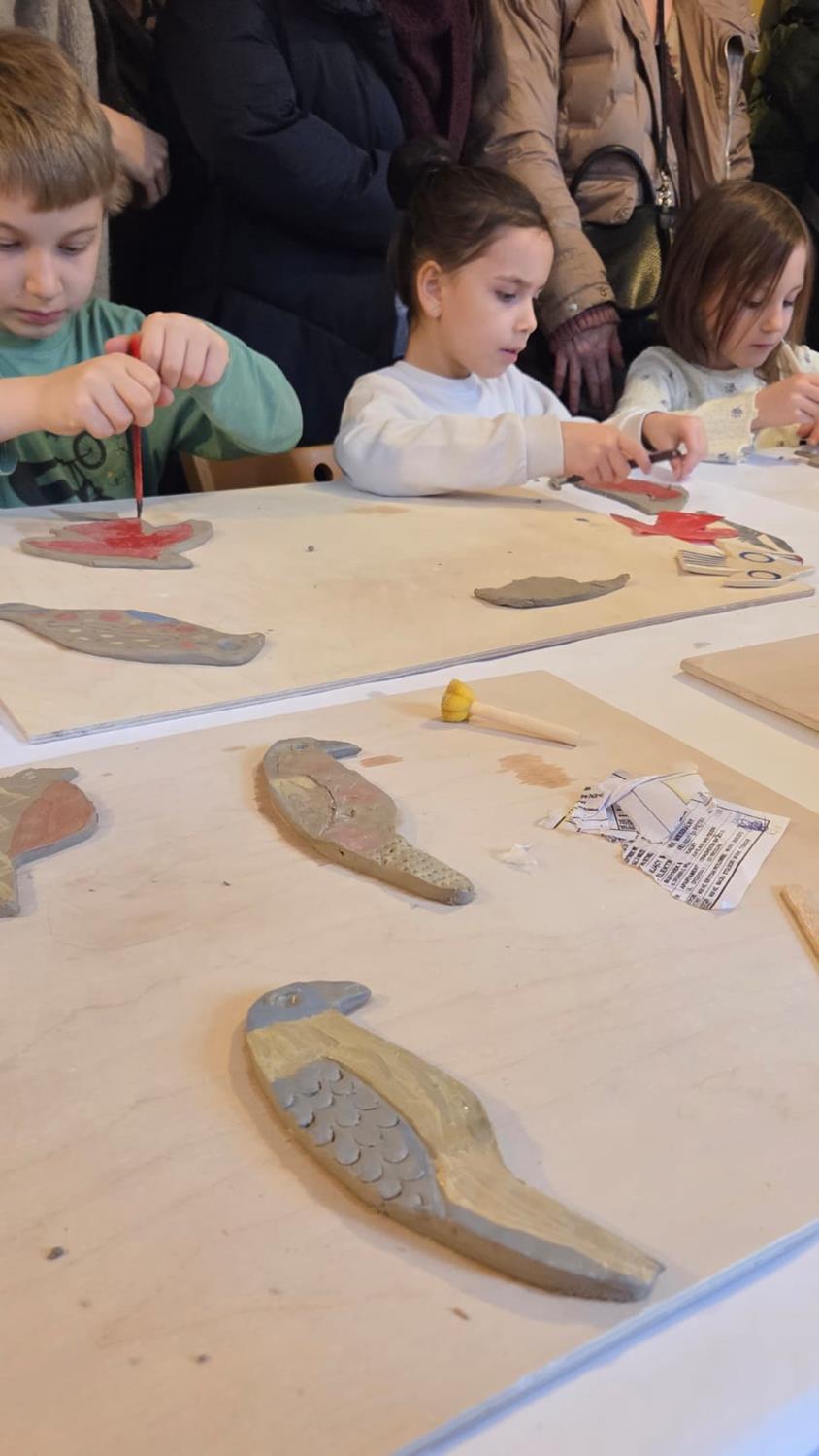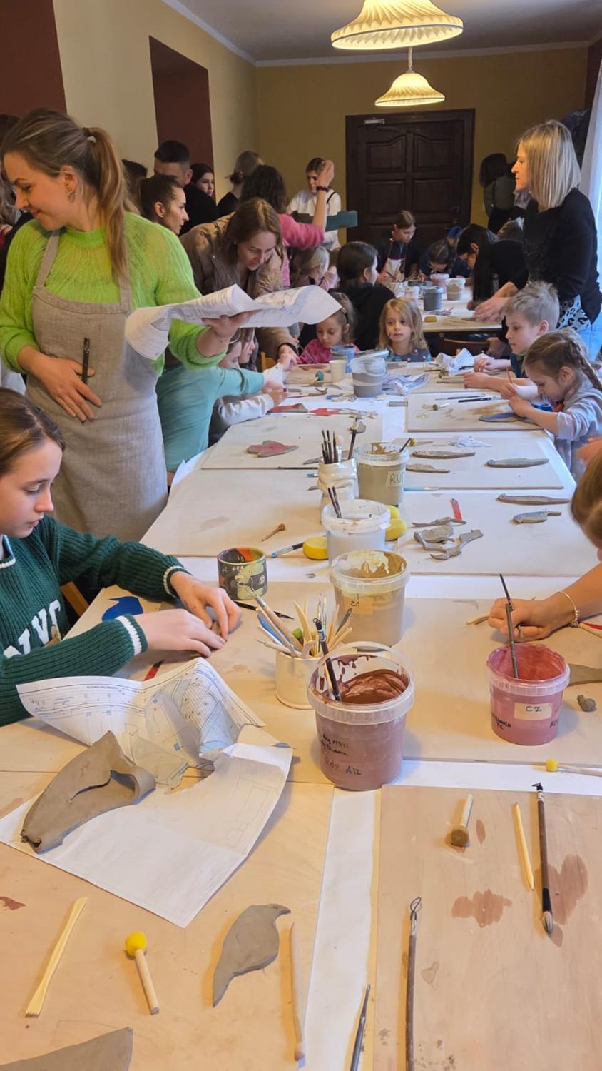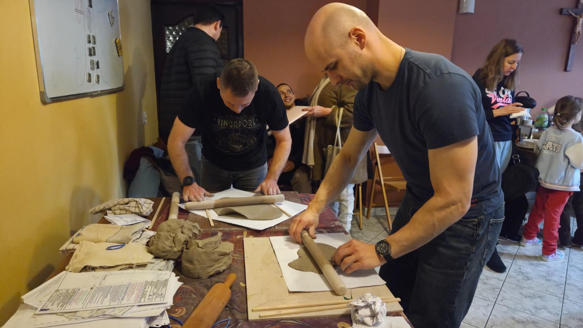 Po tym, jak ptaki zostaną wykonane i wypalone, w kolejnym etapie organizatorzy akcji zawieszą je w okolicy lasku. W okolicy, bo w lasku nie mogą - nie mają pozwolenia na wejście na ten teren. Chętnych do robienia ptaków było dziś tak wielu, że trzeba było ich dzielić na grupy, bo jednocześnie nie wszyscy by się zmieścili. Razem z dziećmi przyszli rodzice.