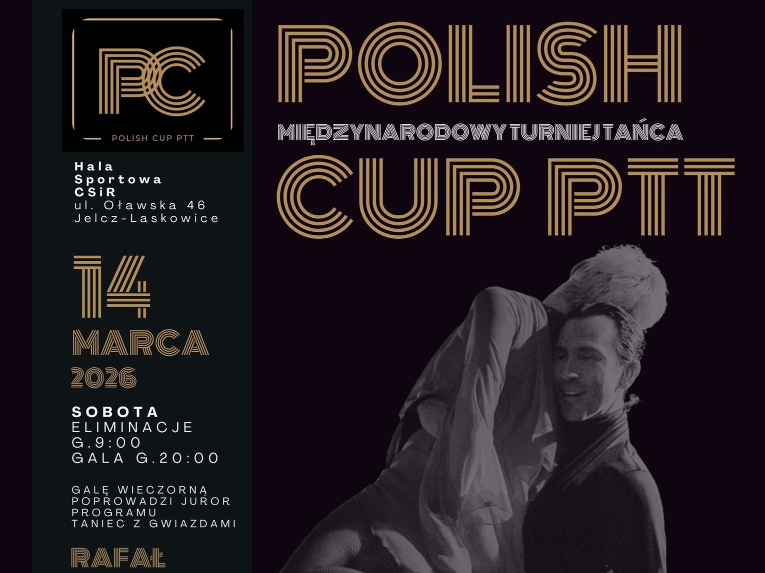 - Serdecznie zapraszam wszystkich miłośników tańca na wyjątkowe wydarzenie, jakim jest Polish Cup PTT - Puchar Polski w Tańcu Towarzyskim Polskiego Towarzystwa Tanecznego, który odbędzie się 14 marca w Jelczu-Laskowicach - mówi organizator Michał Skawińśki. To niezwykła okazja, by podziwiać pasję, emocje i kunszt taneczny najlepszych par, poczuć rytm muzyki oraz zanurzyć się w atmosferze sportowej rywalizacji i artystycznego piękna. Polish Cup PTT to święto tańca - pełne energii, elegancji i niezapomnianych wrażeń. Niezależnie od tego, czy jesteś tancerzem, kibicem, czy po prostu kochasz taniec, to wydarzenie jest właśnie dla Ciebie! Dołącz do nas i przeżyj taneczne emocje na najwyższym poziomie.