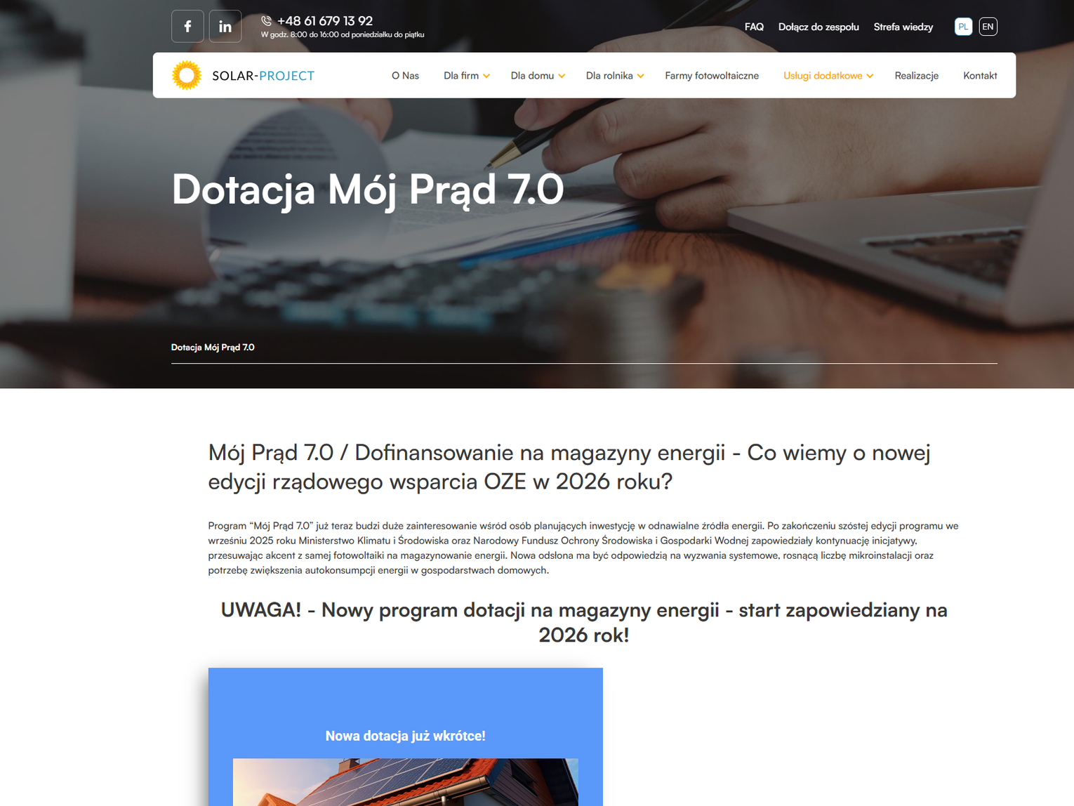 Dotacja Mój Prąd 7.0 - Firma fotowoltaiczna Solar-Project