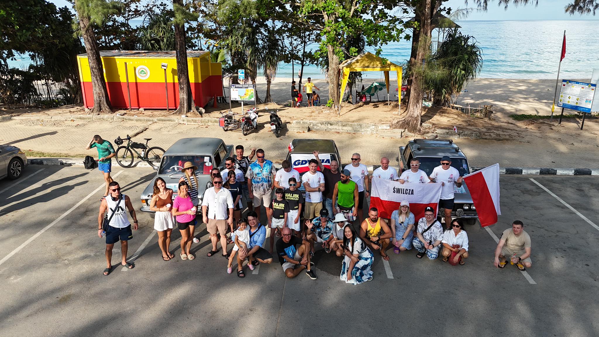 Tuż przed startem na parkingu przy plaży Surin o gopdzinie 8.00 tamtego czasu spotkali się z Polakami mieszkającymi w Tajlandii, a potem... w drogę! Powodzenia!