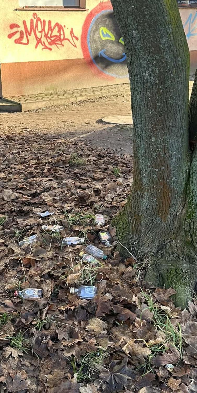 - Na tym terenie codziennie jest kilku bezdomnych, którzy piją tutaj alkohol i czują się bezkarni - opisuje sprawę w liście do redakcji Czytelnik. - Sprawa jest o tyle ciekawa, że praktycznie jest to przy głównej ulicy. Śmieją się nam mieszkańcom prosto w twarz, mówiąc że "możemy sobie dzwonić na policję i straż miejską, oni i tak nic nam nie zrobią". Niestety, problem jest większy, ponieważ zaśmiecają oni ten teren - jak widać na zdjęciach - i zostawiają tam stare i zepsute jedzenie. Dla nas mieszkańców jest to zagrożenie epidemiologiczne, zwłaszcza że zauważyliśmy już w tym miejscu szczury, które prawdopodobnie przychodzą do tego jedzenia. Niestety, nie jest to teren spółdzielni, więc nie jest tu sprzątane przez spółdzielnie, a prywatny właściciel nie reaguje i nie interweniuje w tej sprawie. Pokrzywdzeni się mieszkańcy, którzy muszą codziennie znosić smród, zepsute jedzenie i alkohol. Codziennie do szkoły chodzą tędy dzieci i muszą znosić ten demoralizujący widok i brud. Sprawa była już zgłaszana do Burmistrza, do Spółdzielni Odra i do Straży Miejskiej. Niestety, problem pozostał... Mamy przy chodniku stos butelek i nie wiemy już, co możemy zrobić...