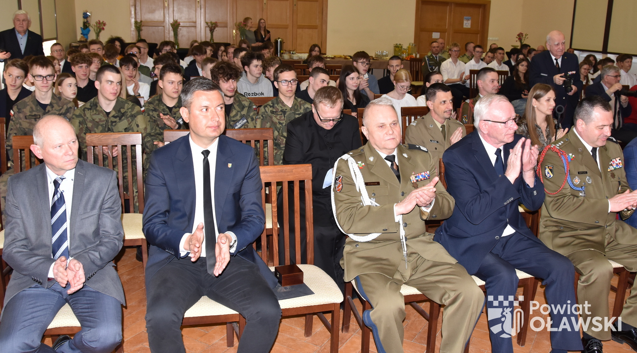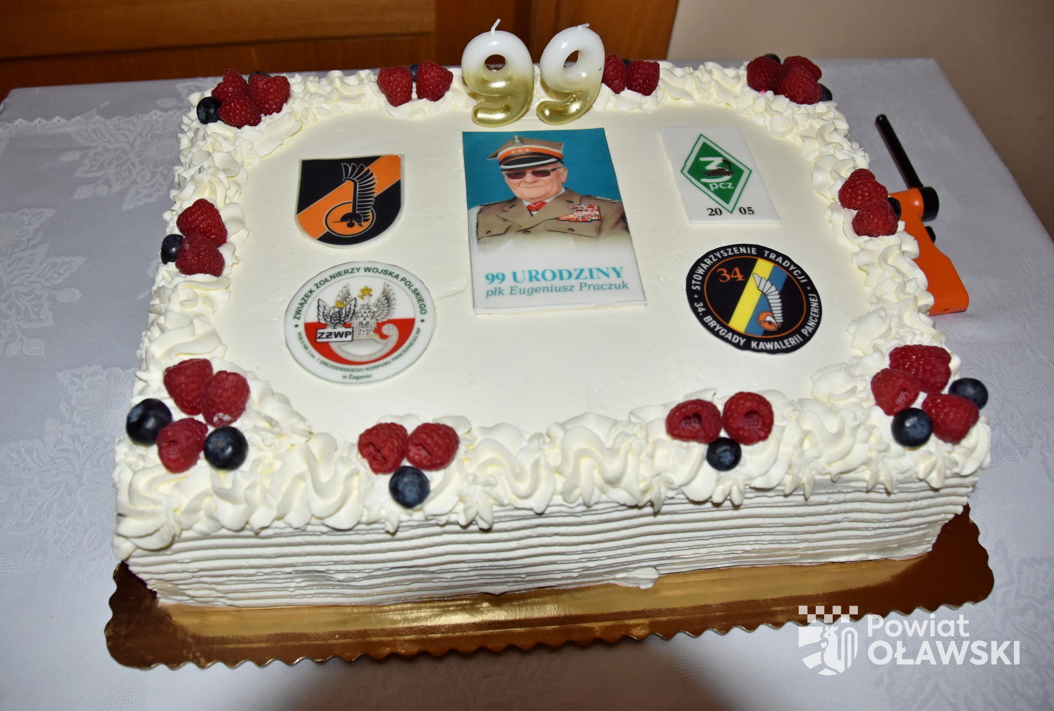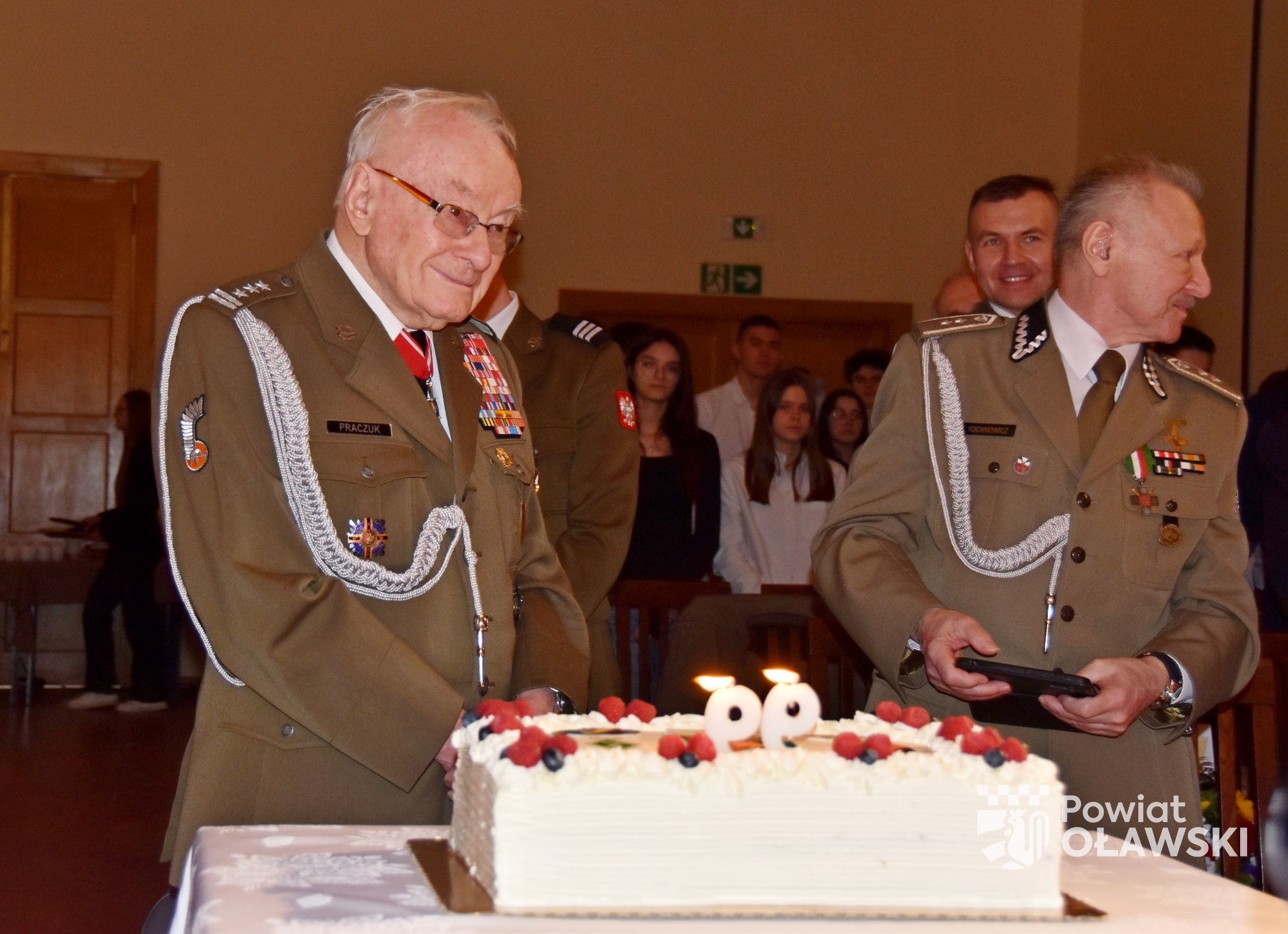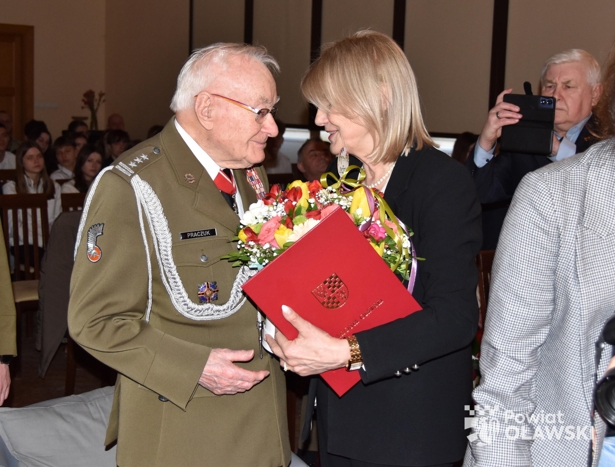 Spotkanie było także okazją do przekazania życzeń, pamiątek i upominków na ręce jubilata. Na szkolnej auli licznie zgromadzeni goście wręczali prezenty pułkownikowi Praczukowi. Życzenia w imieniu samorządu powiatowego przekazała wicestarosta Maria Bożena Polakowska.