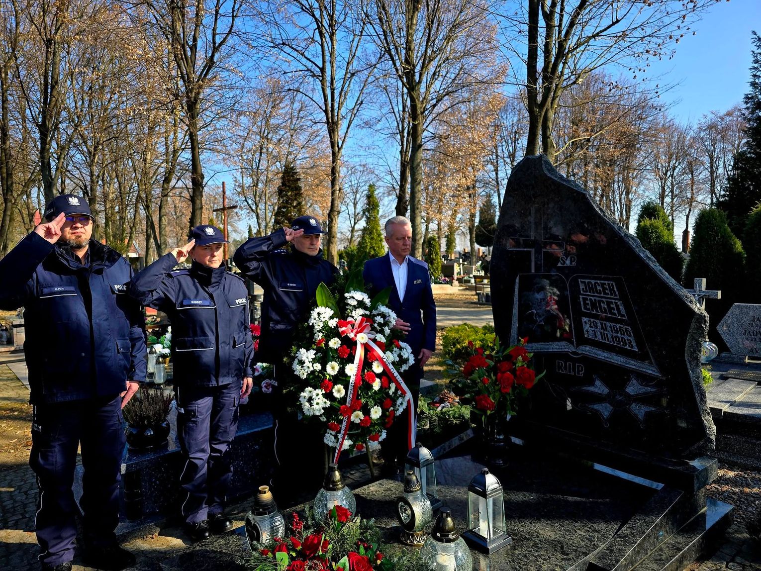 O godzinie 12:00 na Cmentarzu w Chwałowicach kadra kierownicza Komendy Powiatowej Policji w Oławie, wspólnie z burmistrzem Miasta i Gminy Jelcz-Laskowice Piotrem Stajszczykiem, złożyła kwiaty oraz oddała hołd pod pomnikiem śp. st. sierż. Jacka Engela, który 33 lata temu – 7 marca 1993 roku – poległ na służbie.