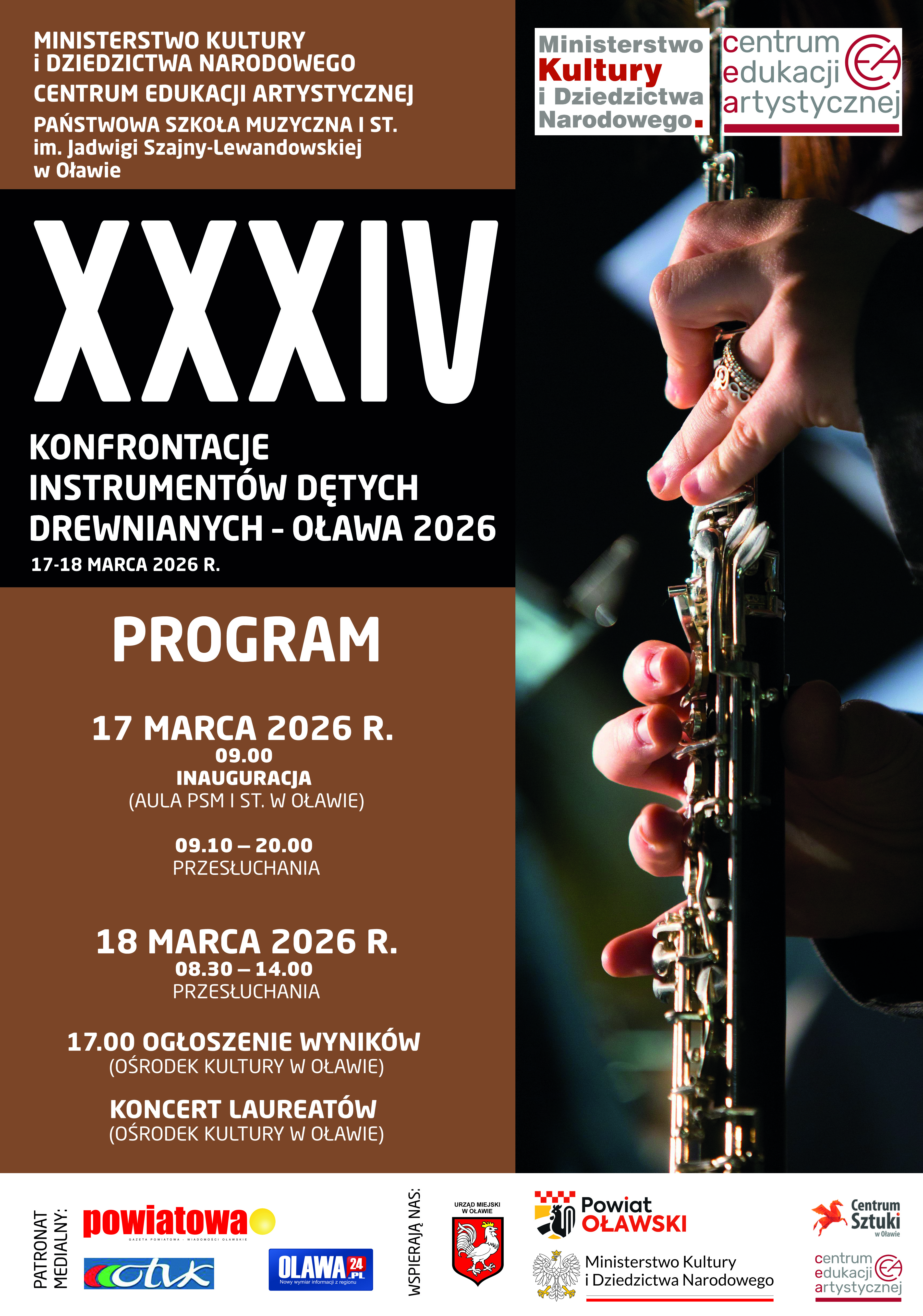 W tegorocznym konkursie weźmie udział 83 uczestników z 36 szkół z całej Polski, grających na instrumentach dętych drewnianych. Oławską szkołę reprezentować będzie 3 uczniów – klarnecistów. Na uroczystą inaugurację zapraszamy do Państwowej Szkoły Muzycznej I st. w Oławie 17 marca 2026 r. o godz. 9.00. Później rozpoczną się przesłuchania.