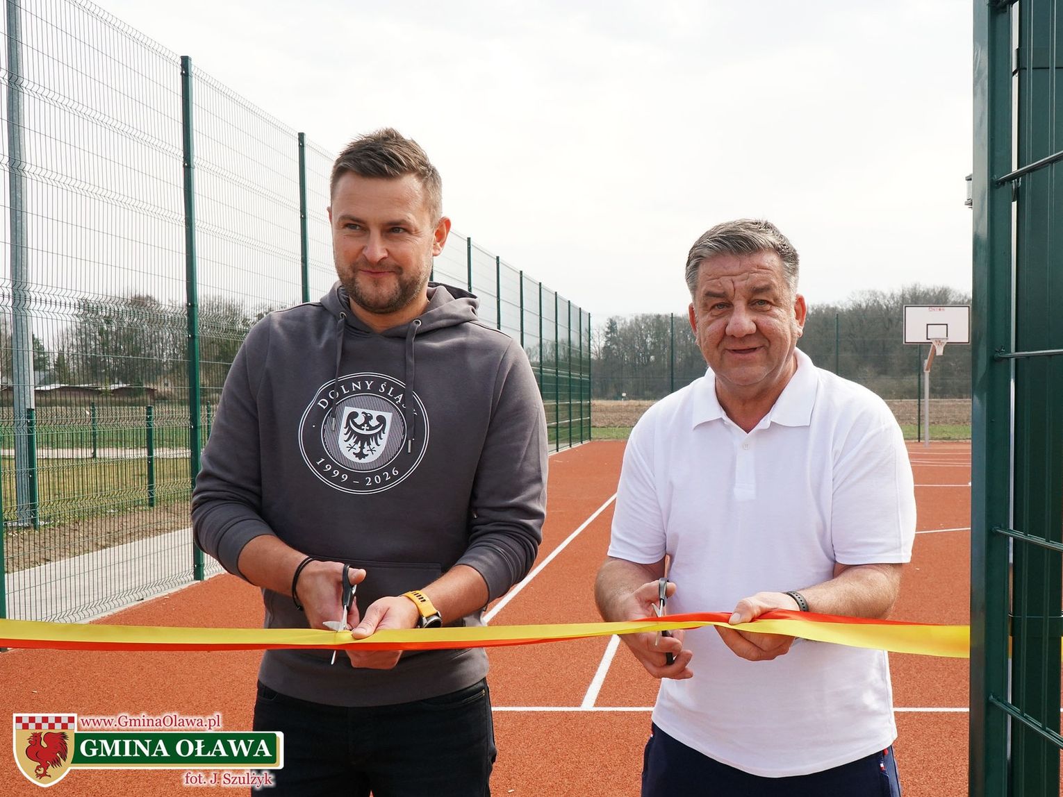 Dzisiaj odbyło się oficjalnie otwarcie kortów oraz boiska do koszykówki o nawierzchni sztucznej w Bystrzycy! Symboliczną wstęgę przecięli wójt gminy Oława Artur Piotrowski oraz wicemarszałek dolnośląski oraz sołtys Bystrzycy Michał Rado. Ale na samym przecięciu wstęgi się nie skończyło! Panowie postanowili osobiście przetestować nową nawierzchnię i rozegrali pierwsze, krótkie mecze. Warto przypomnieć, że budowa boisk powstała dzięki skutecznemu pozyskiwaniu funduszy zewnętrznych!