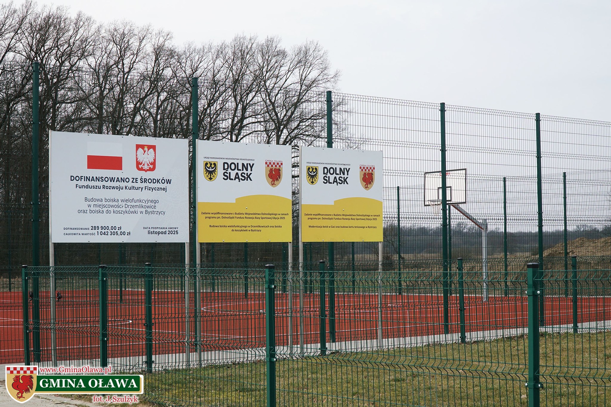 Kort tenisowy – powstał przy wsparciu środków z budżetu Województwa Dolnośląskiego w ramach programu Dolnośląski Fundusz Rozwoju Bazy Sportowej.