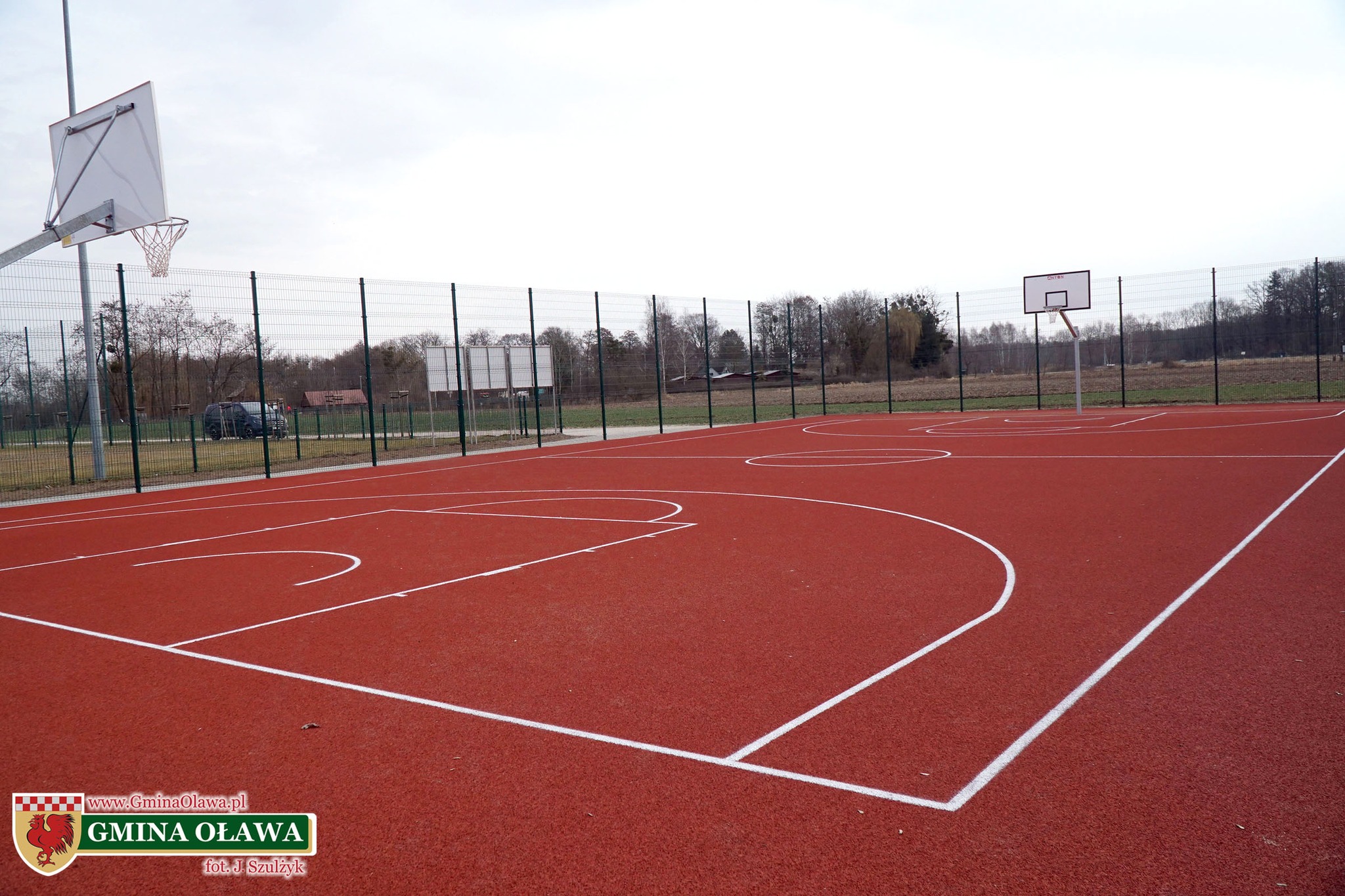 Boisko do koszykówki – inwestycja zrealizowana dzięki dofinansowaniu z Programu Rozwoju Infrastruktury Sportowej w Województwie Dolnośląskim oraz środków z Ministerstwa Sportu i Turystyki.