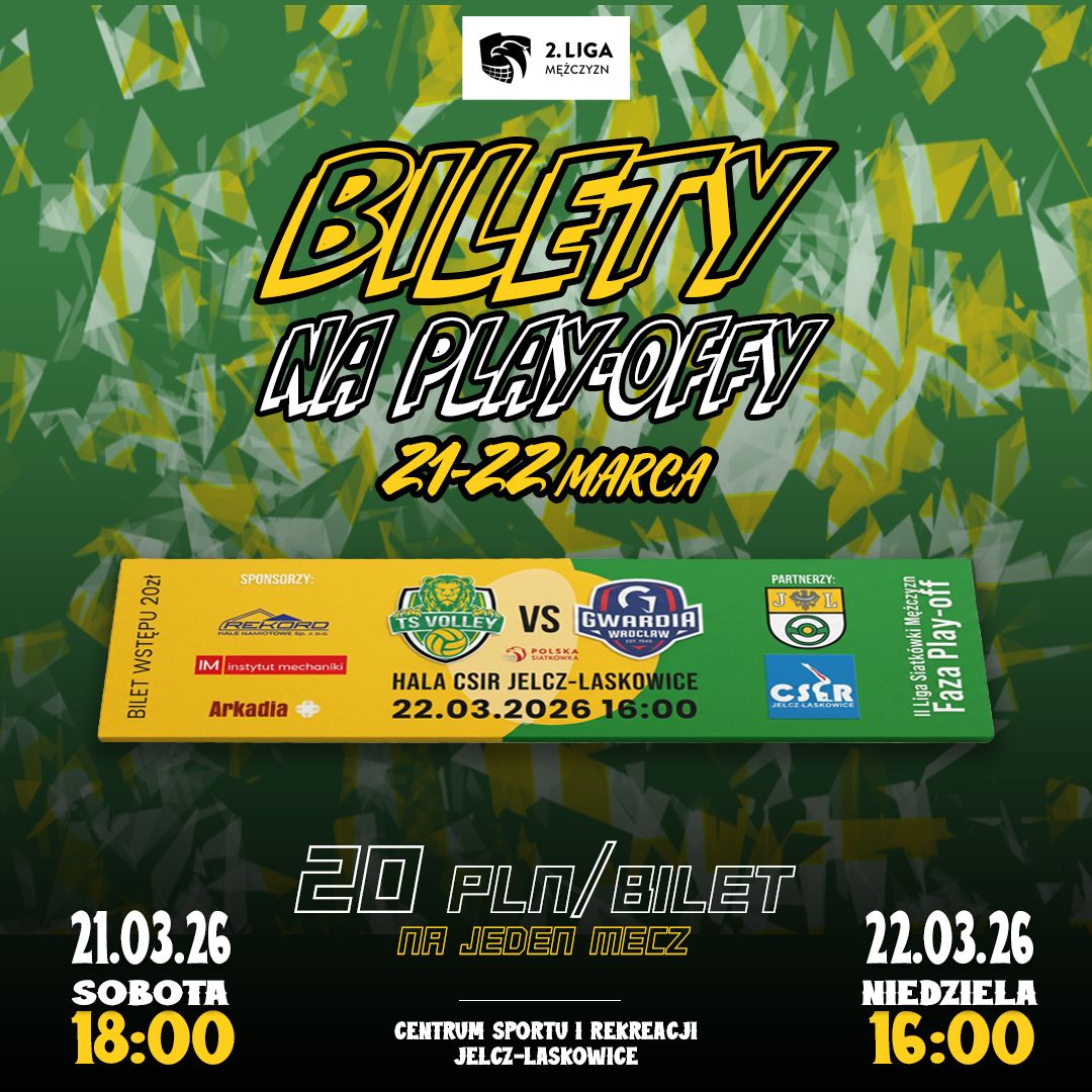 - To będą dla naszego klubu historyczne chwilę - czytamy w mediach społecznościowych IM Rekord Volley Jelcz-Laskowice. - Po raz pierwszy zajęliśmy miejsce w czołowej czwórce rozgrywek II Ligi Siatkówki Mężczyzn PZPS i powalczymy w kolejnych etapach o awans do PLS 1 Ligi. Szykujemy dla Was wyjątkową oprawę tego wydarzenia i jesteśmy pewni, że przeżyjemy wspólnie niesamowite siatkarskie emocje. Nadchodzą najważniejsze momenty sezonu. Liczymy, że po raz kolejny zapełnicie trybuny hali CSiR i głośnym dopingiem poniesiecie Jelczańskie Lwy do zwycięstw.