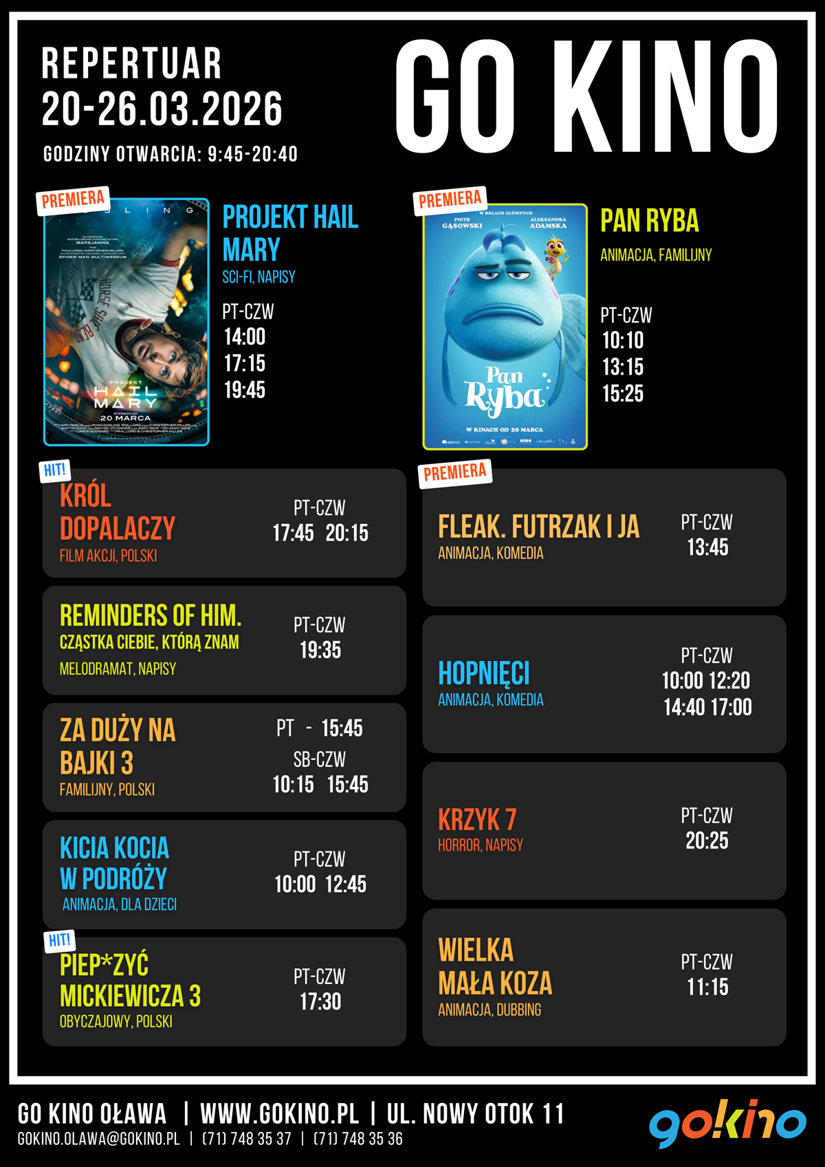 Repertuar od 20 do 26 marca 2026 r. Wśród 11 propozycji na ten tydzień trzy premiery, a wśród nich komedia animowana pt. "Fleak. Futrzak i ja", reżyseria Jens Møller