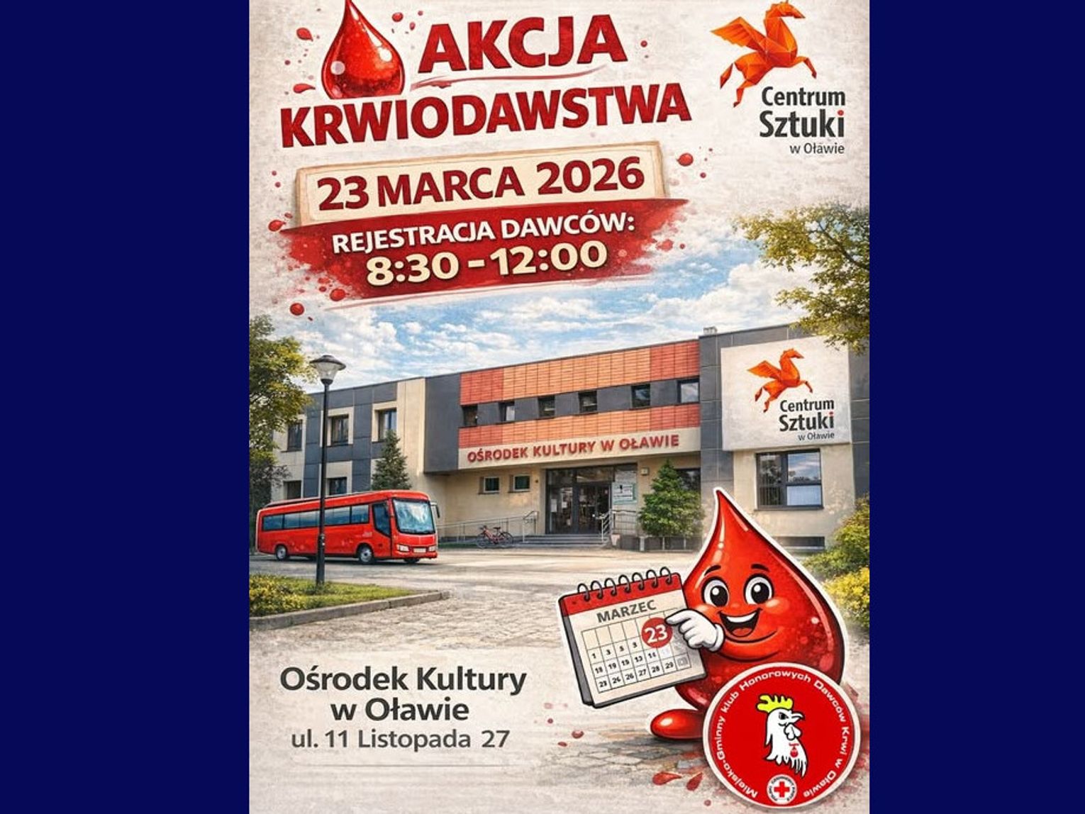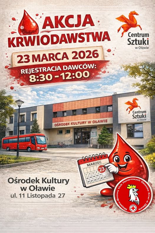 Już 23 marca 2026 r. (najbliższy poniedziałek) zapraszamy wszystkich chętnych do udziału w wyjątkowej akcji oddawania krwi.