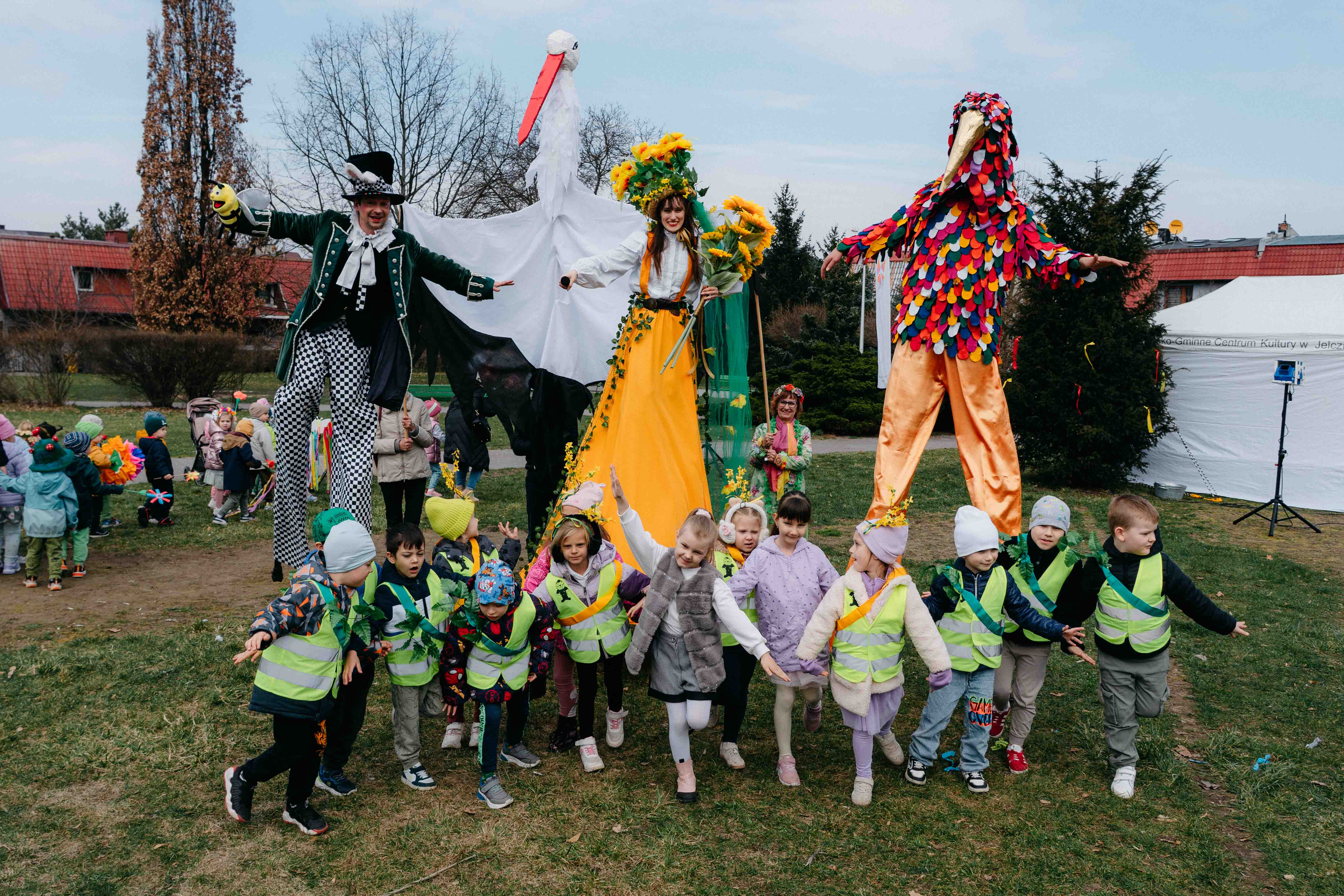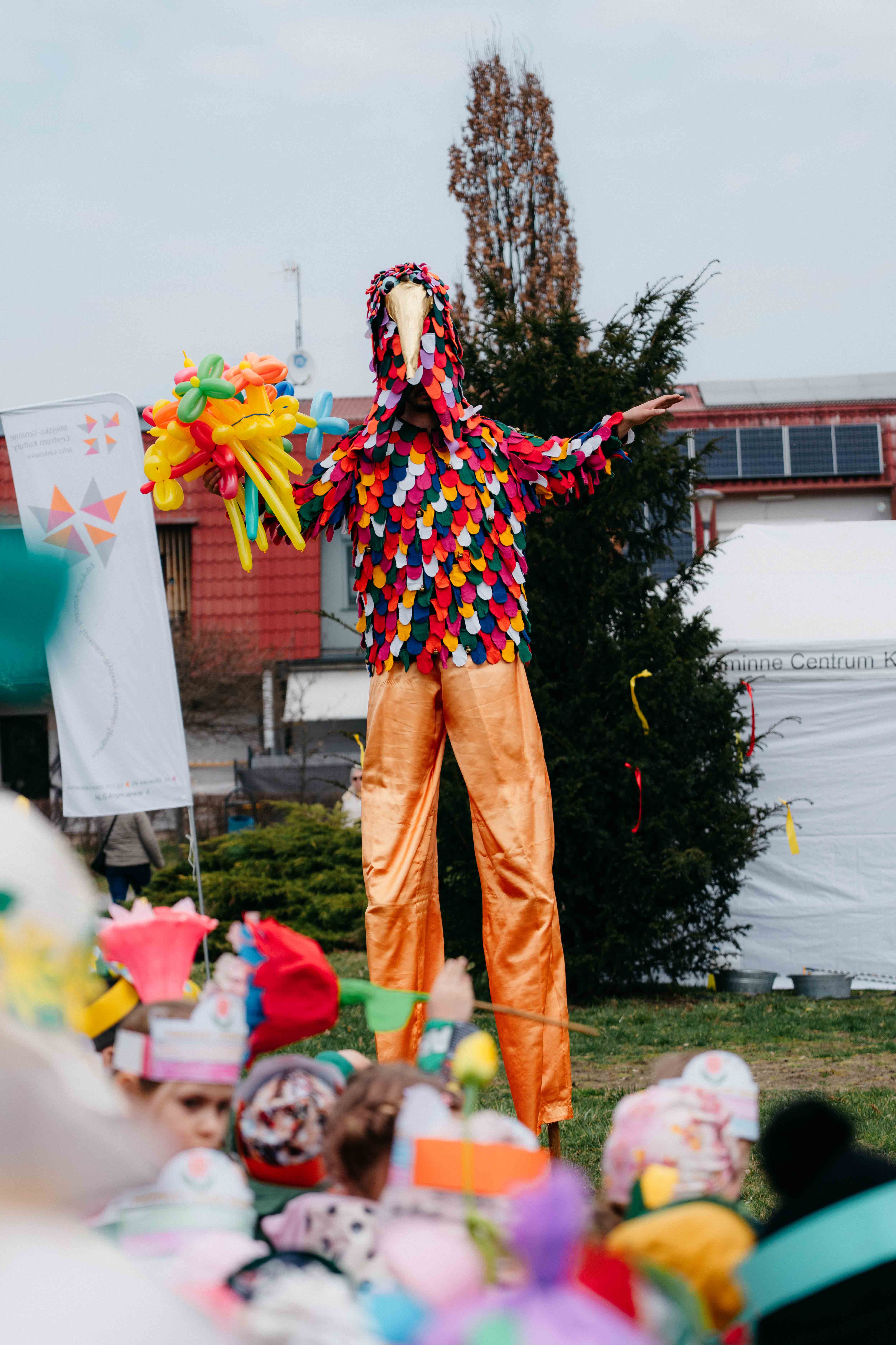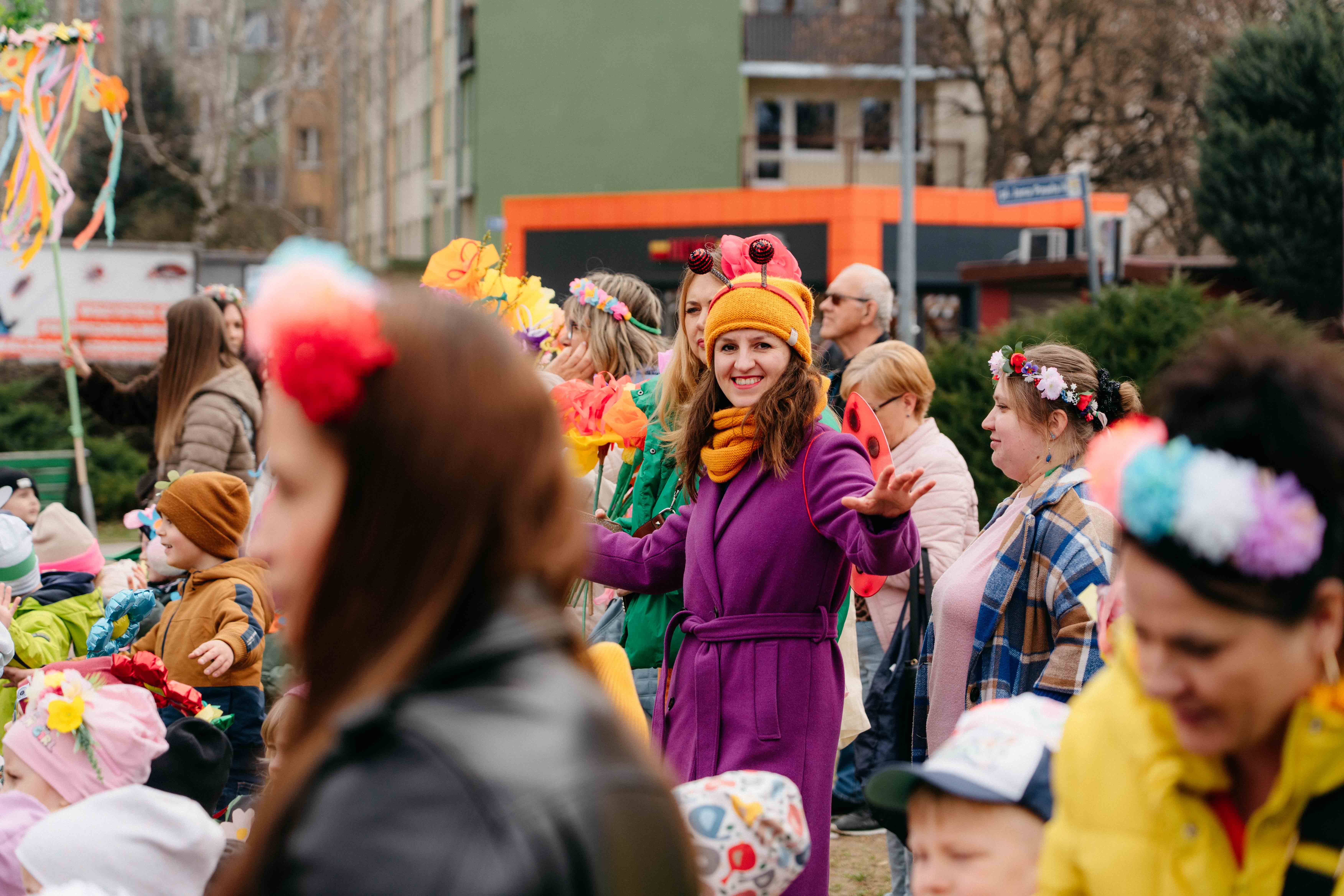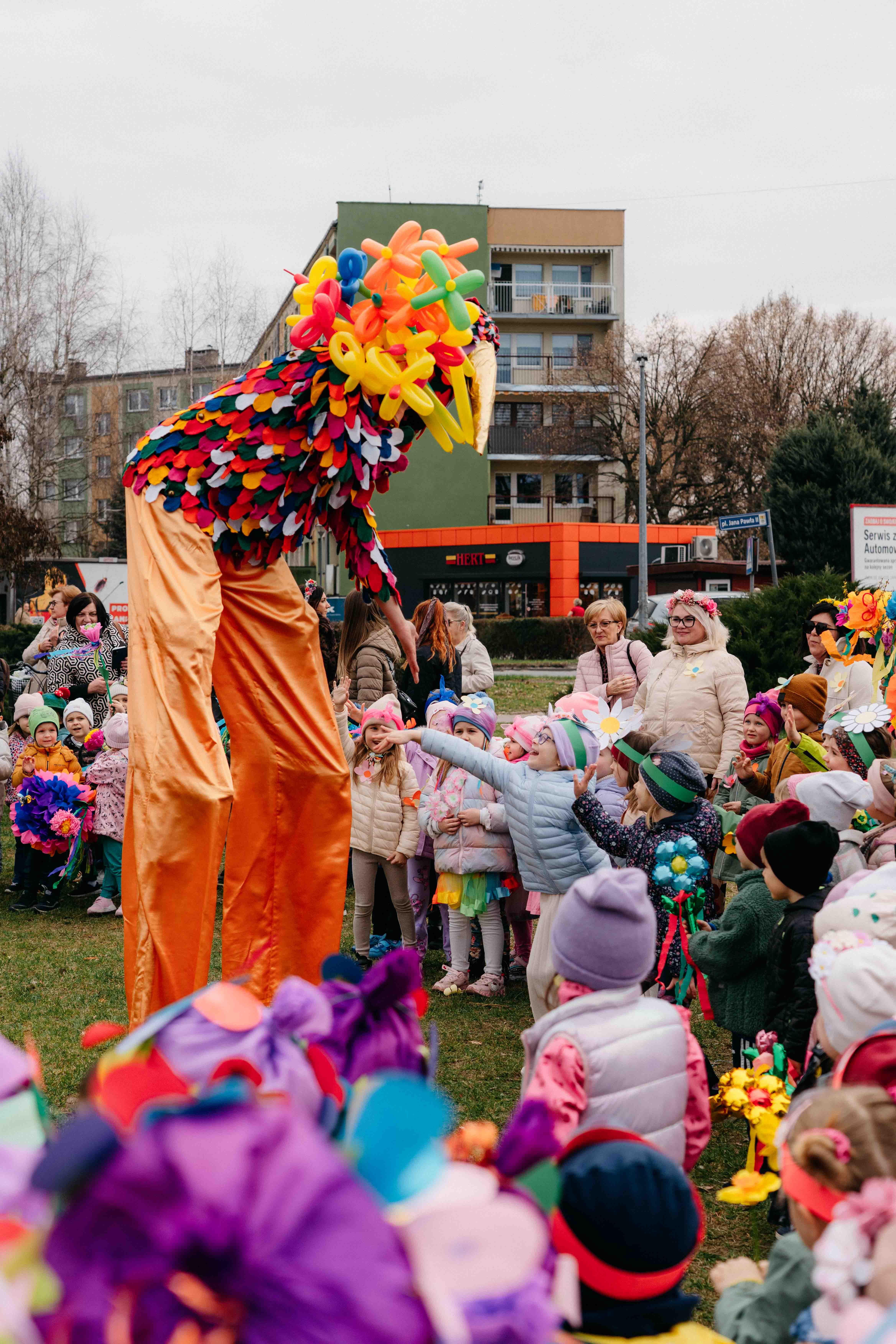 Kolorowa i radosna zabawa z Teatrem Jednej Miny. W Jelczu-Laskowicach pożegnano zimę i powitano wiosnę
