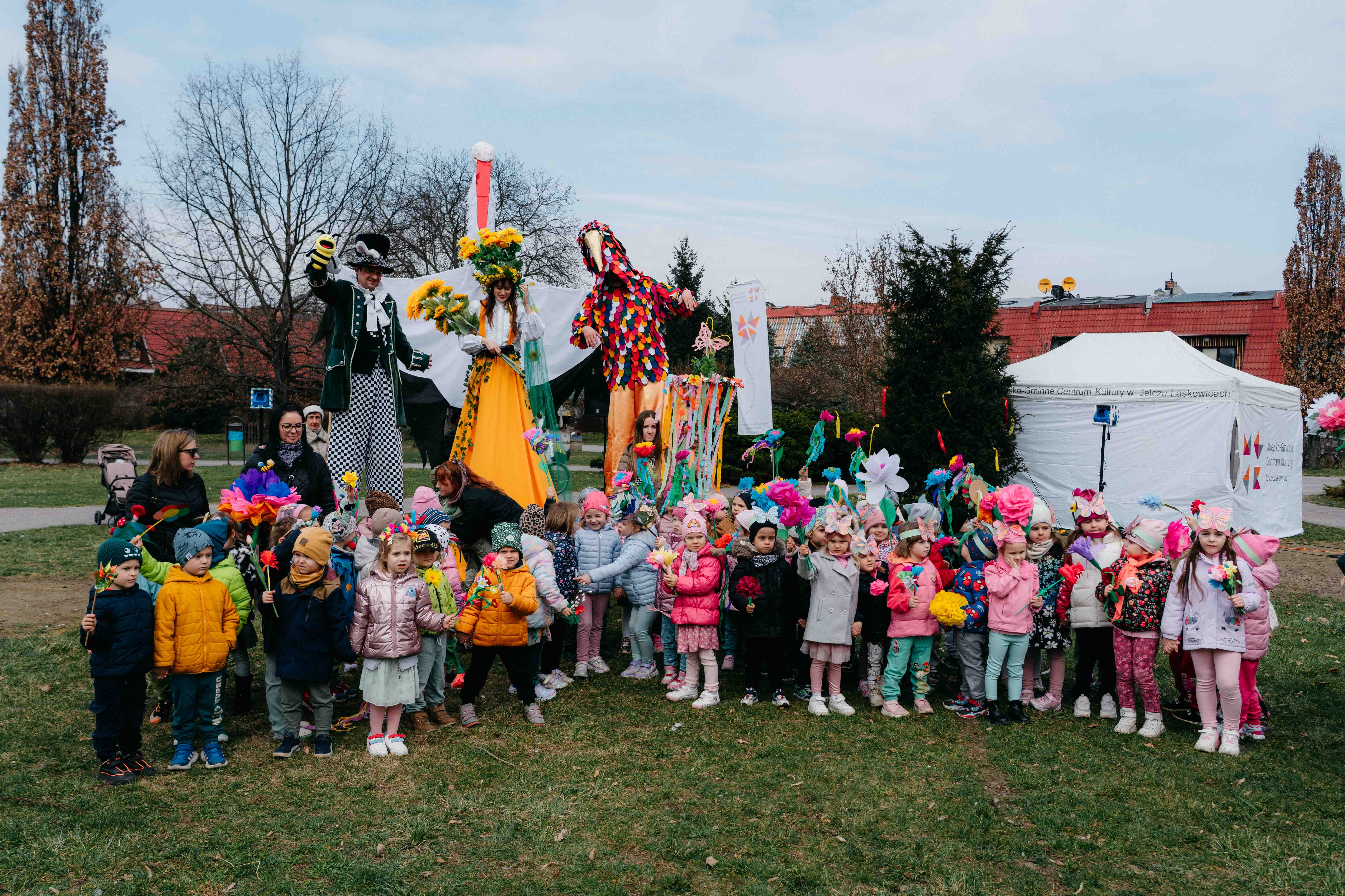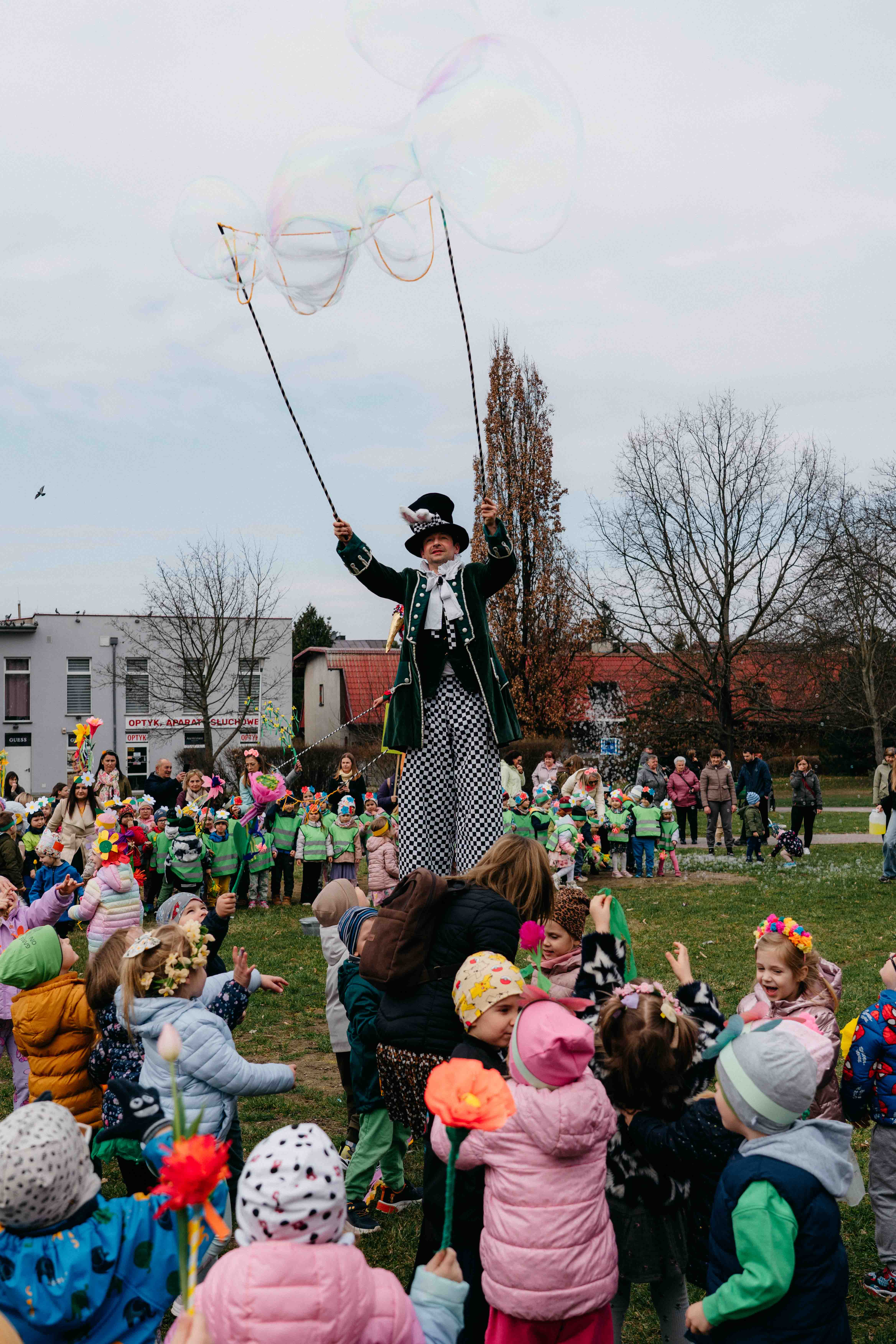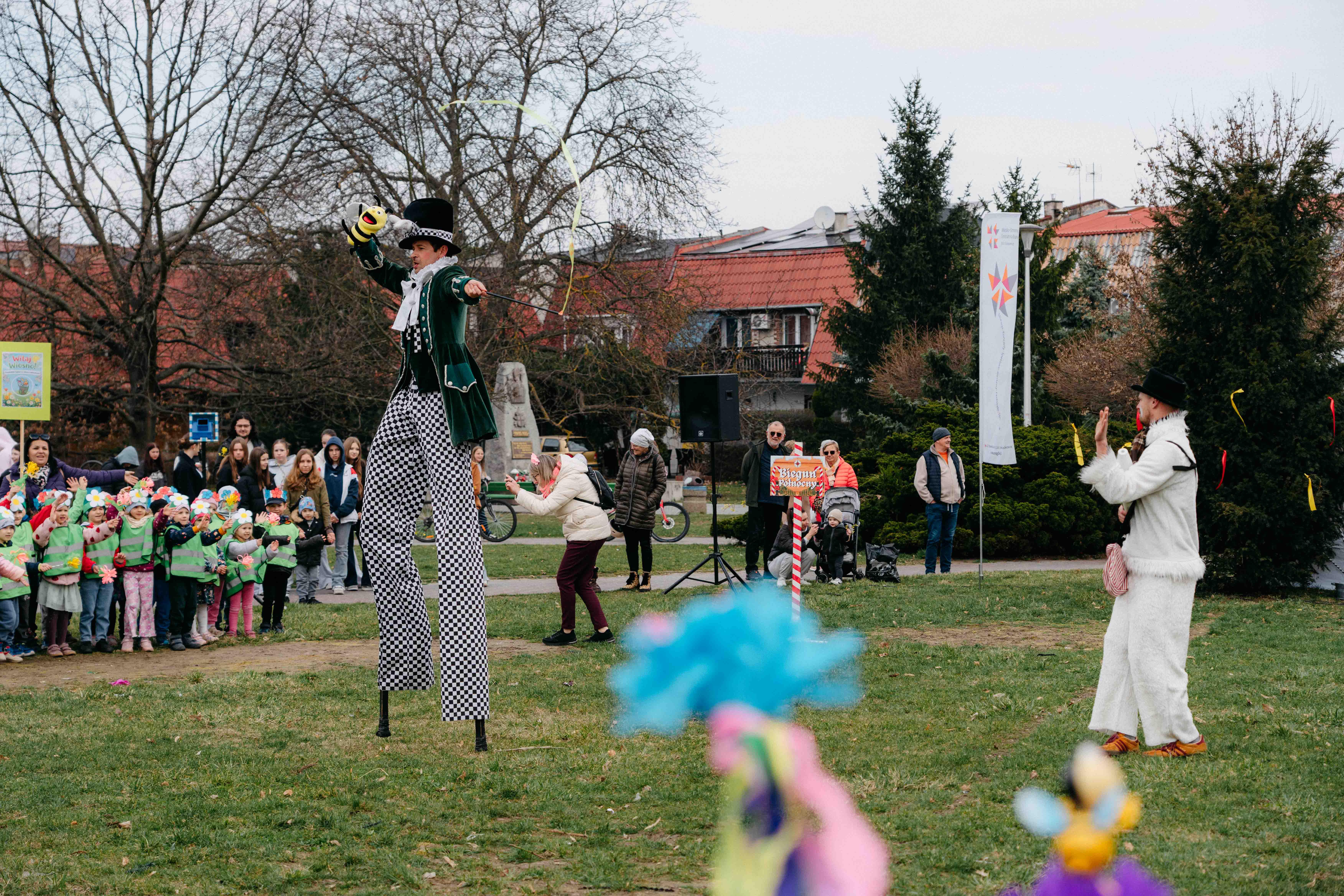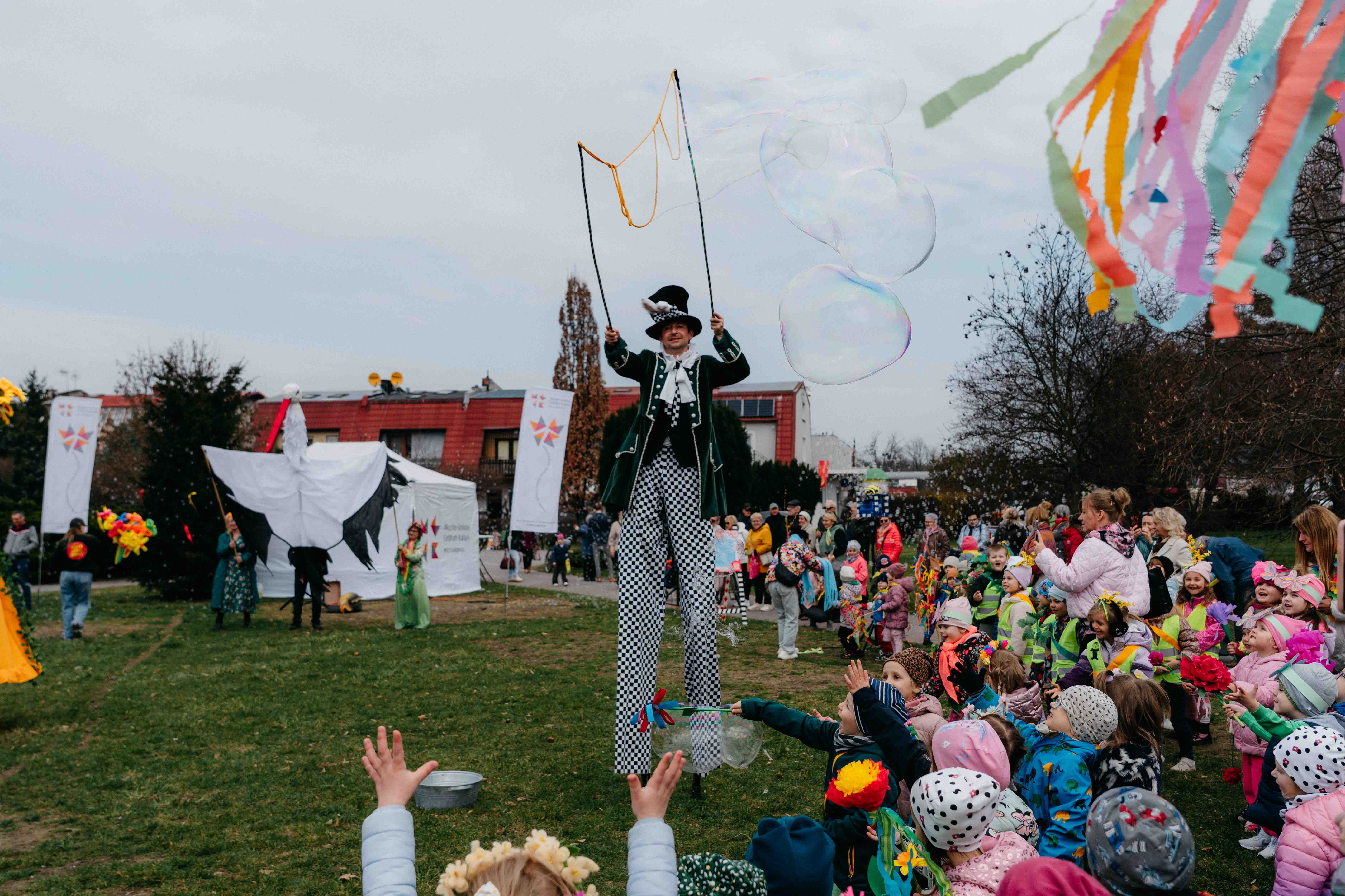 Kolorowa i radosna zabawa z Teatrem Jednej Miny. W Jelczu-Laskowicach pożegnano zimę i powitano wiosnę