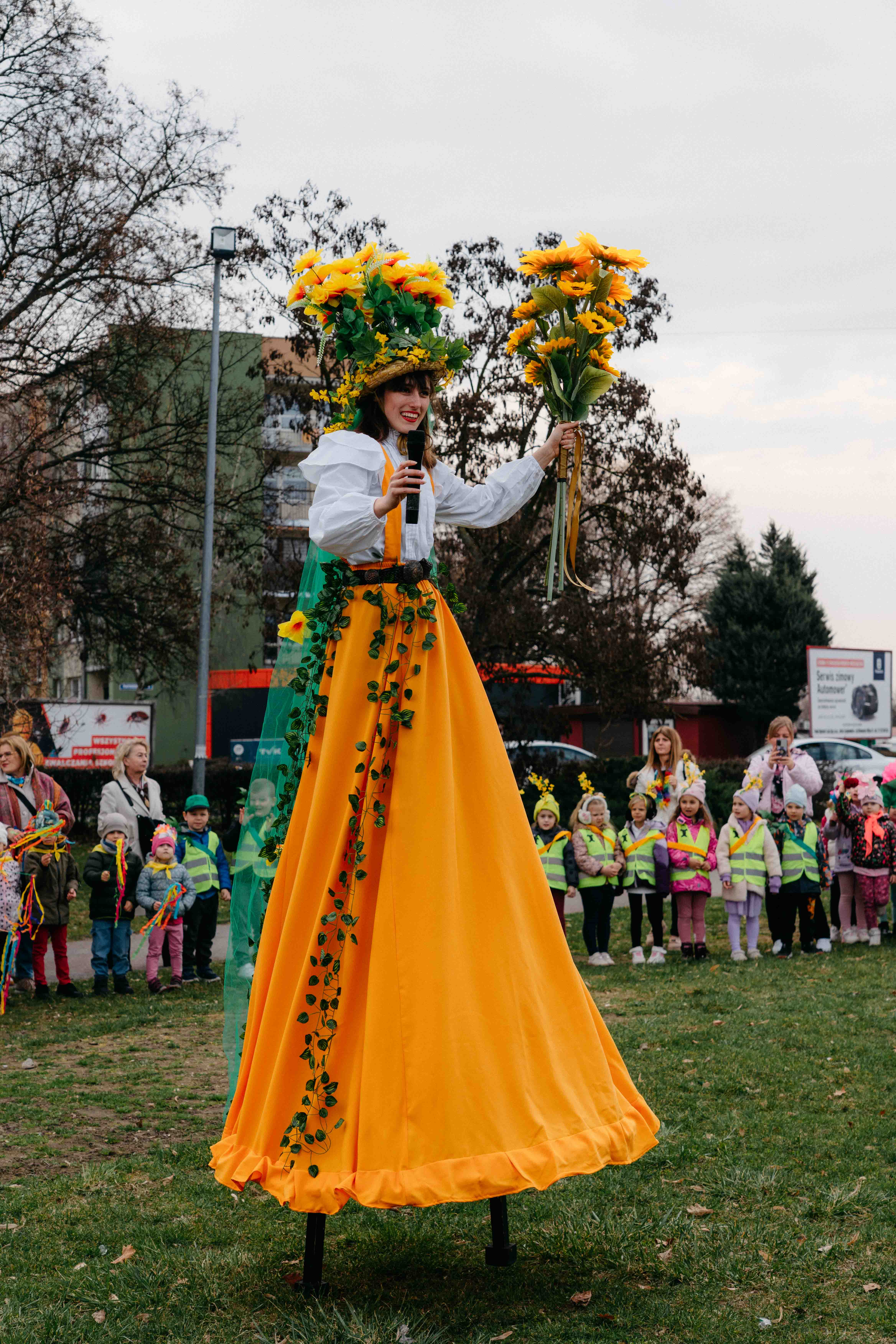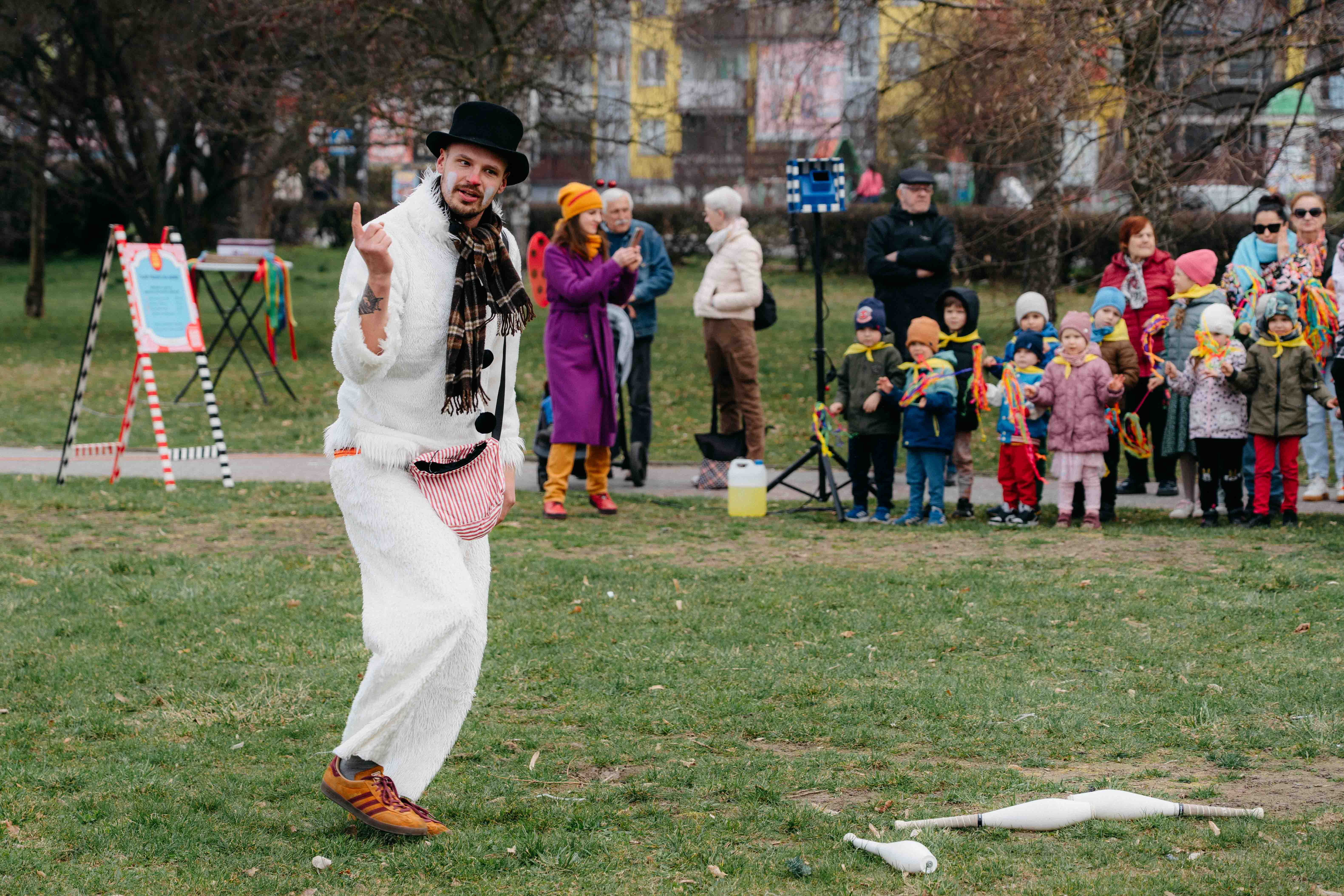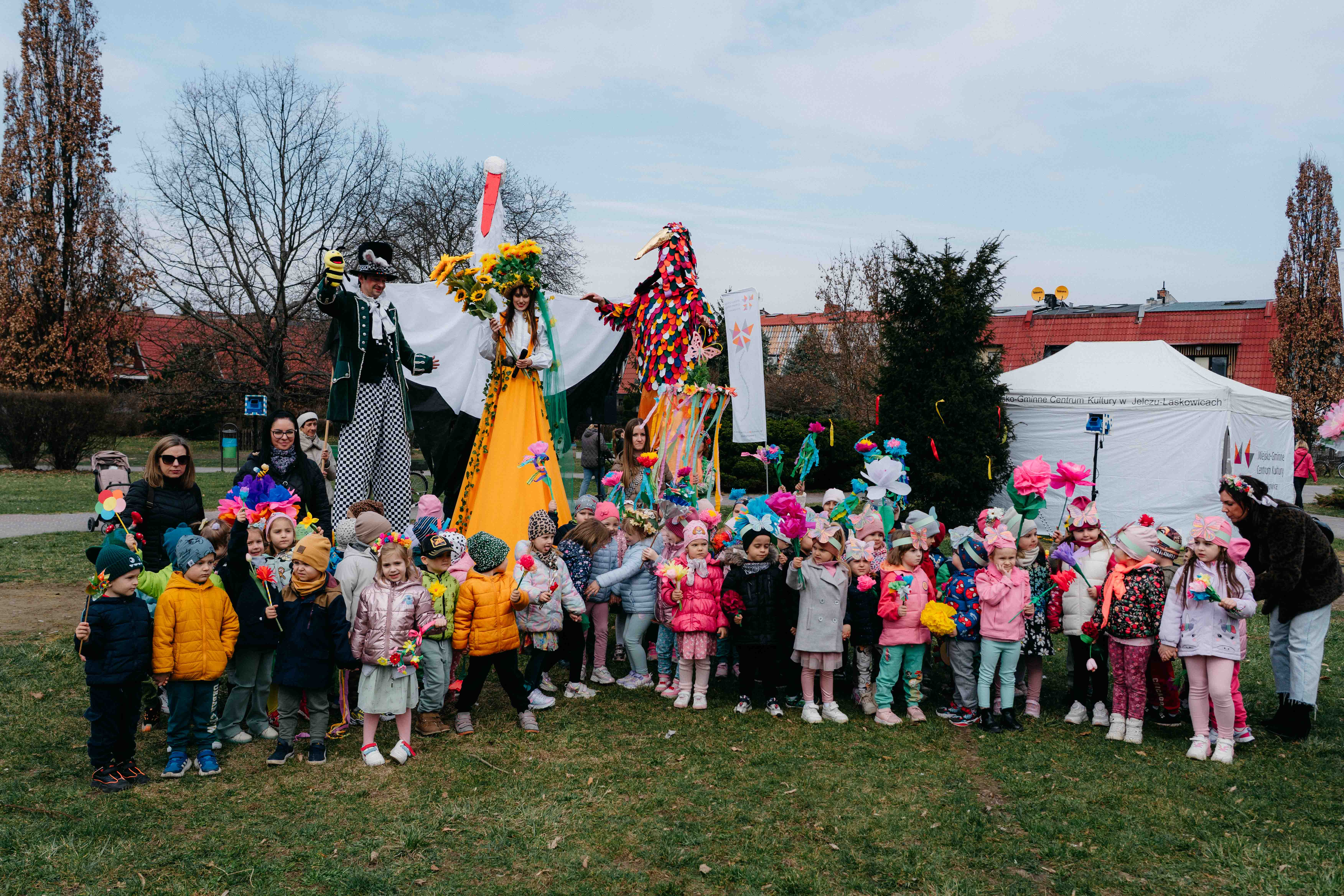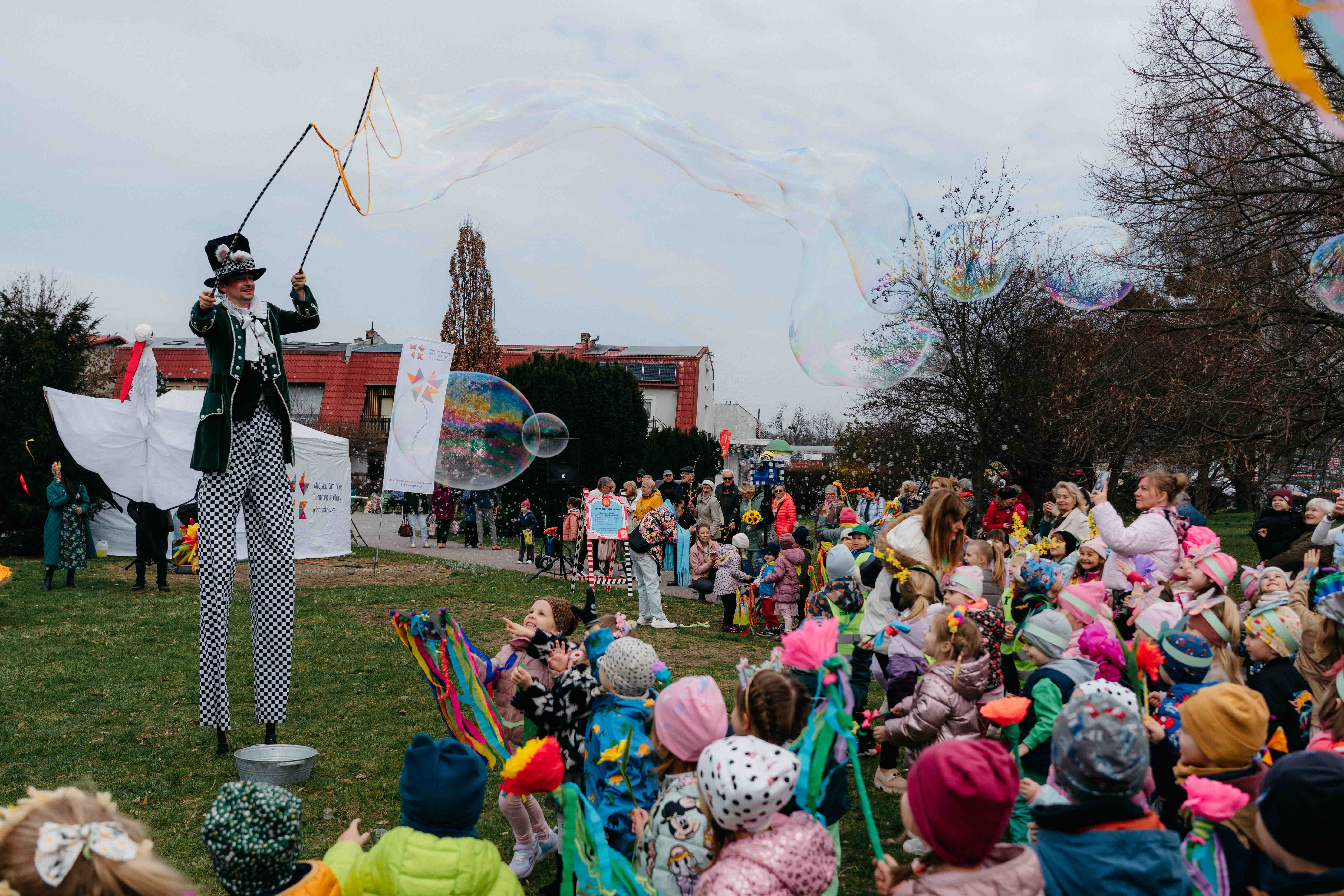 Kolorowa i radosna zabawa z Teatrem Jednej Miny. W Jelczu-Laskowicach pożegnano zimę i powitano wiosnę