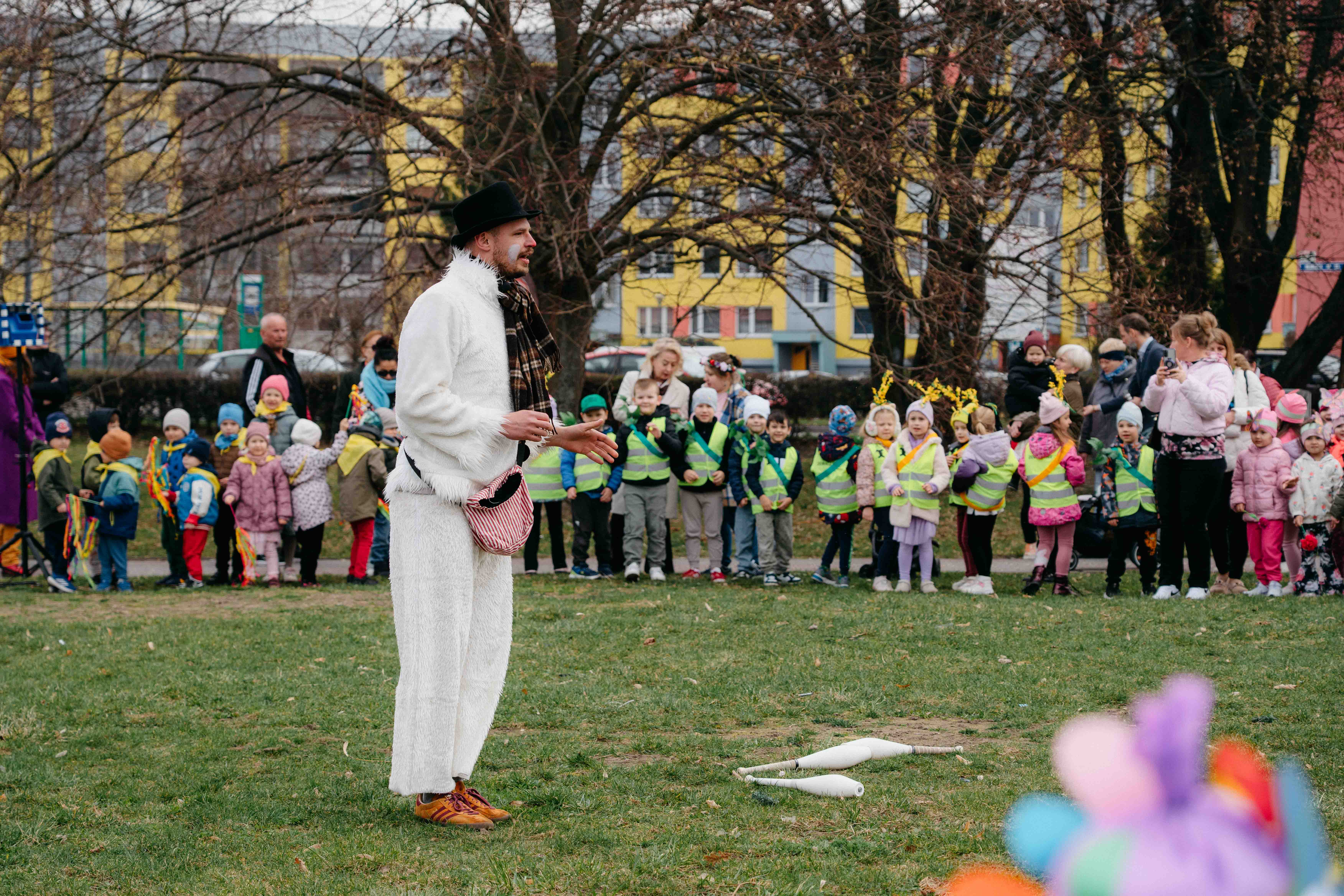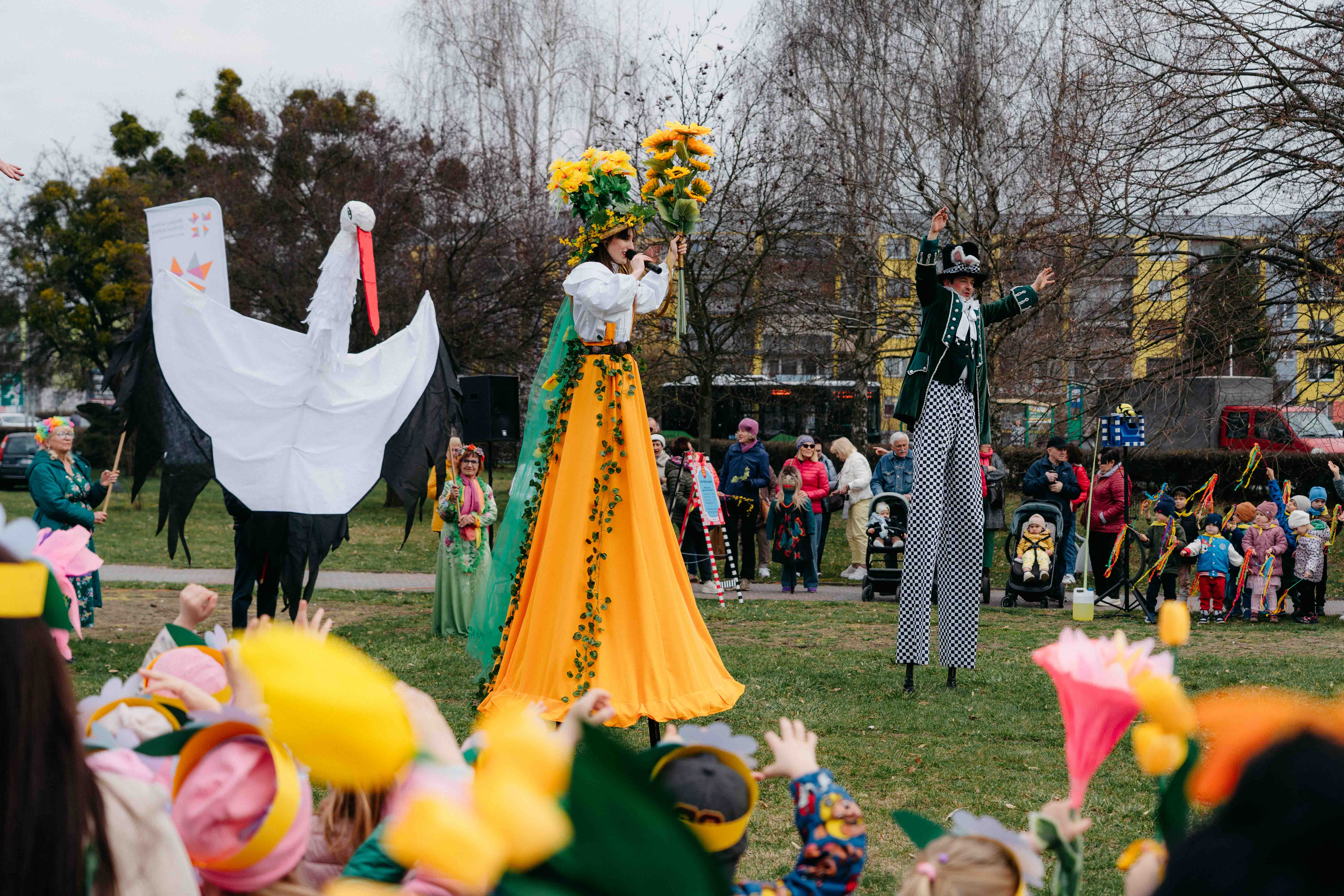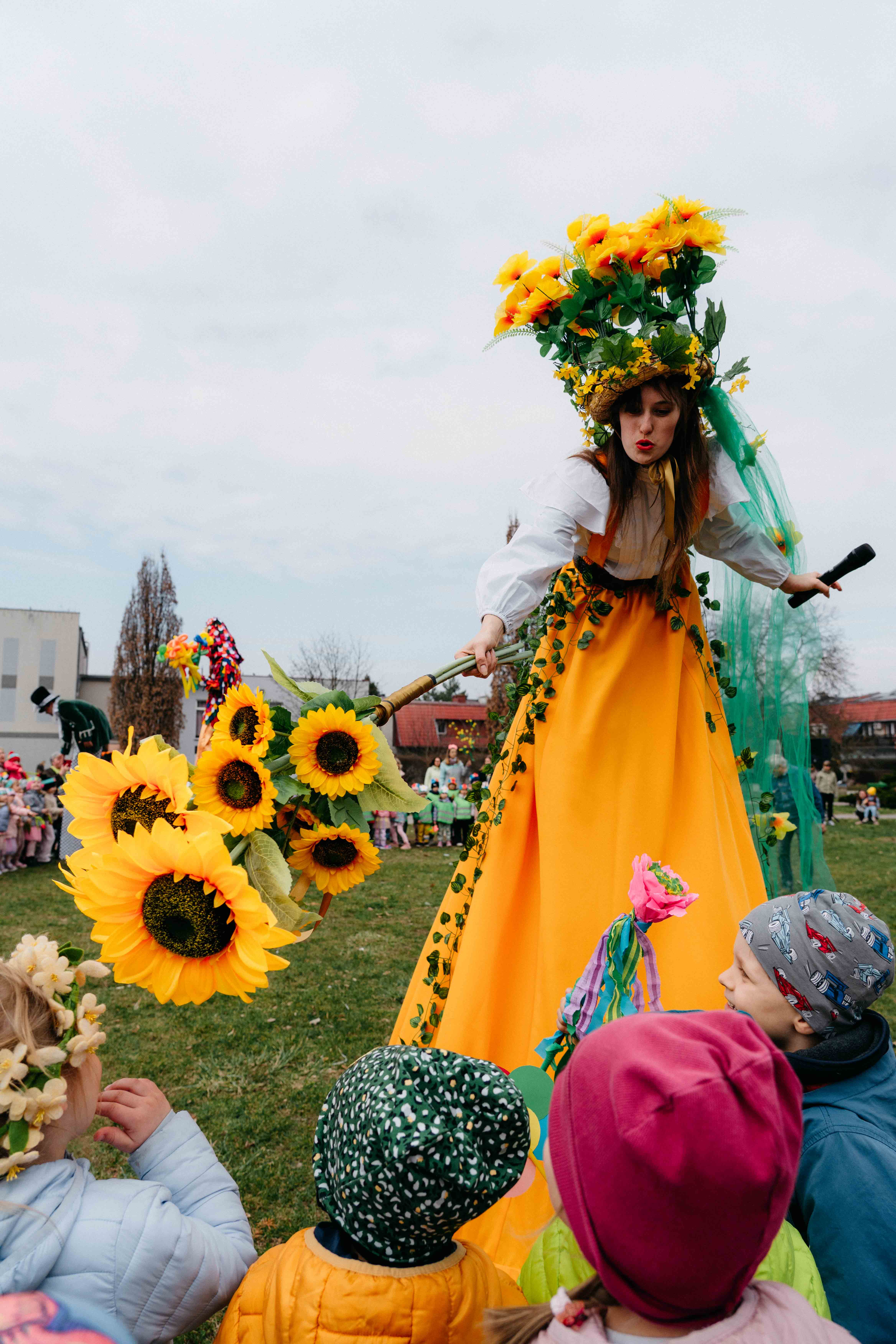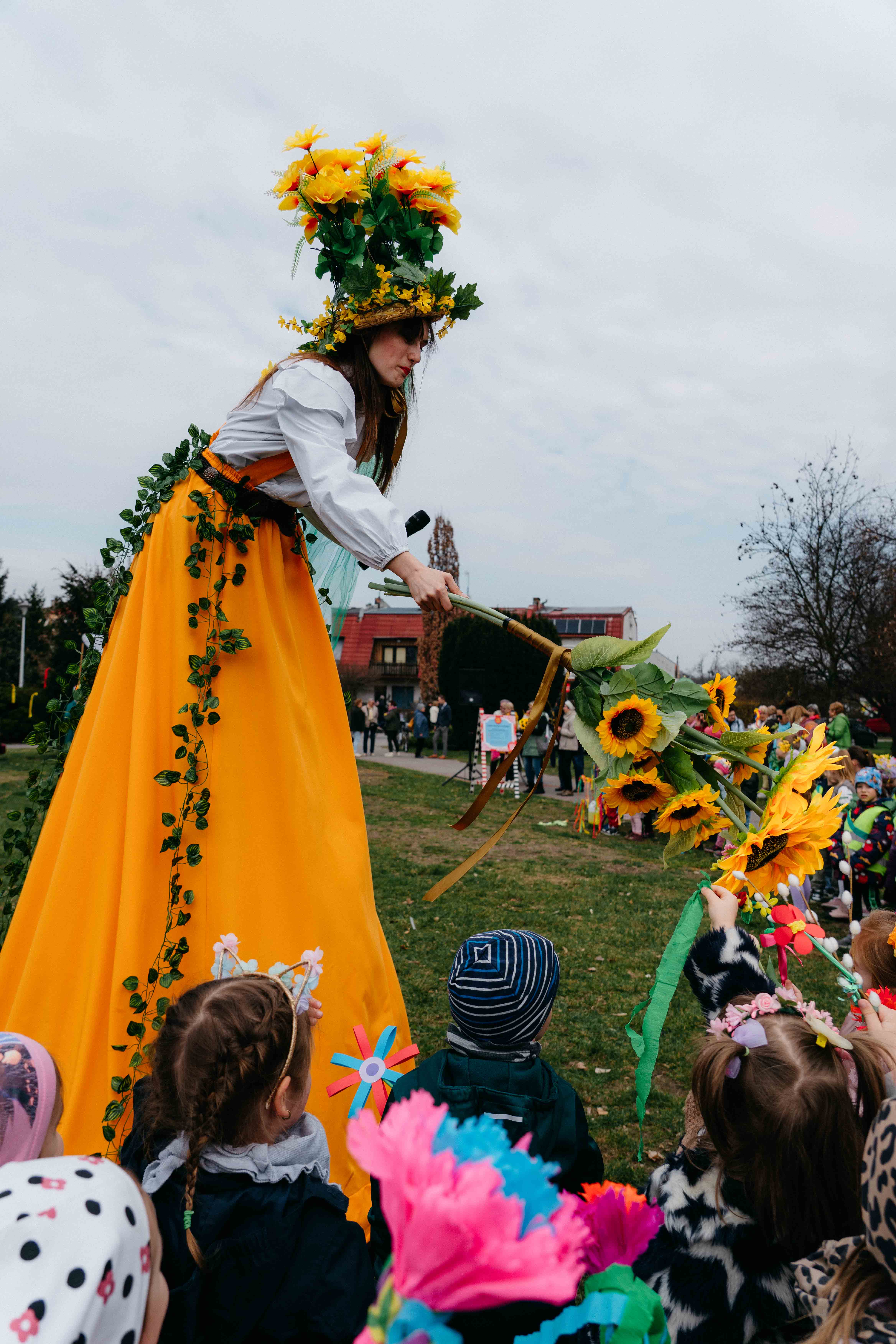 Kolorowa i radosna zabawa z Teatrem Jednej Miny. W Jelczu-Laskowicach pożegnano zimę i powitano wiosnę